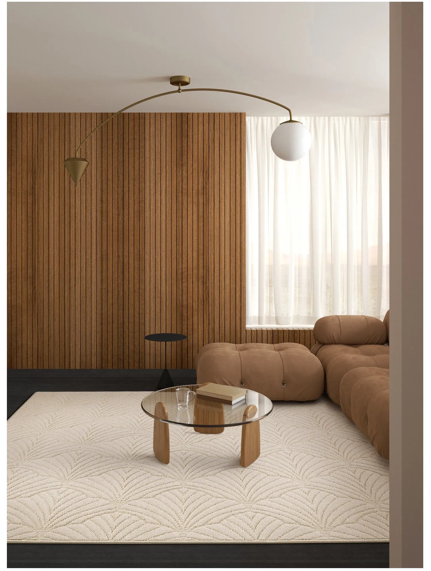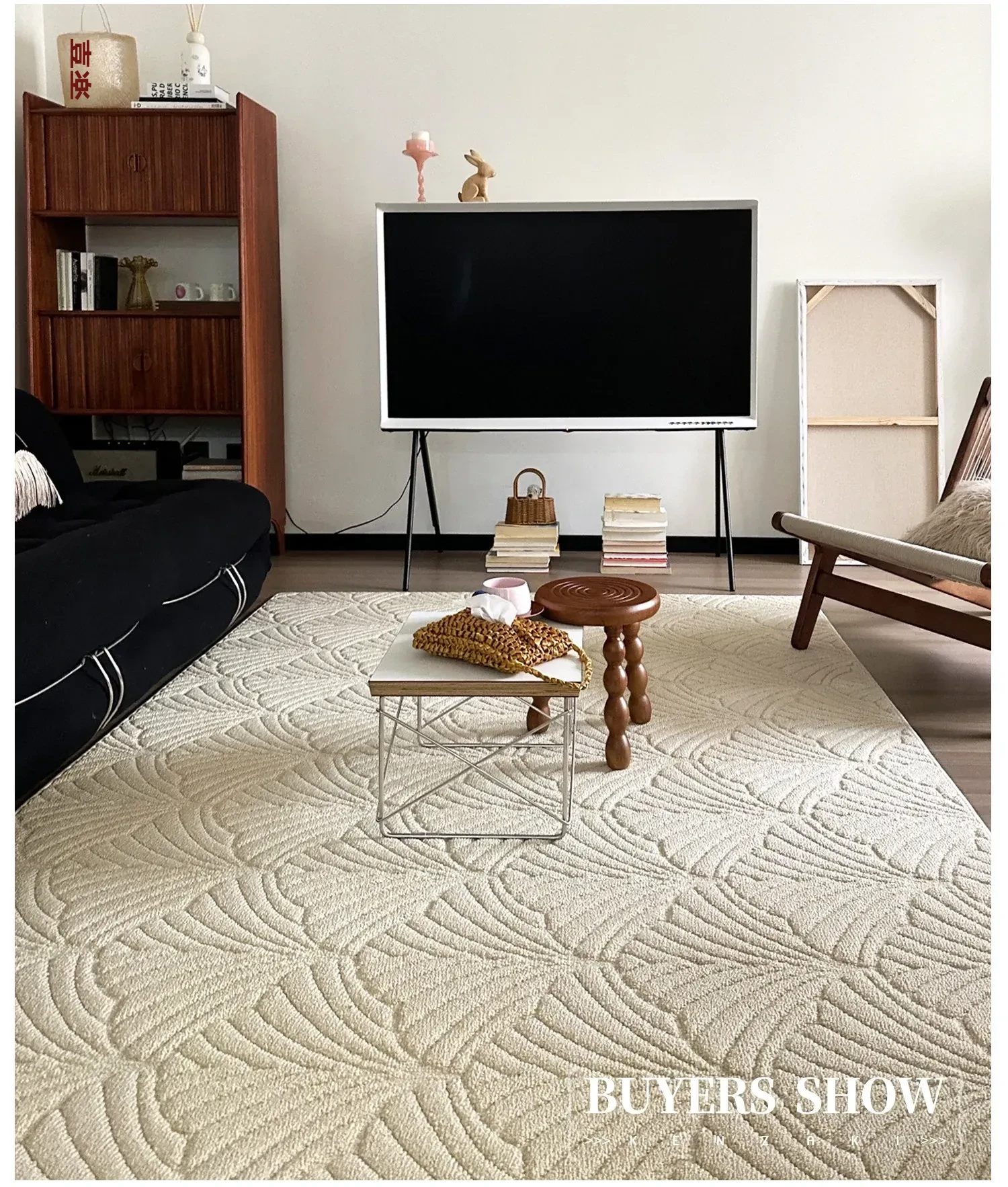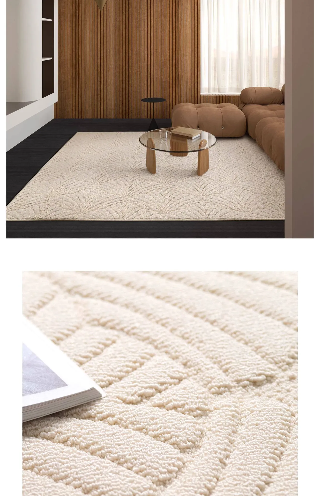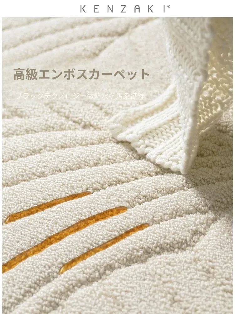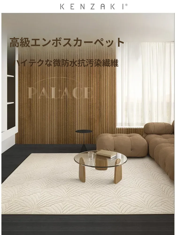 【カーペット大セール】リビングルームに最適!高級感あふれるフレンチクリームスタイルの立体浮彫カーペット。防水&汚れ防止機能付きで、お部屋をおしゃれに演出します!