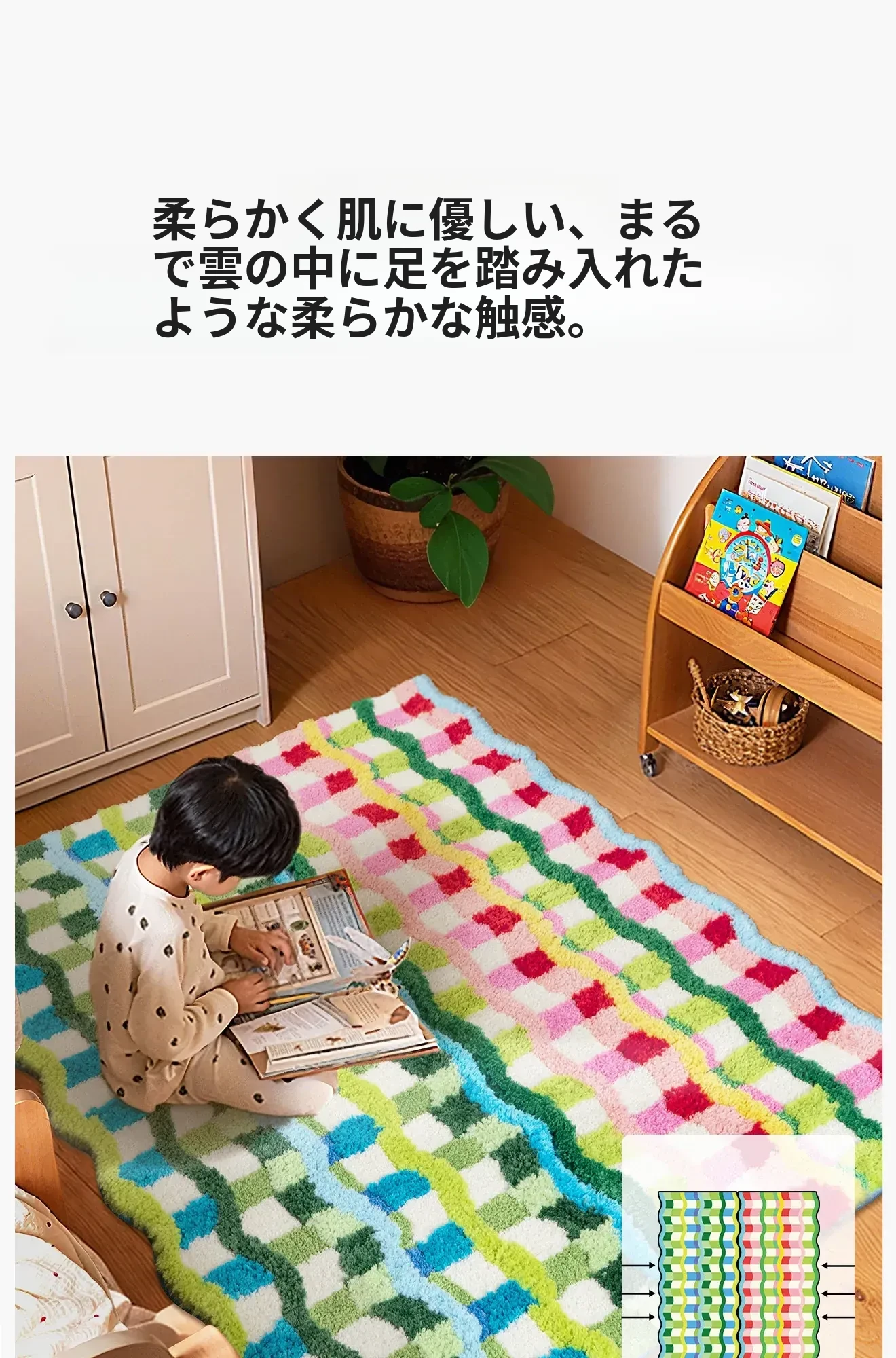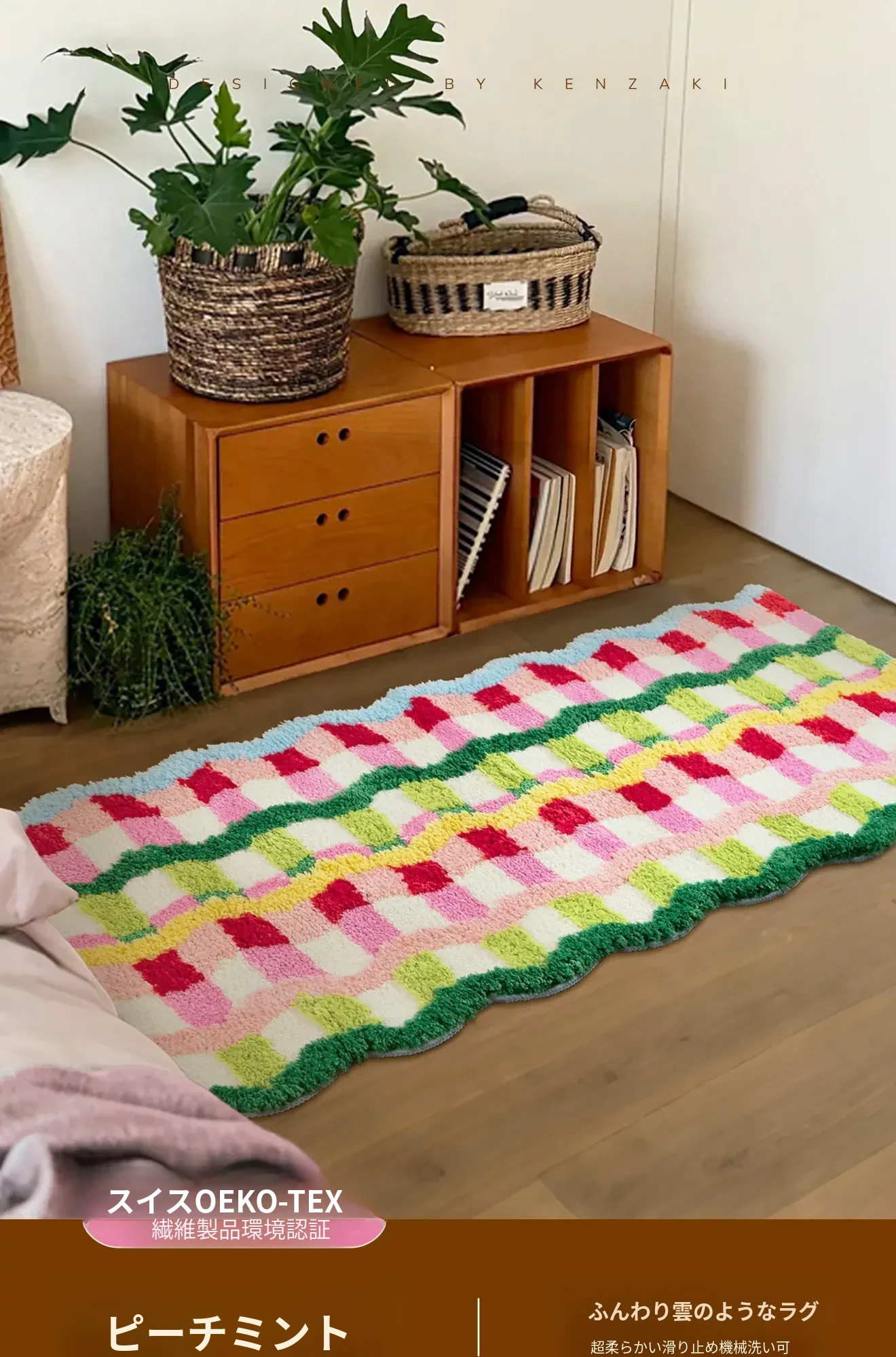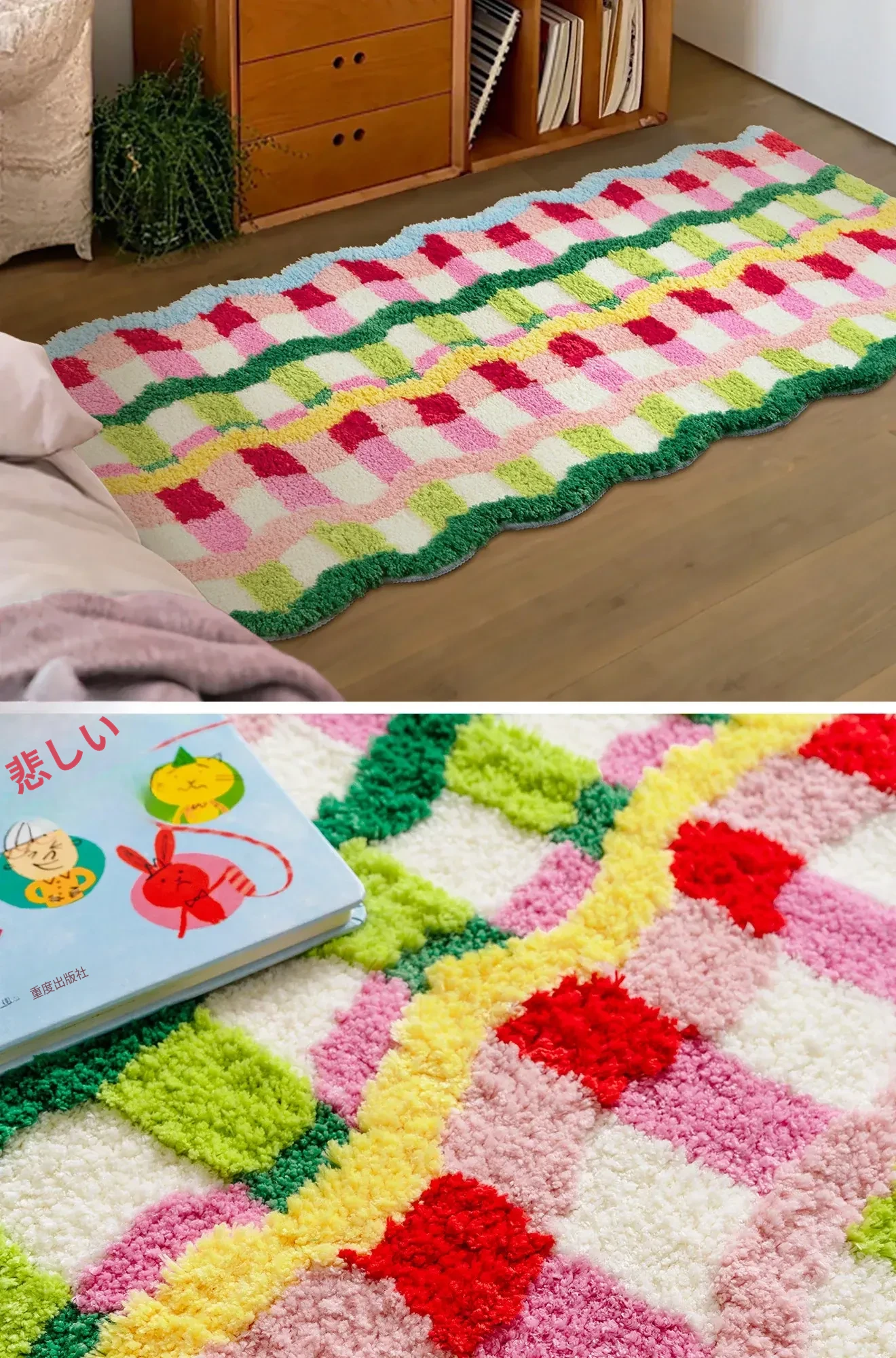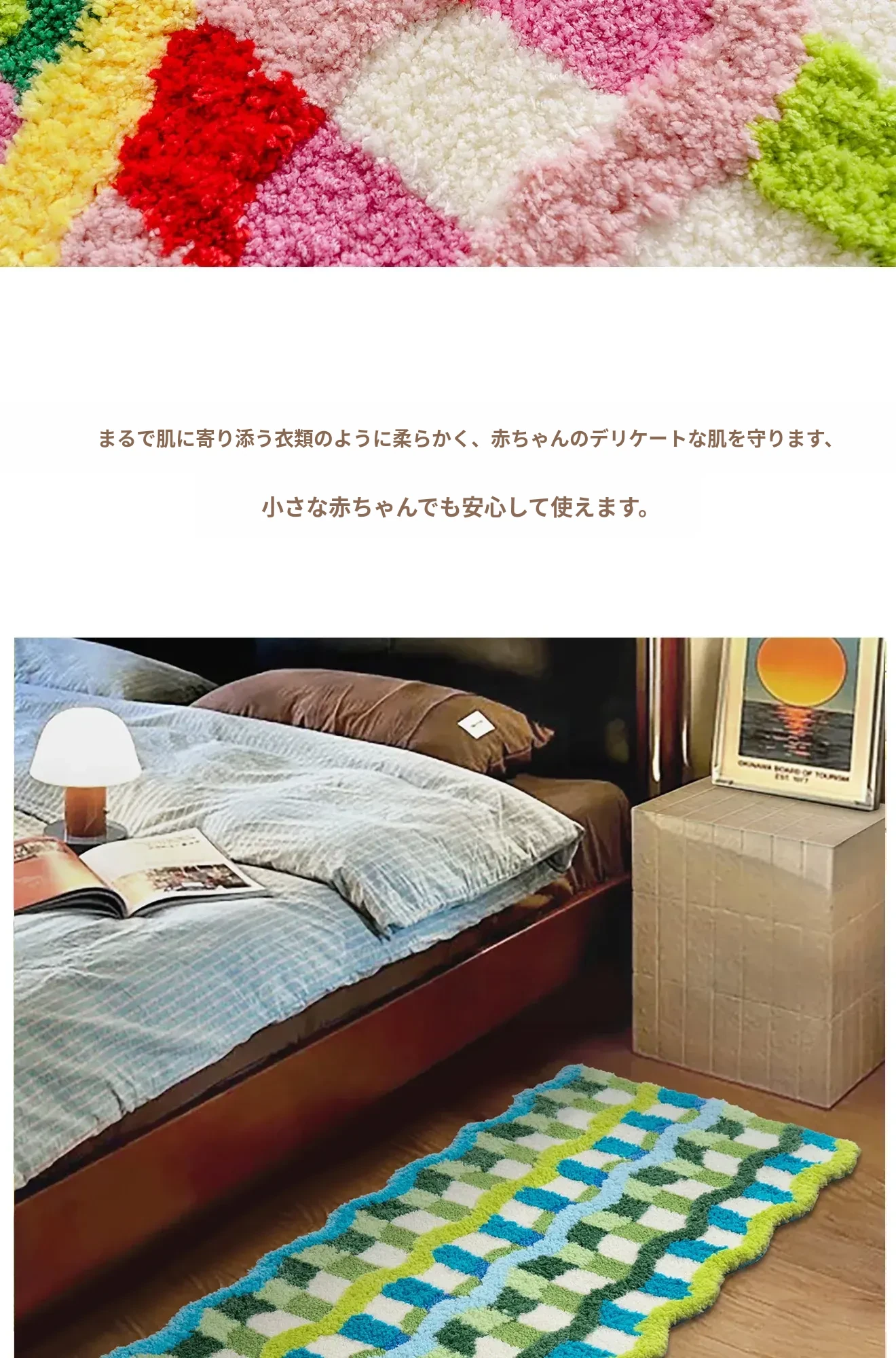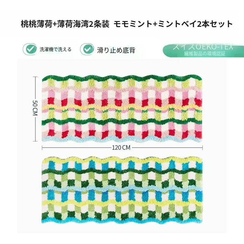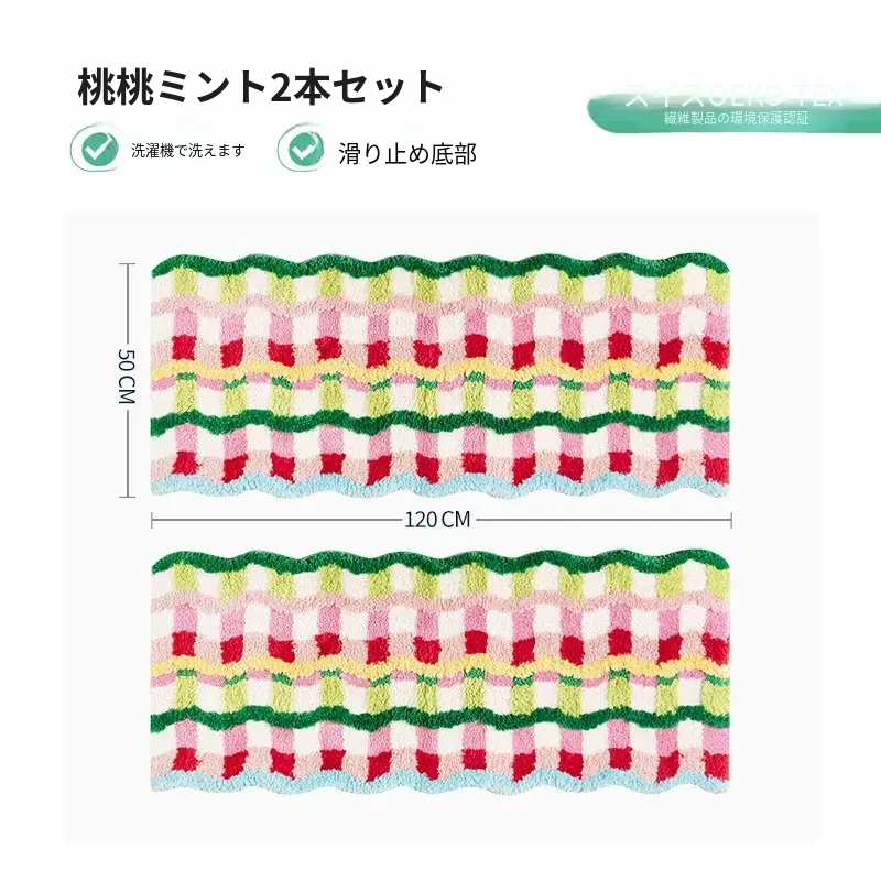 カラフルなドーパミンデザインの異形ロングマット - おしゃれなインスタ風のカーペットで、子供部屋や寝室にぴったり!洗濯機で洗えるからお手入れも簡単。心地よい空間を演出します!