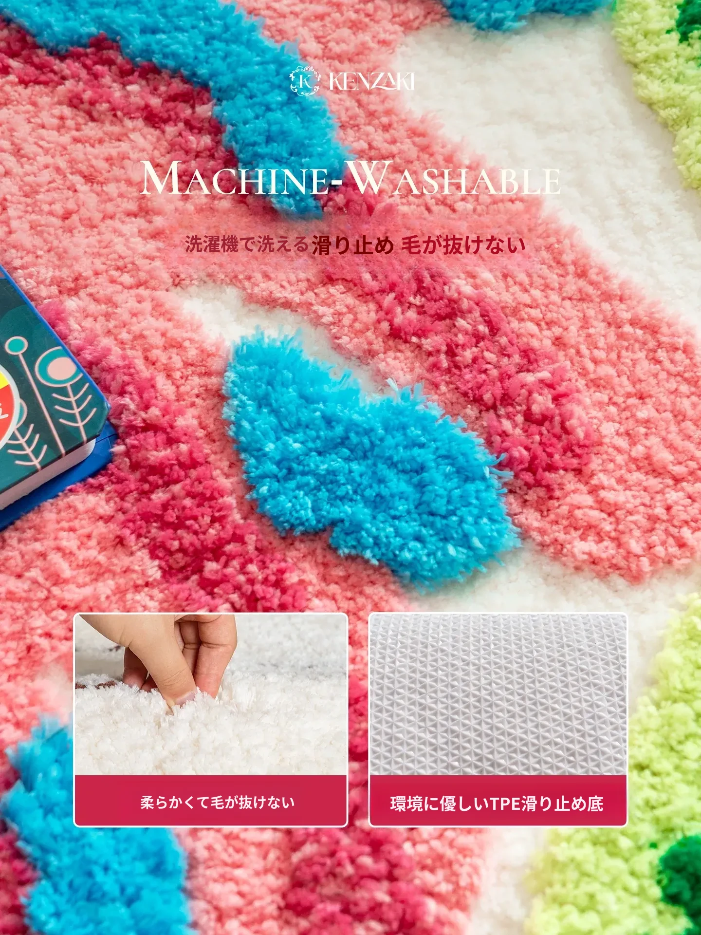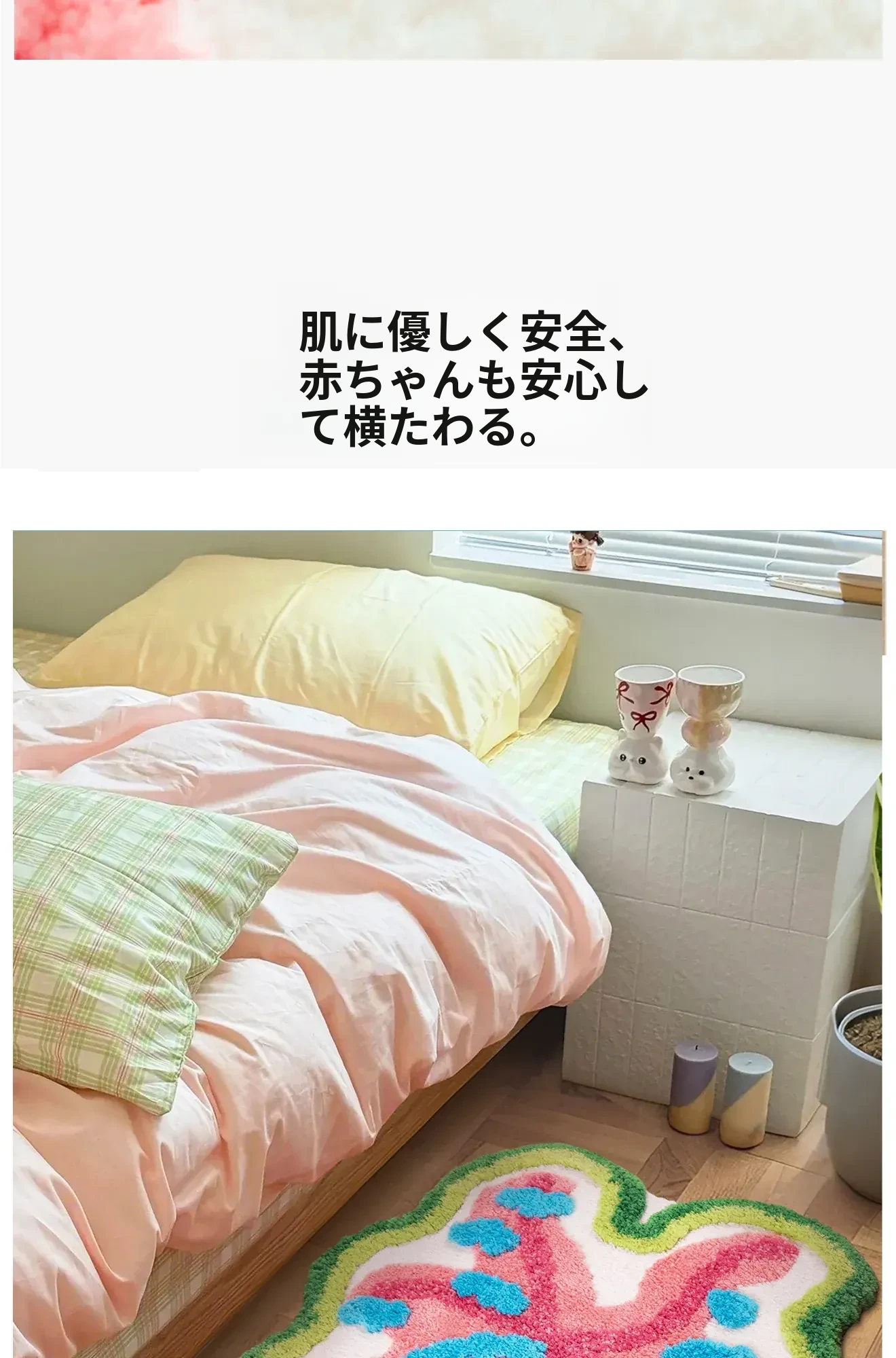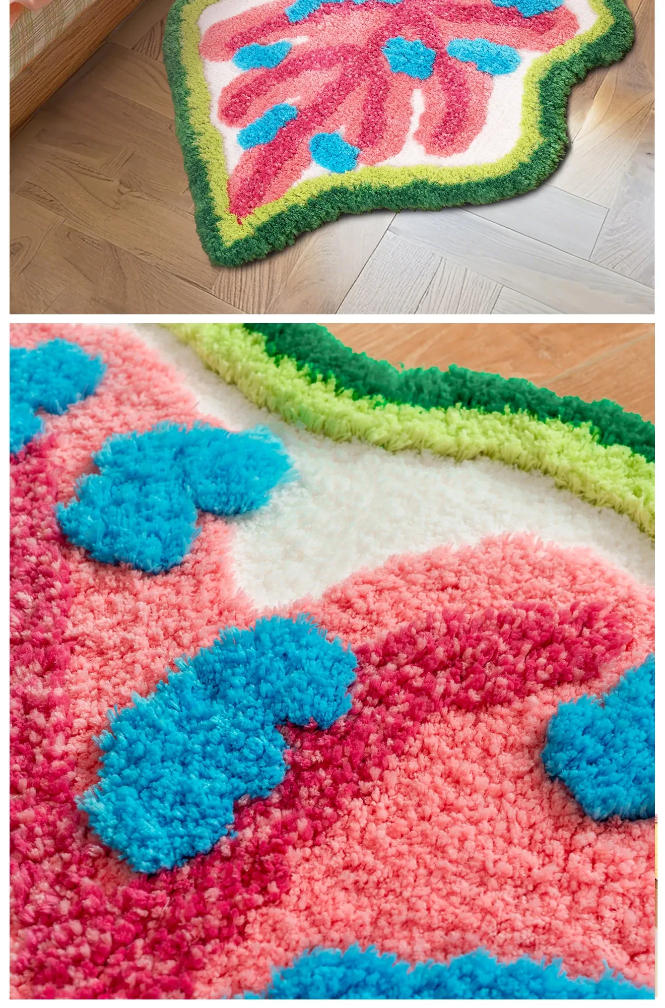 カラフルな葉っぱデザインの子供部屋用ラグマット!男の子・女の子にぴったり、インスタ映えするおしゃれなベッドサイドカーペット。洗濯機で簡単にお手入れ可能で、毎日楽しい空間を演出します!