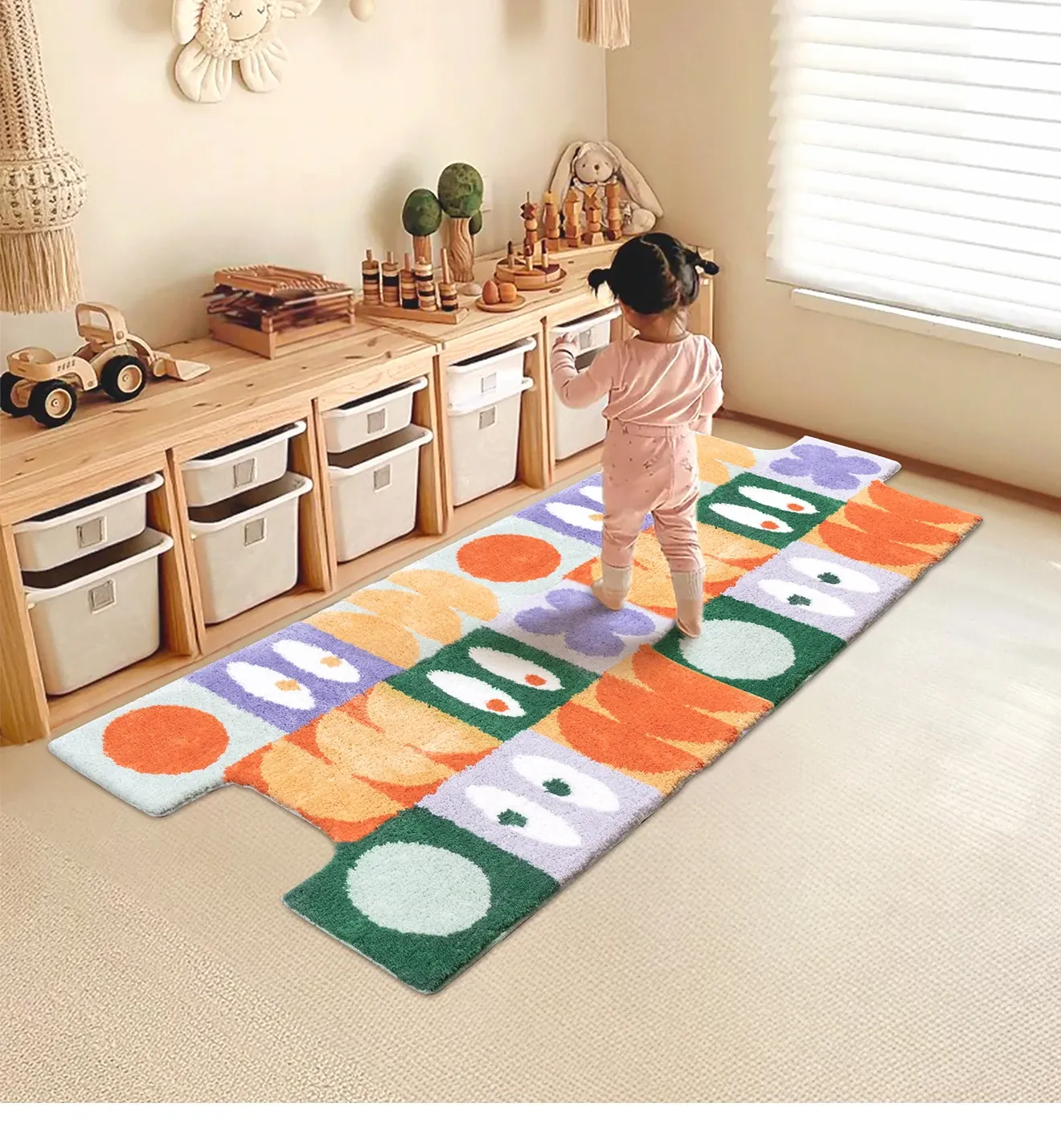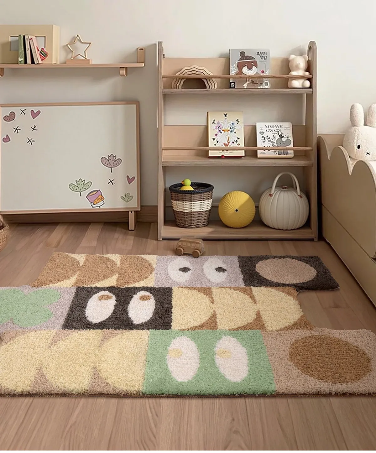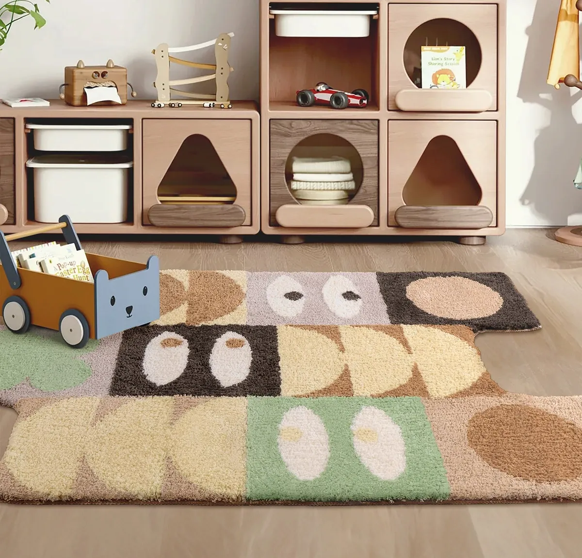 可愛くて厚手!おしゃれなインスタ風の子供用カーペット - ベッドサイドやリーディングエリアに最適なブラウンのユニークな形状、洗濯機で洗えるのでいつでも清潔に保てます!