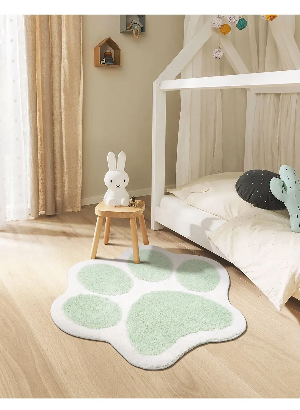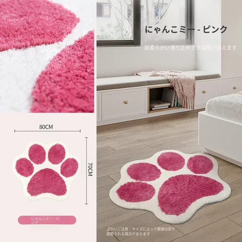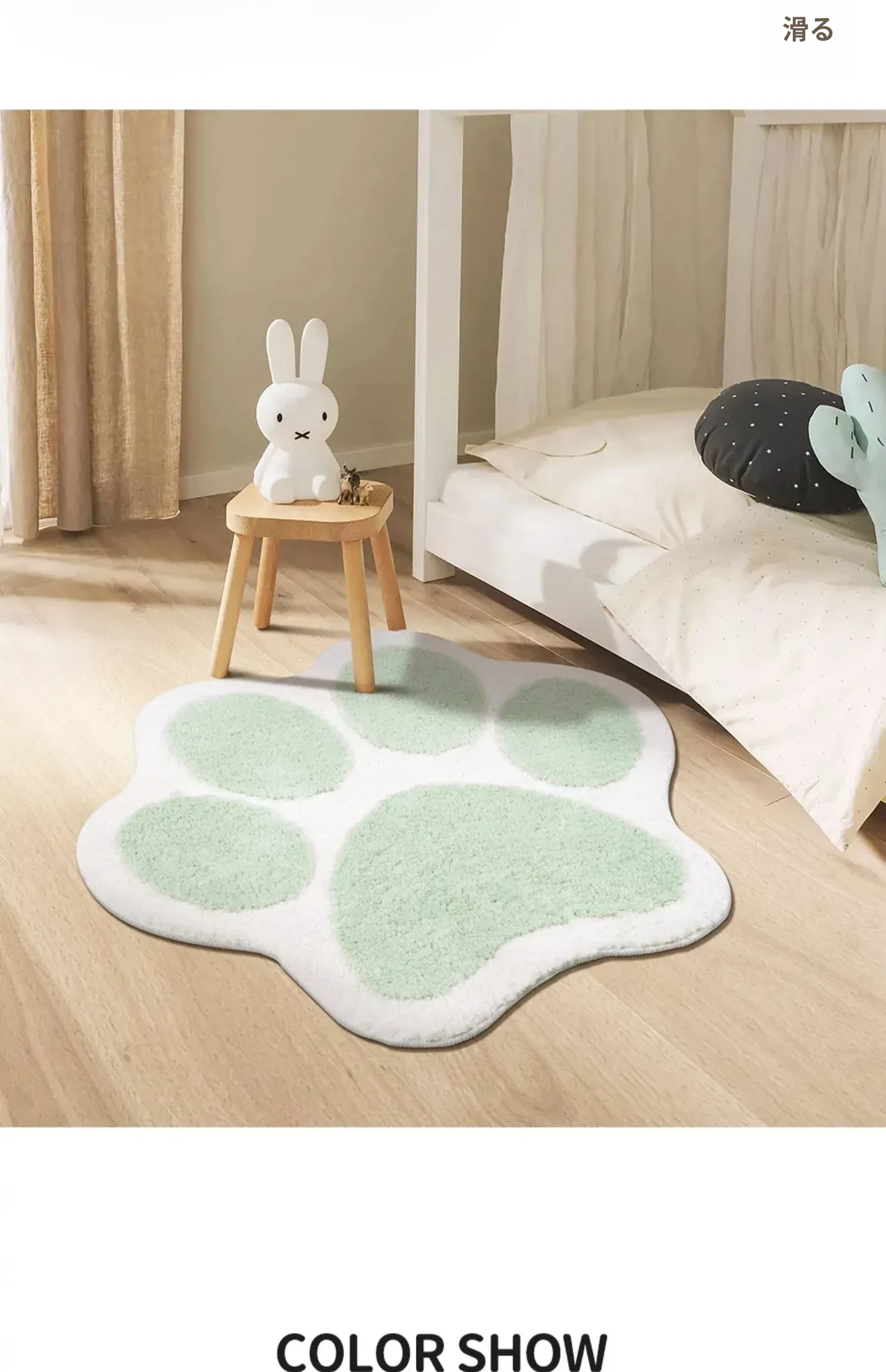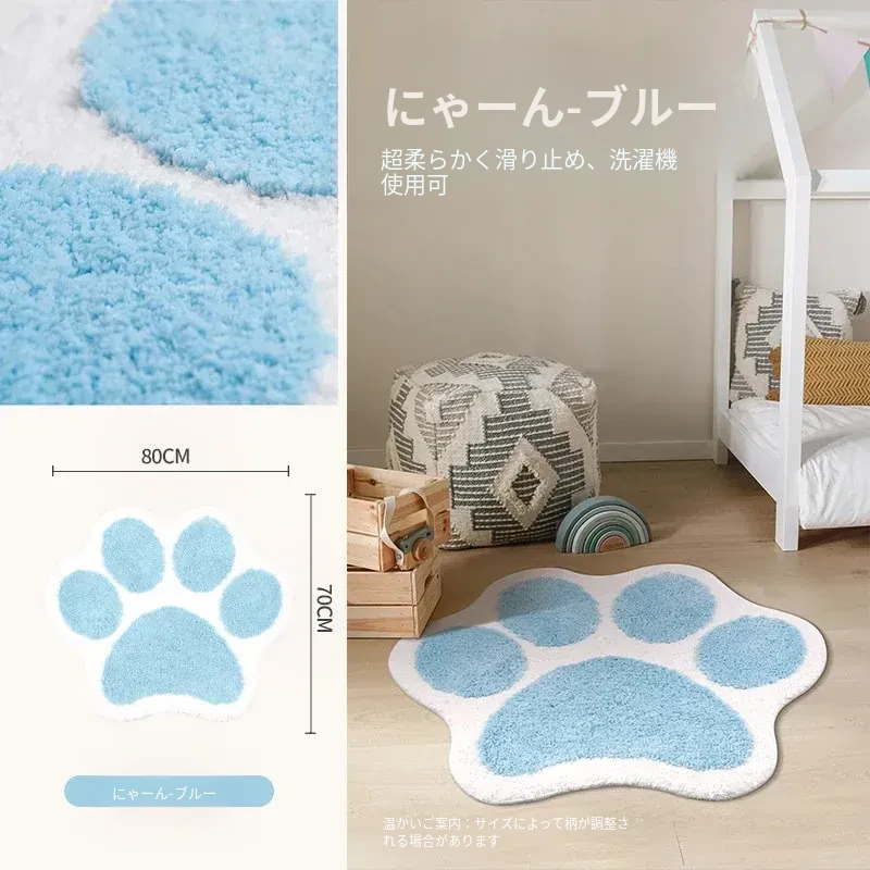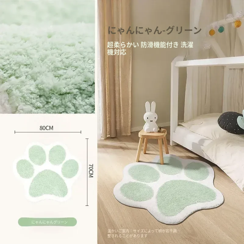 かわいい猫の爪デザイン!子供部屋にぴったりのインスタ風ベッドサイドカーペット。おしゃれな緑色で、お読みの時間をもっと楽しく!滑り止め付きで安心、洗濯機で簡単お手入れ可能。