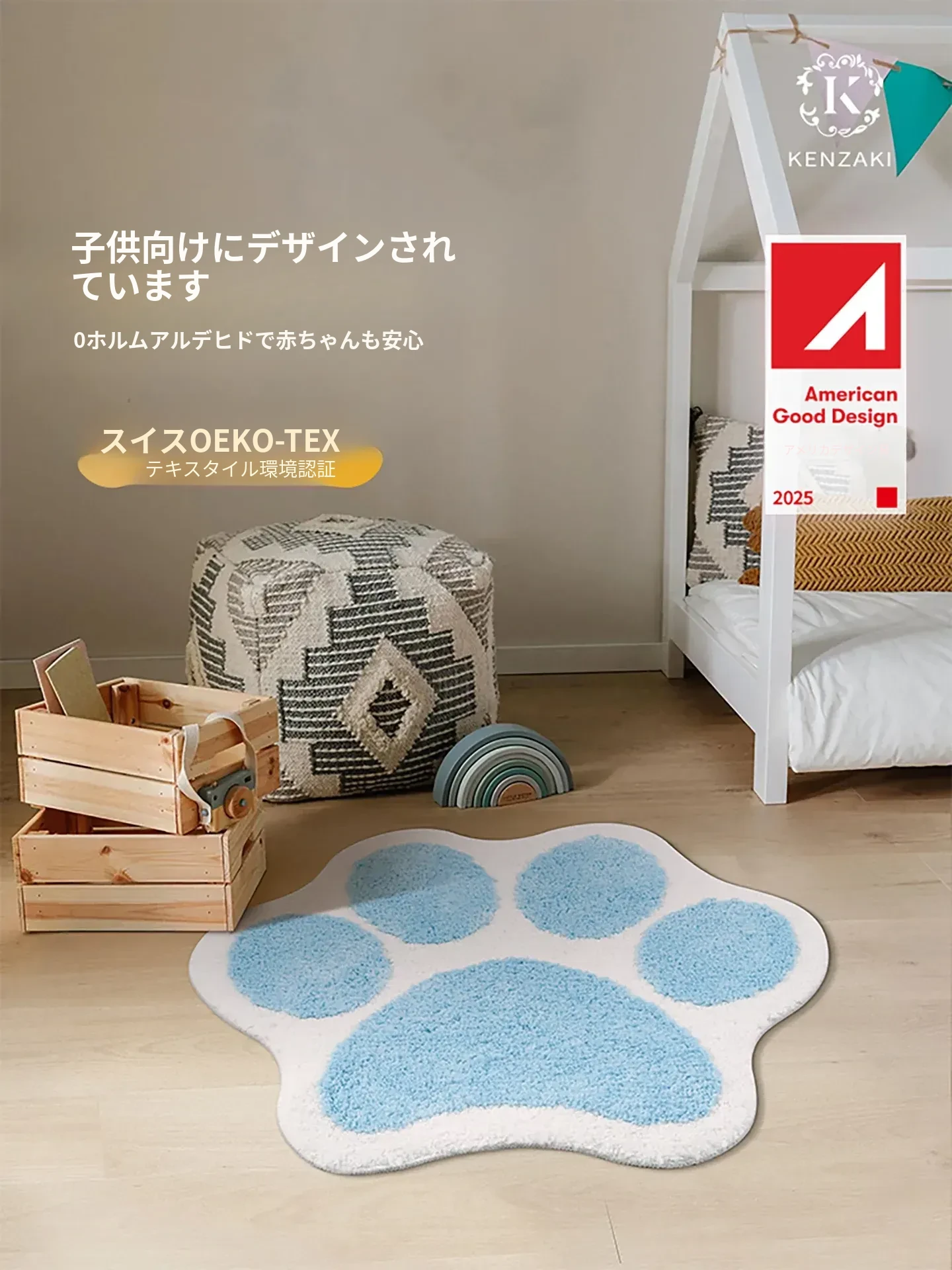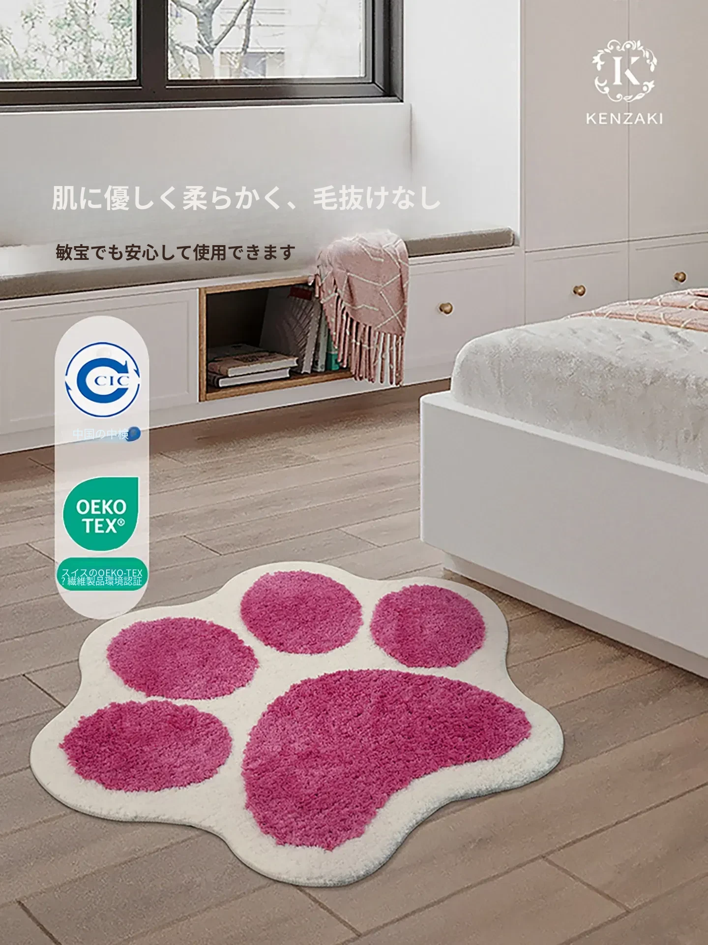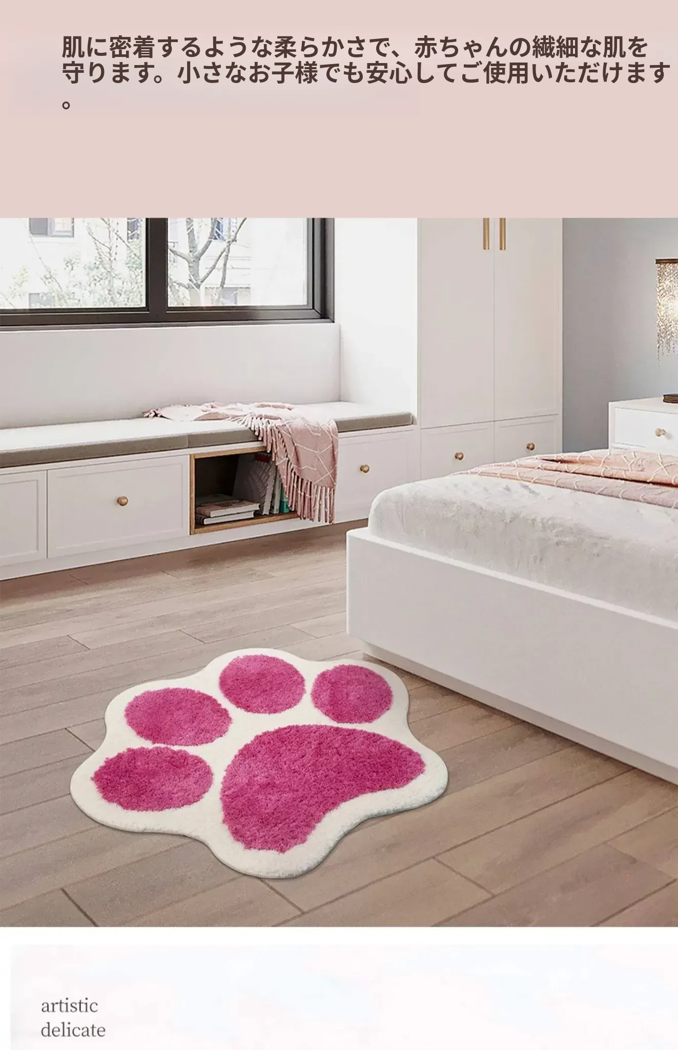 かわいい猫の爪デザイン!子供部屋にぴったりのインスタ風ベッドサイドカーペット。おしゃれな緑色で、お読みの時間をもっと楽しく!滑り止め付きで安心、洗濯機で簡単お手入れ可能。