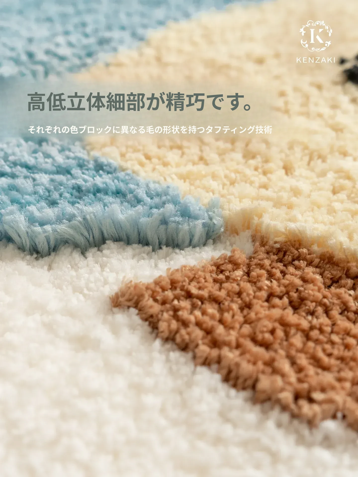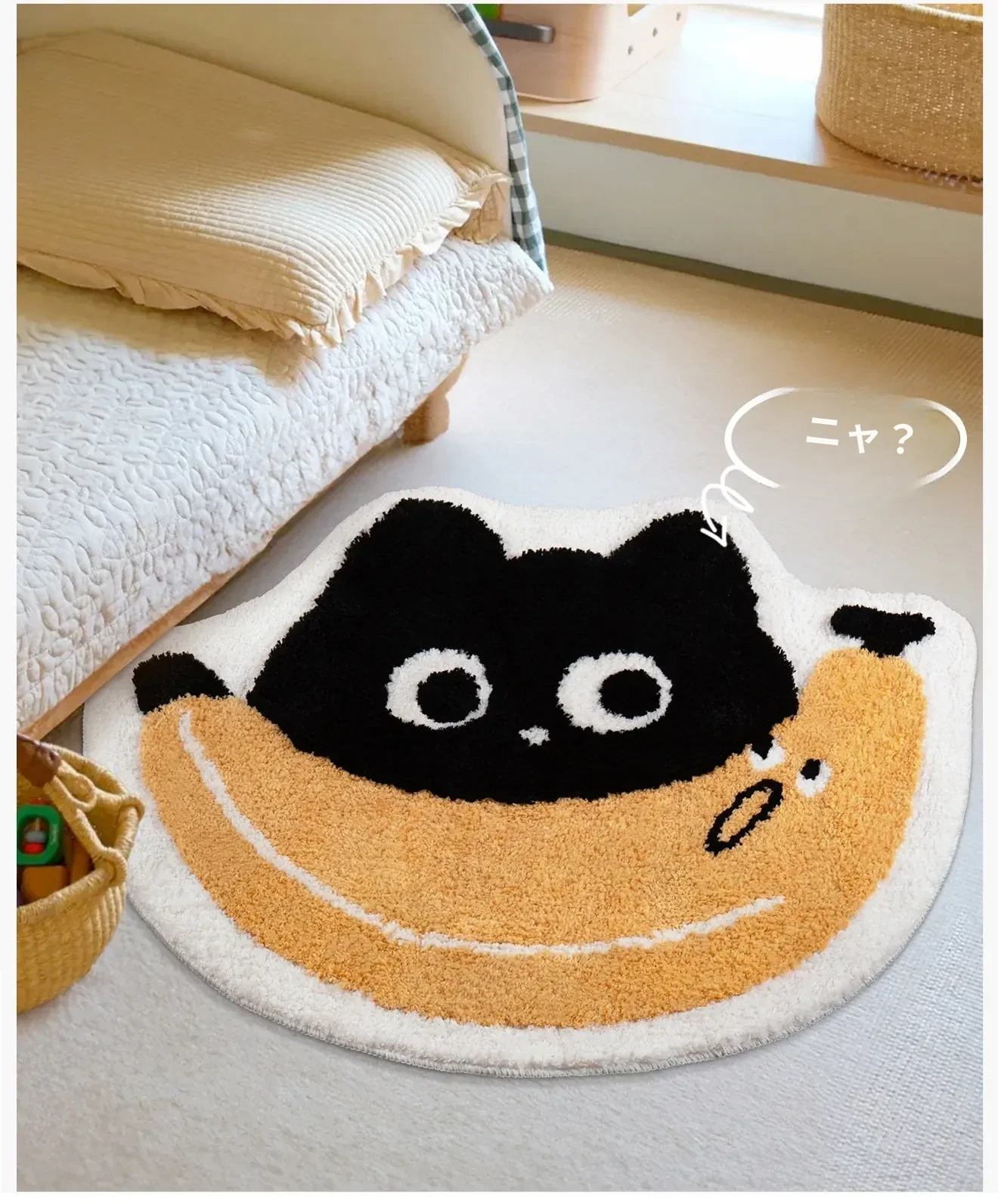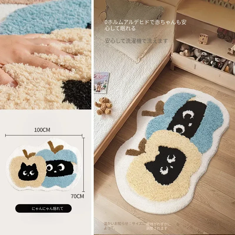 子供部屋用カーペット|インスタ風ベッドサイドマット|男の子・女の子にぴったりの可愛い猫デザイン|不規則な形状で厚手|洗濯機で簡単お手入れ可能!