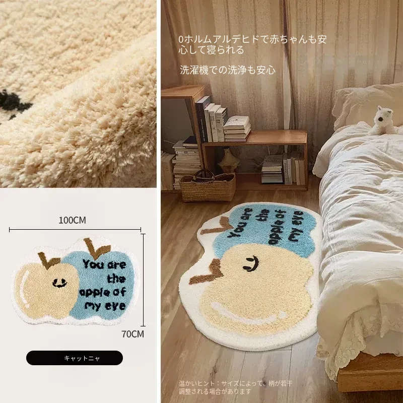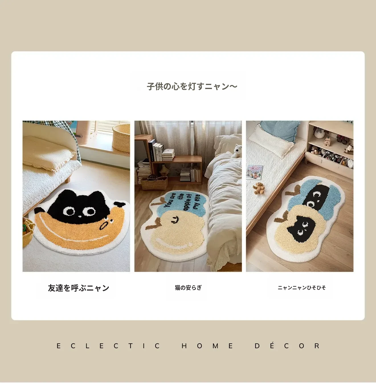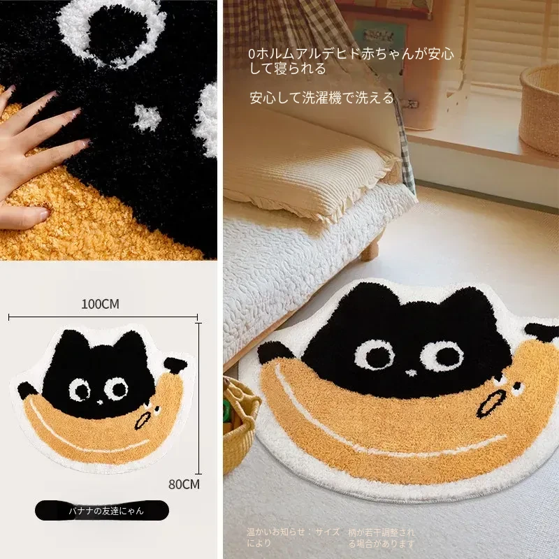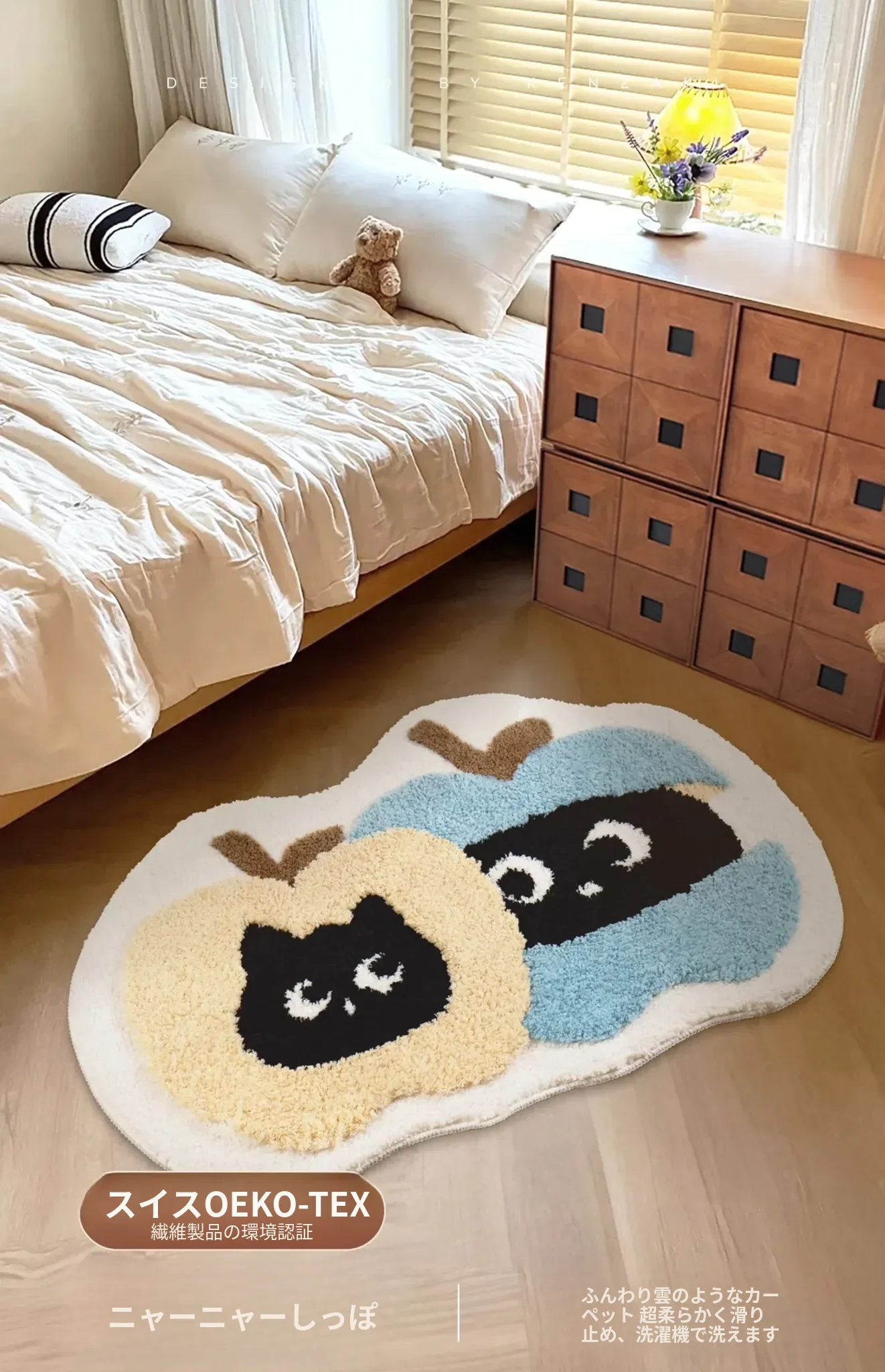 子供部屋にぴったり!おしゃれなインスタ風のベッドサイドマット。男の子も女の子も大好きな可愛いにゃんこデザイン。厚手で安心、しかも洗濯機で洗えるからいつでも清潔!