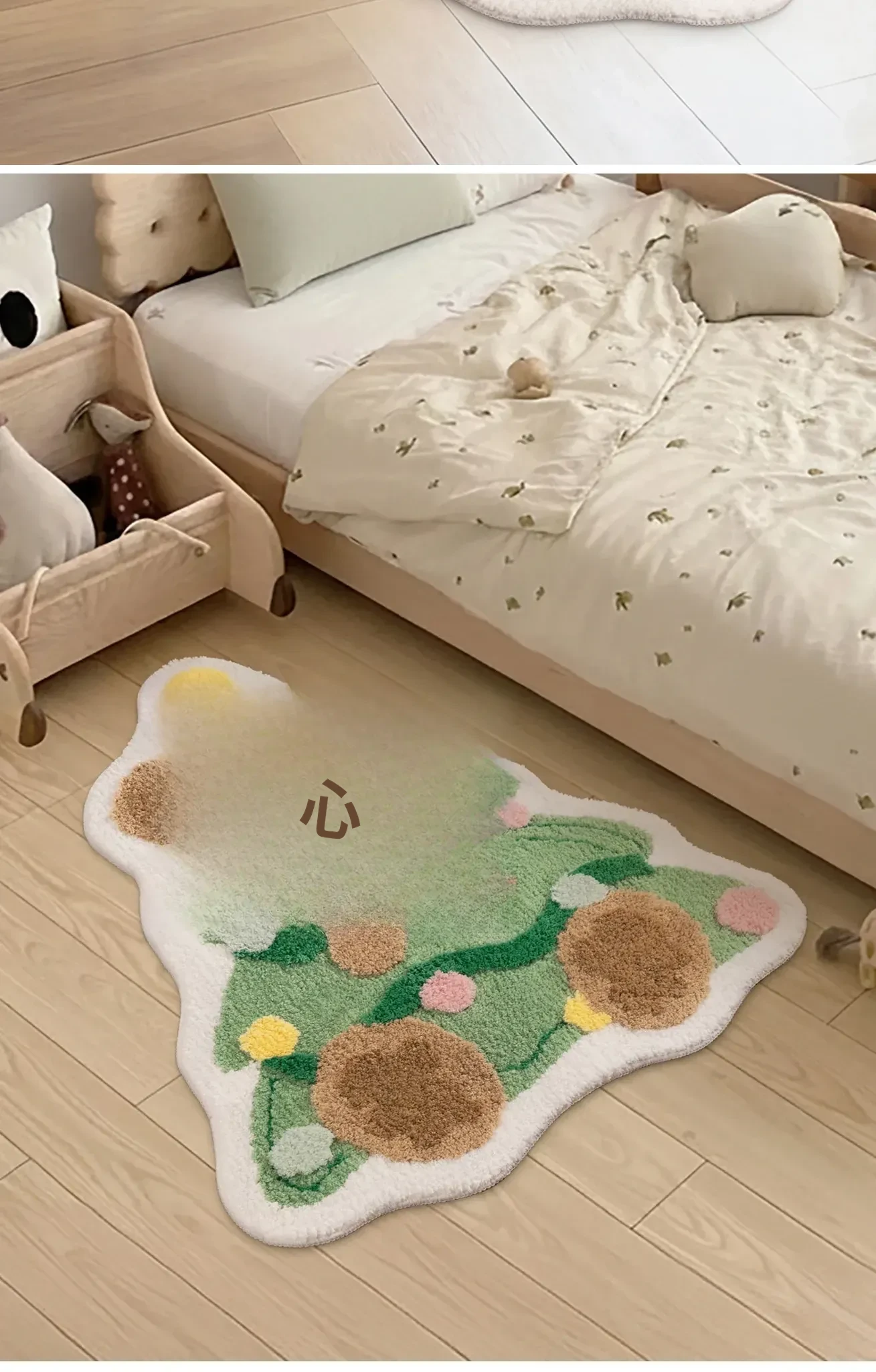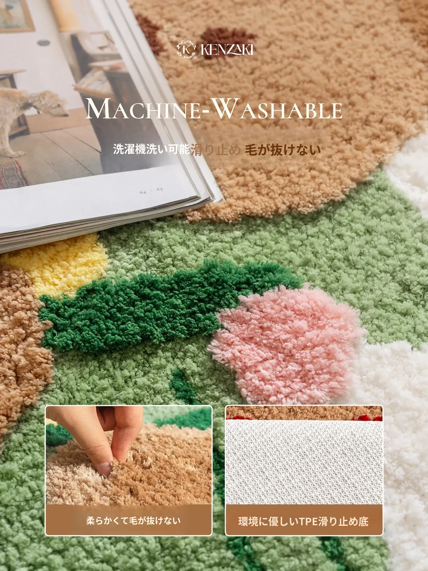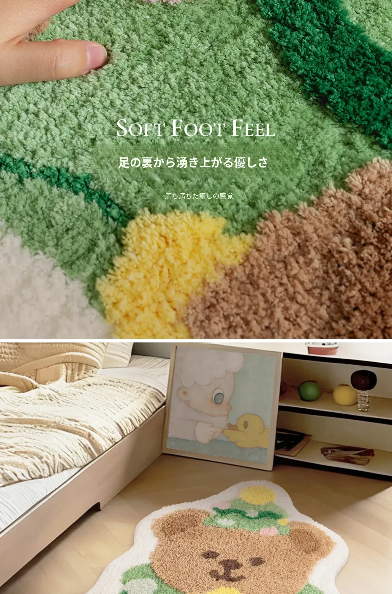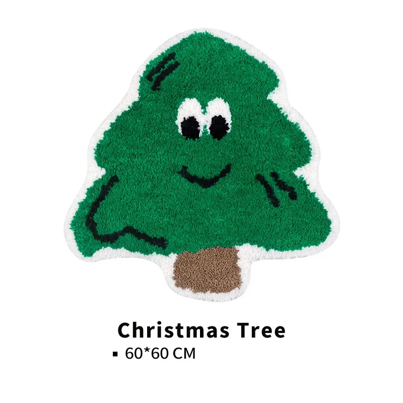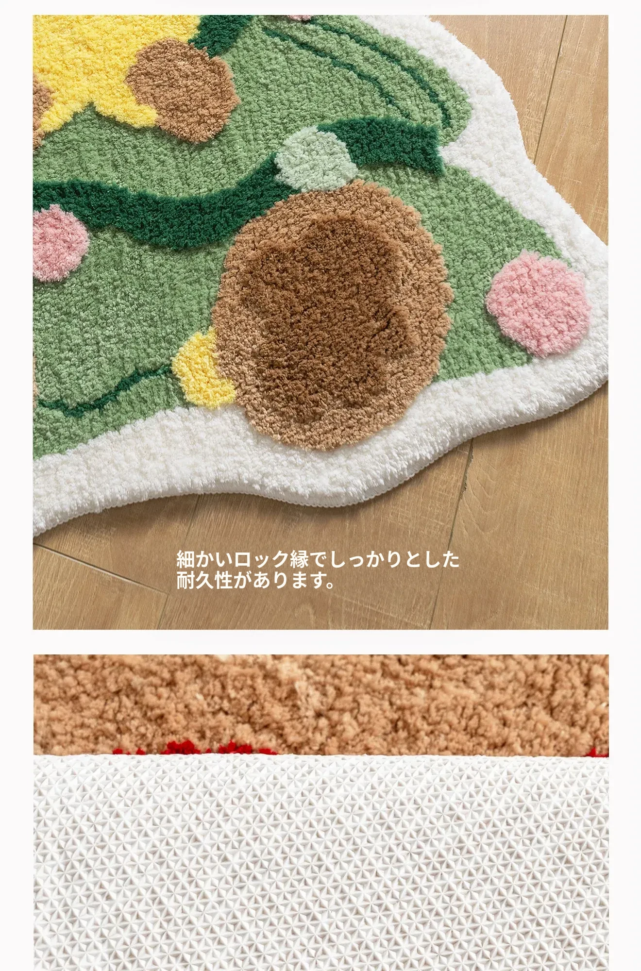 クリスマスのかわいいクマとクリスマスツリーのデザイン!ベッドサイドや子供部屋にぴったりの異形ラグ。洗濯機で簡単に洗えるので、お手入れも楽々!男の子も女の子も喜ぶ、冬の特別なアイテムです。