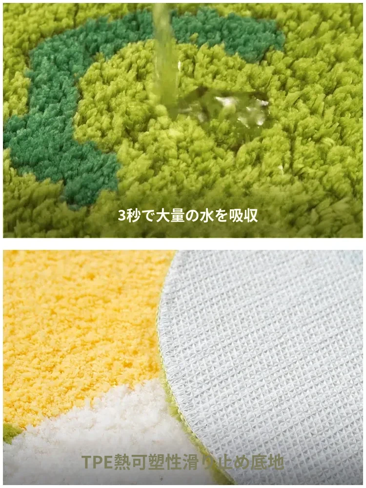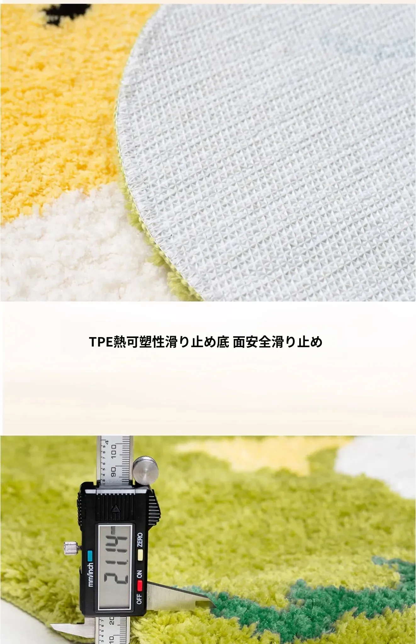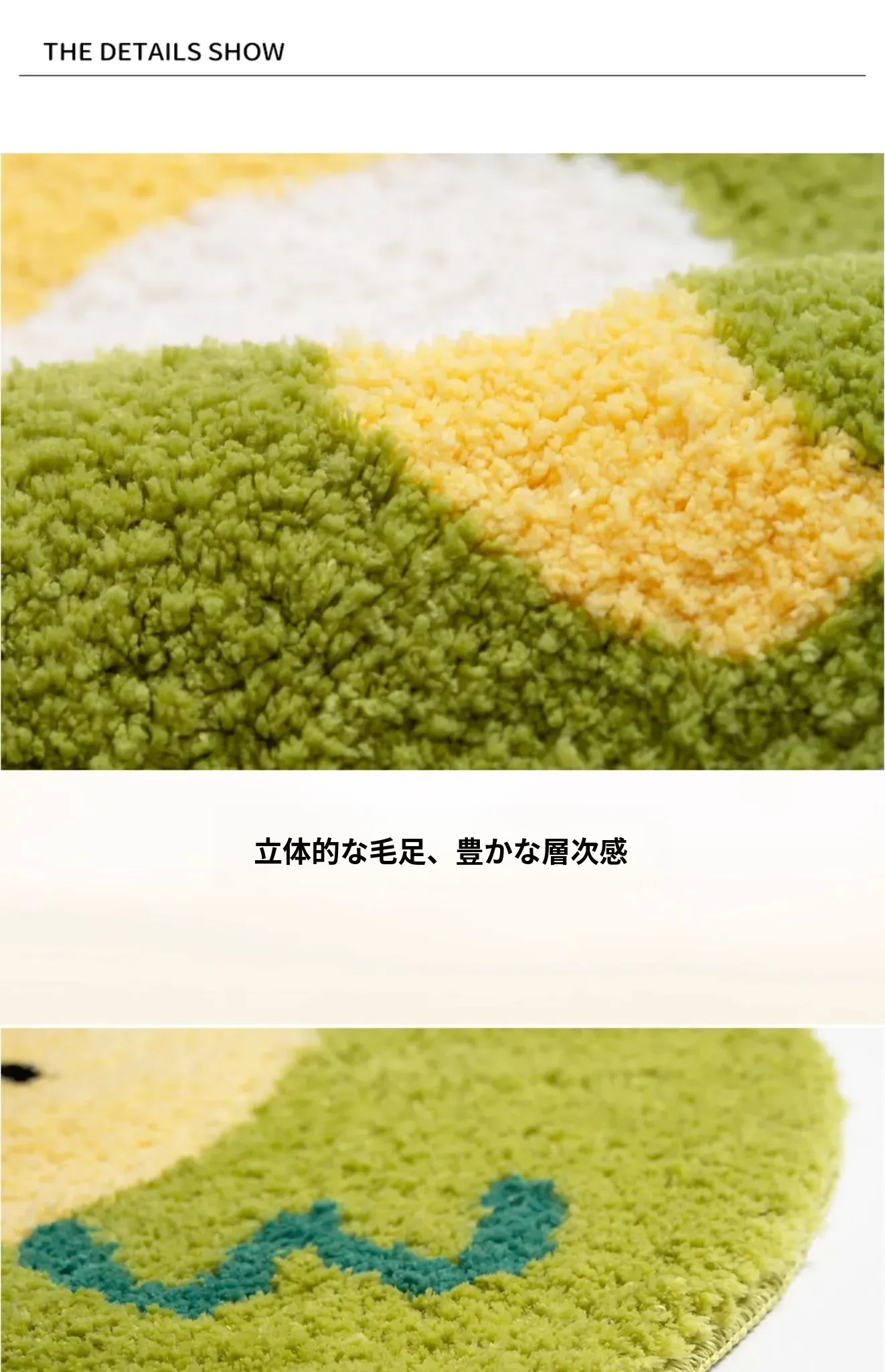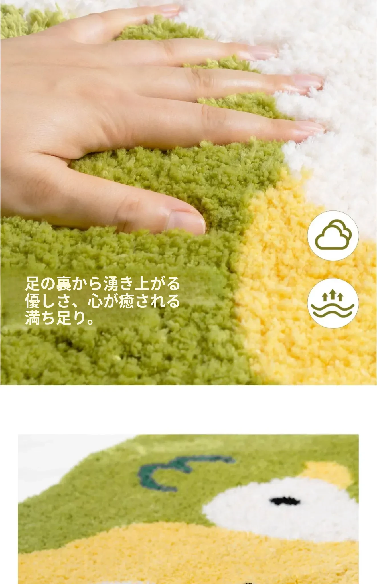 キュートなアヒルデザインの子供部屋用カーペット!男の子も女の子も大喜び♪ おしゃれなグリーンの異形マットは、ベッドサイドにもぴったり。洗濯機で洗えるので、いつでも清潔に保てます!