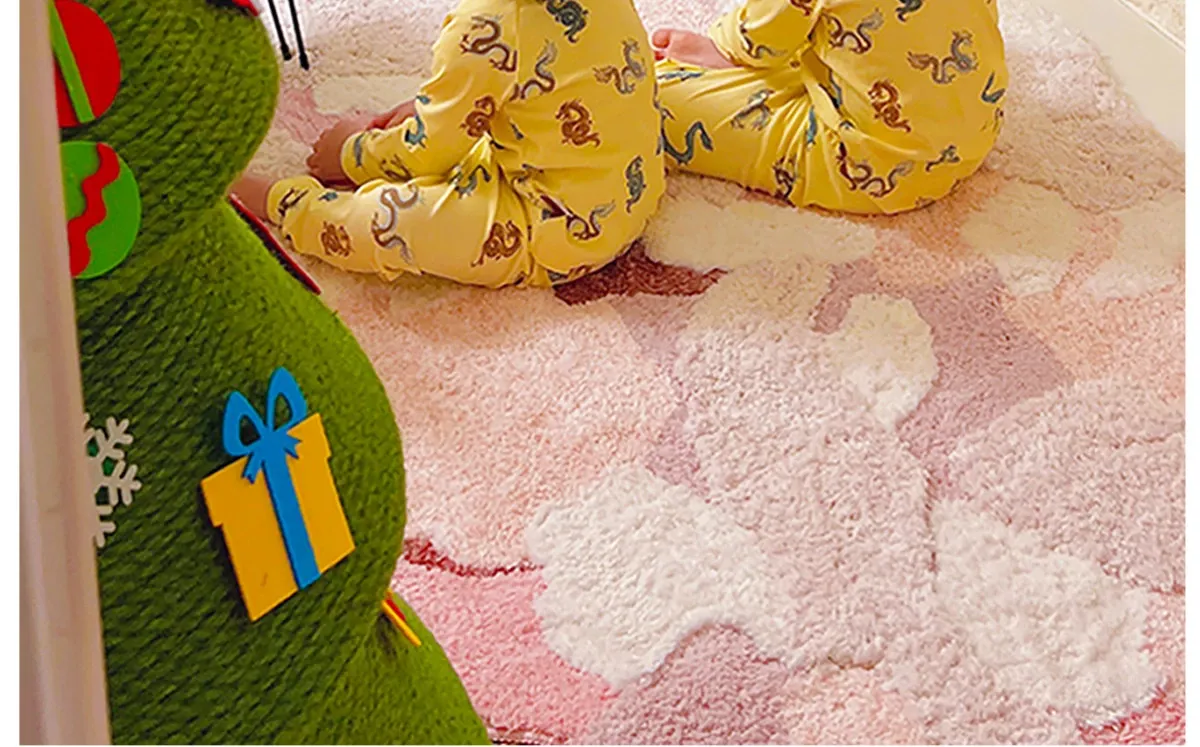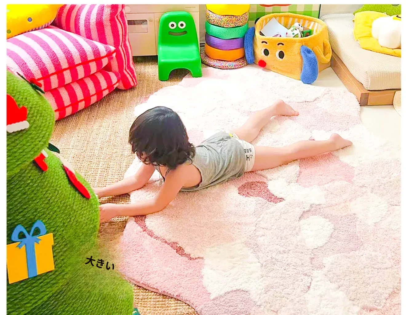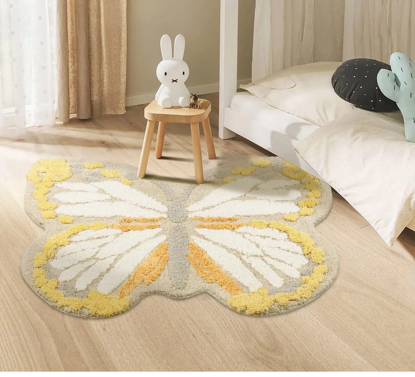 かわいい赤い蝶のデザインが魅力!子供部屋や女の子の寝室にぴったりな高級感あふれる滑り止め付き厚手ラグマット。ベッドサイドや床前に最適で、安全で快適な空間を演出します。