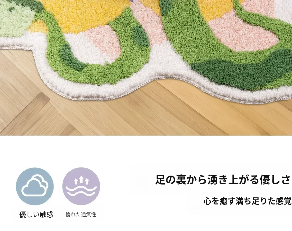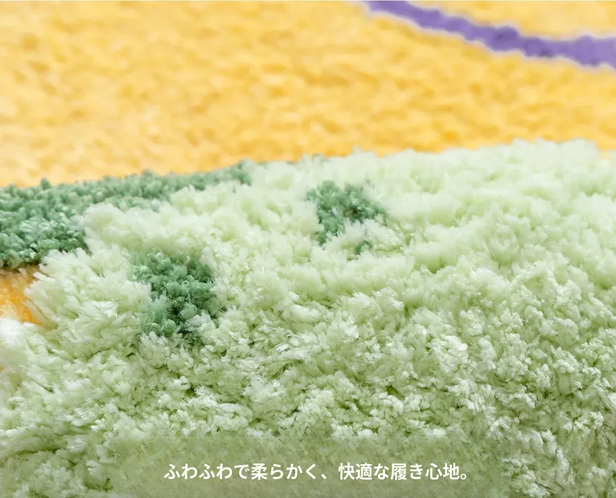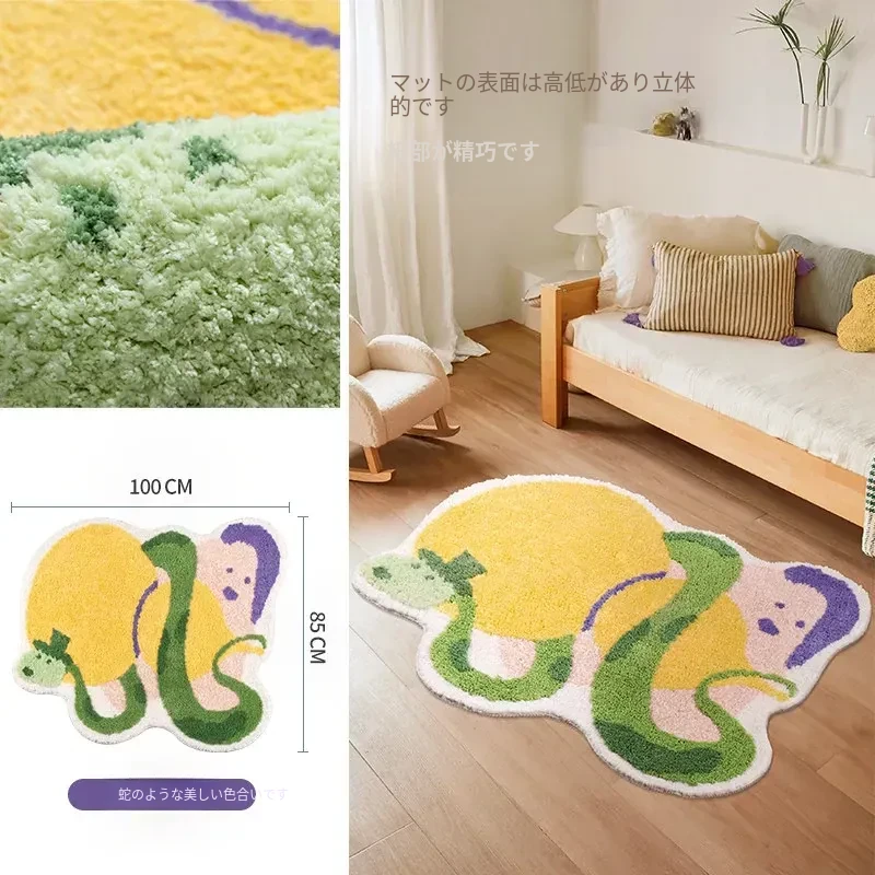 子供部屋にぴったり!ダンスイエローのドーパミンラグ、ふわふわで厚手、リビングや寝室のベッドサイドに最適。洗濯機で簡単に洗える蛇年デザインの滑り止めバスマット。お子様の安全を守り、楽しい空間を演出します!
