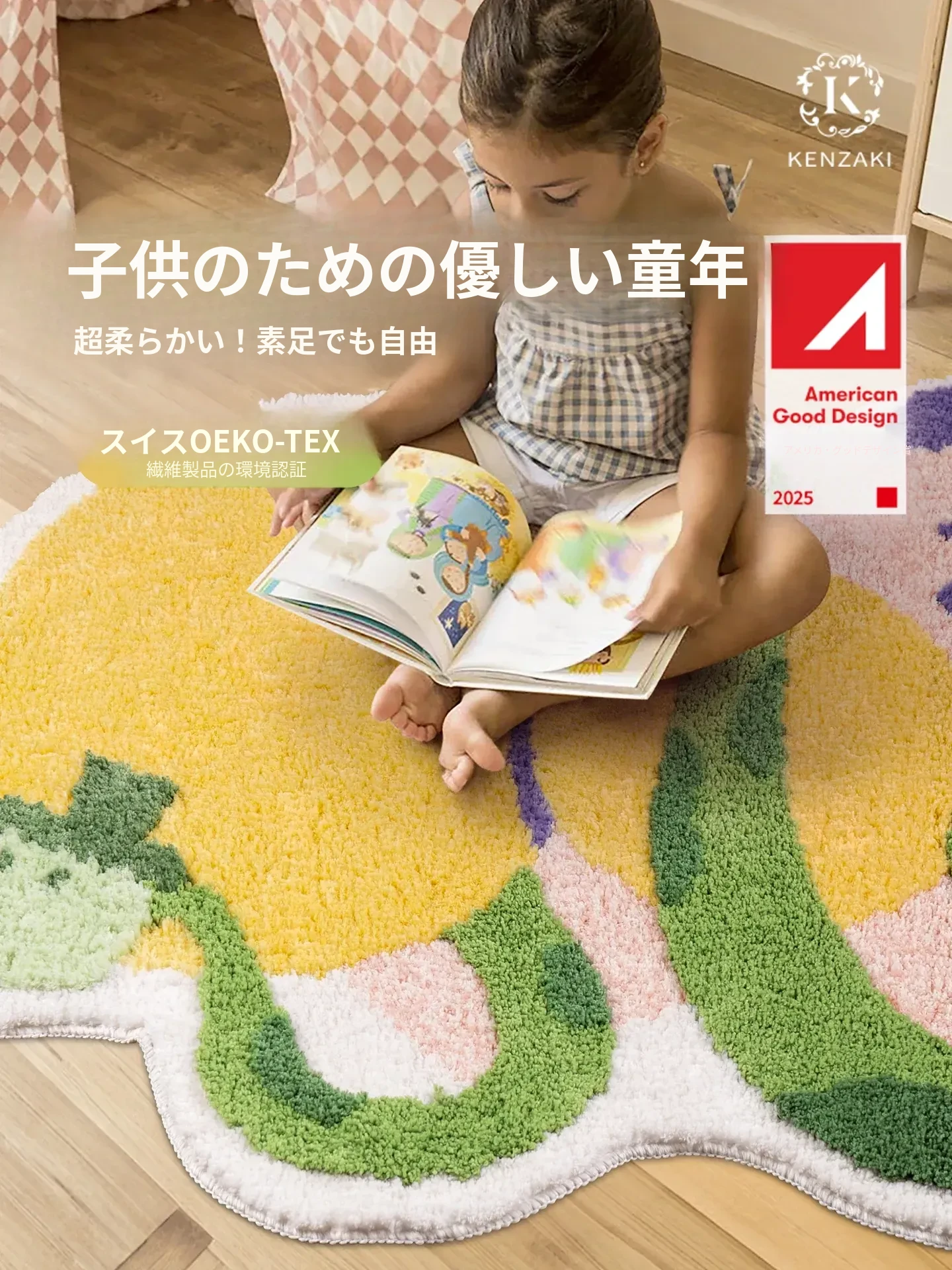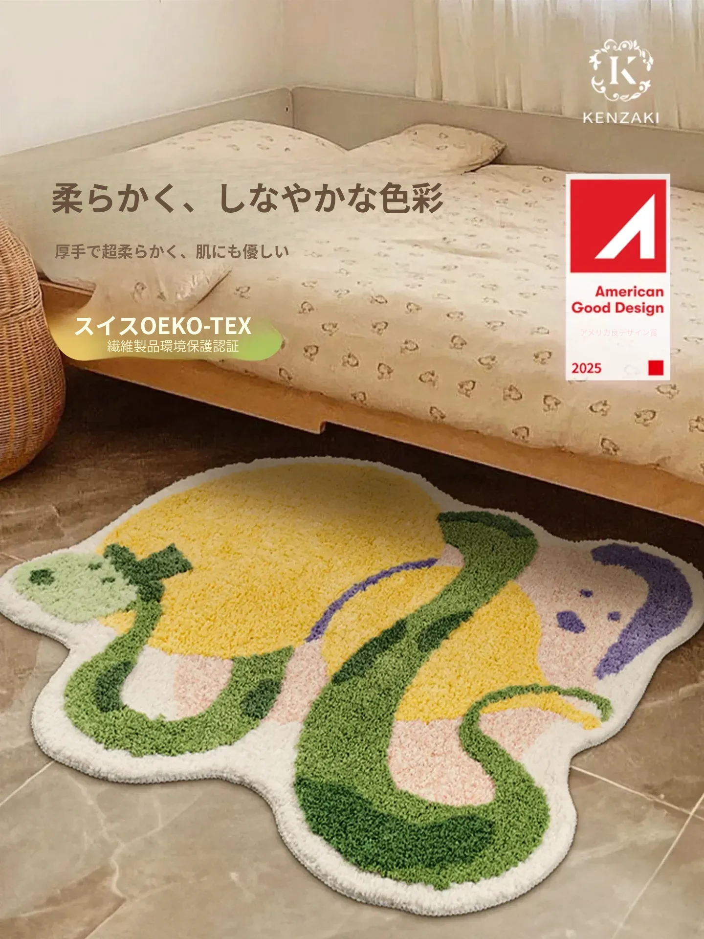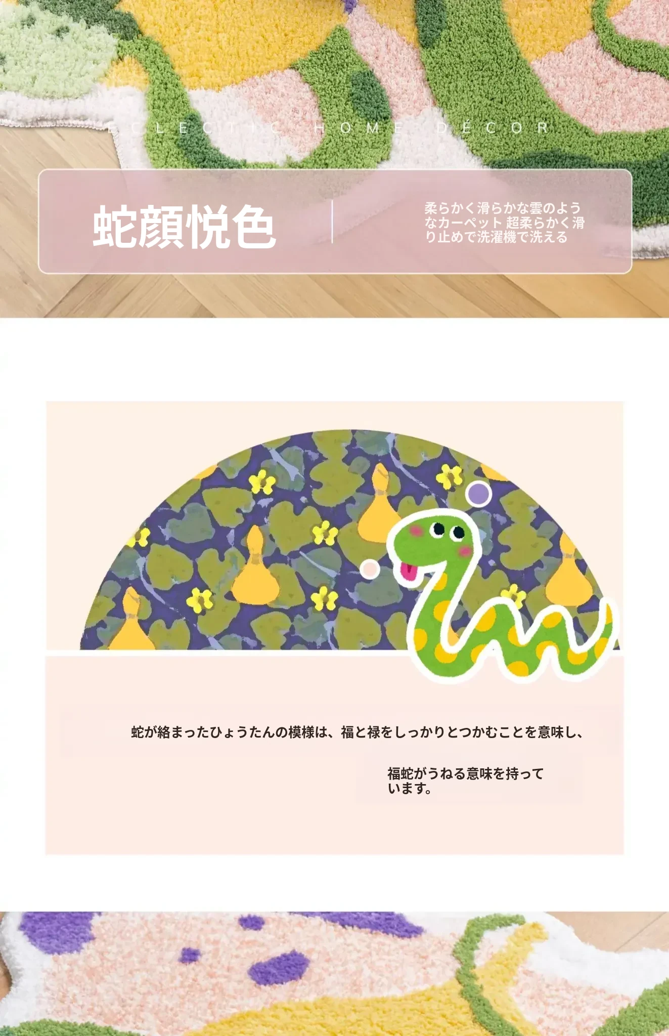 子供部屋にぴったり!ダンスイエローのドーパミンラグ、ふわふわで厚手、リビングや寝室のベッドサイドに最適。洗濯機で簡単に洗える蛇年デザインの滑り止めバスマット。お子様の安全を守り、楽しい空間を演出します!