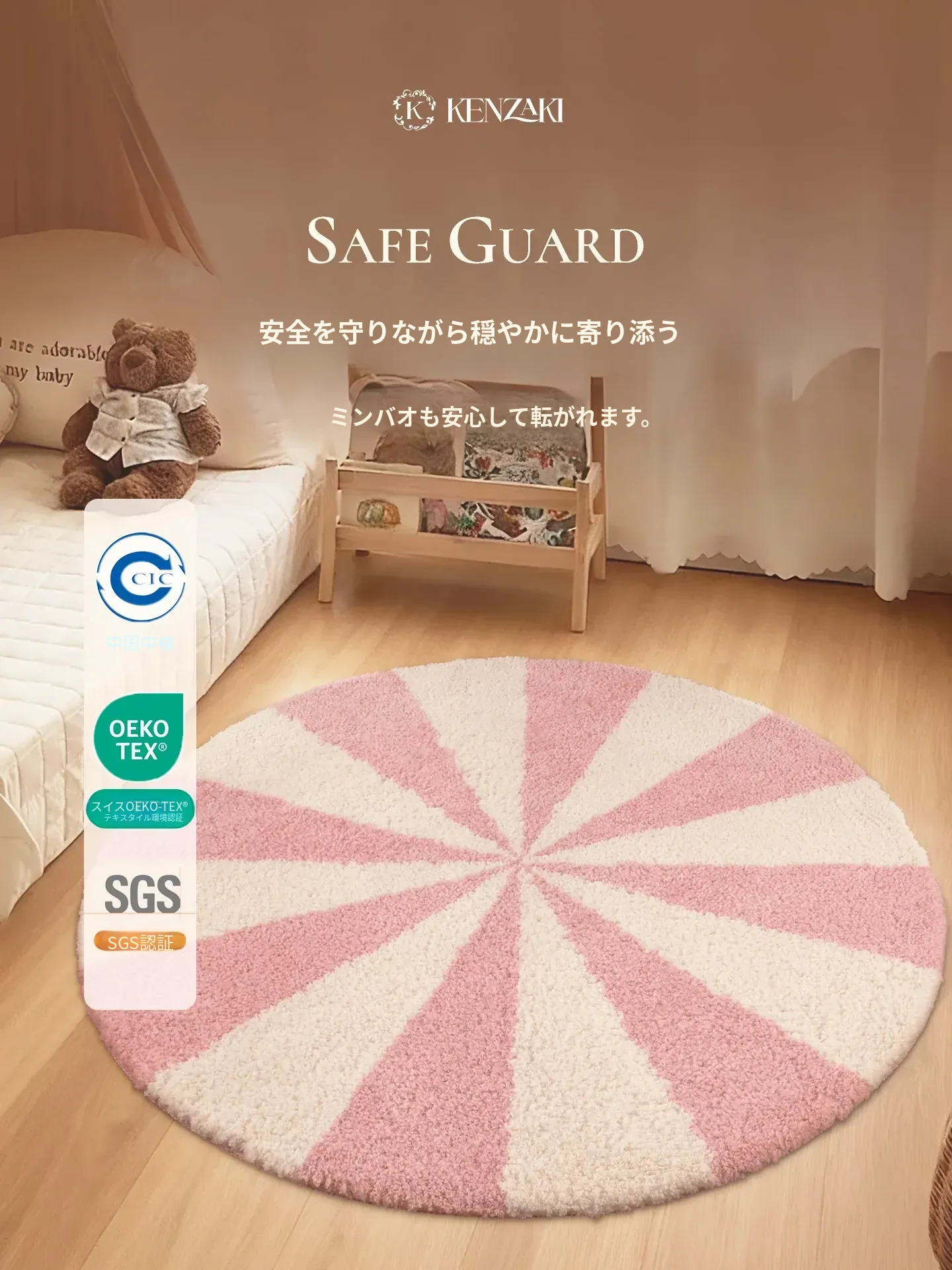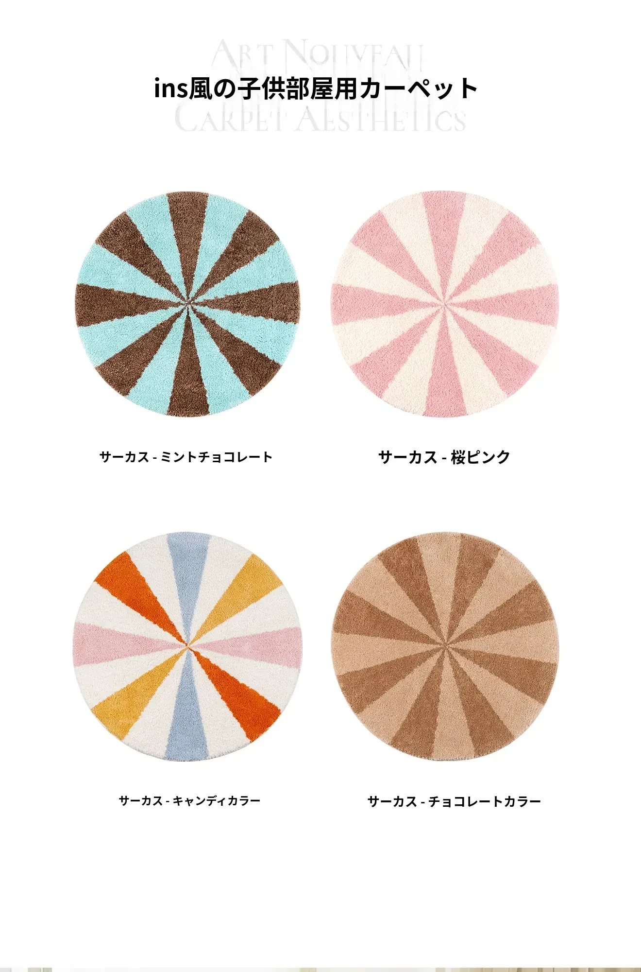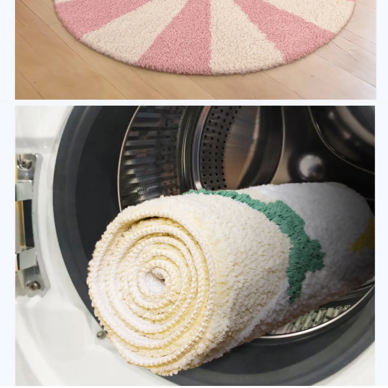 カーペットガールズの寝室にぴったり!インスタ風のベッドサイドカーペット、ピンクの丸型マット。子供部屋に最適な多幸感あふれるレインボーデザイン。洗濯機で丸洗い可能で、いつでも清潔をキープ!