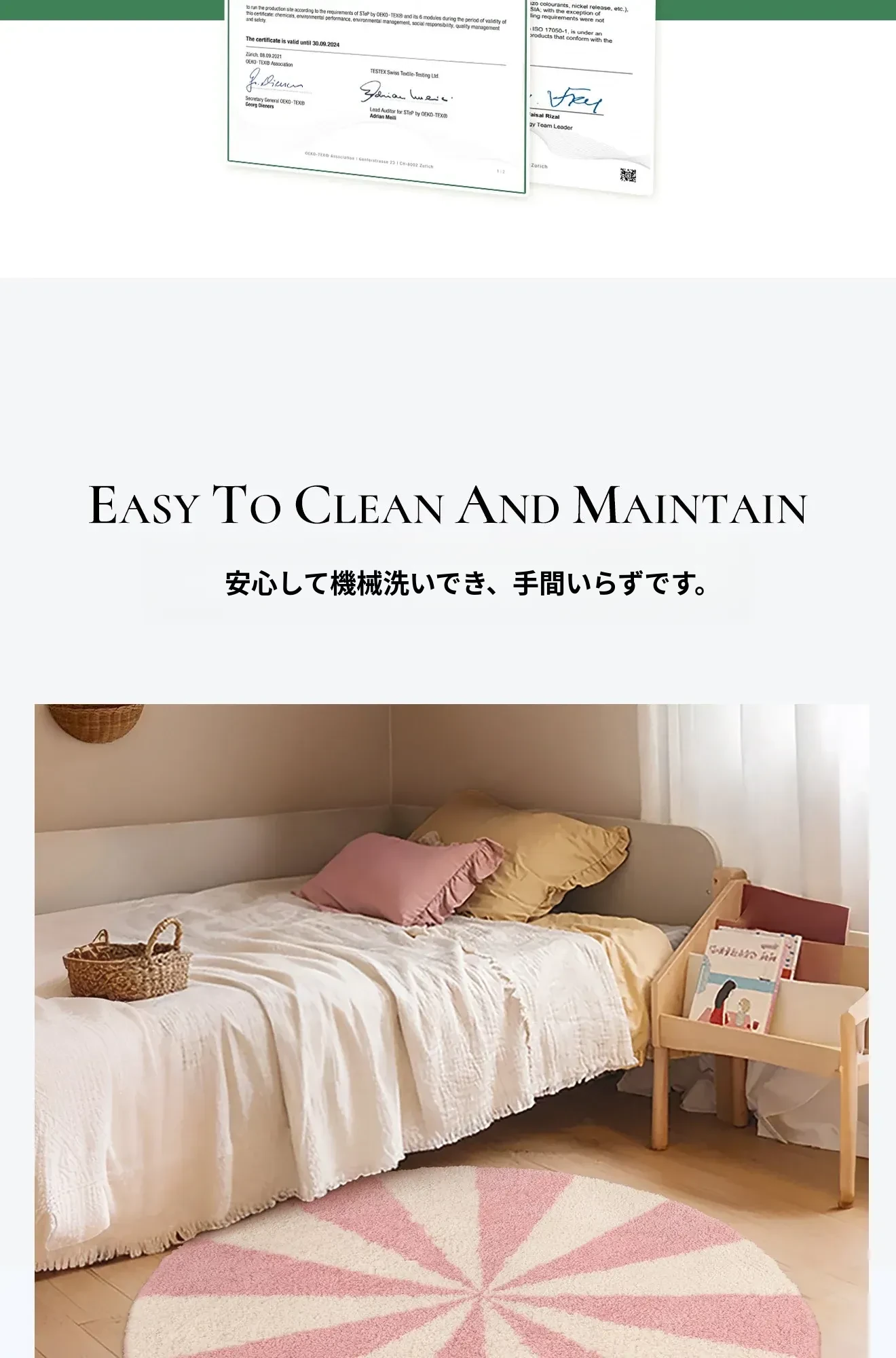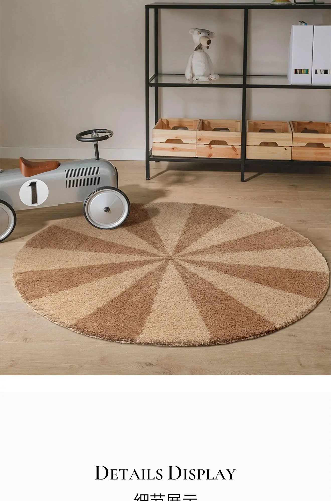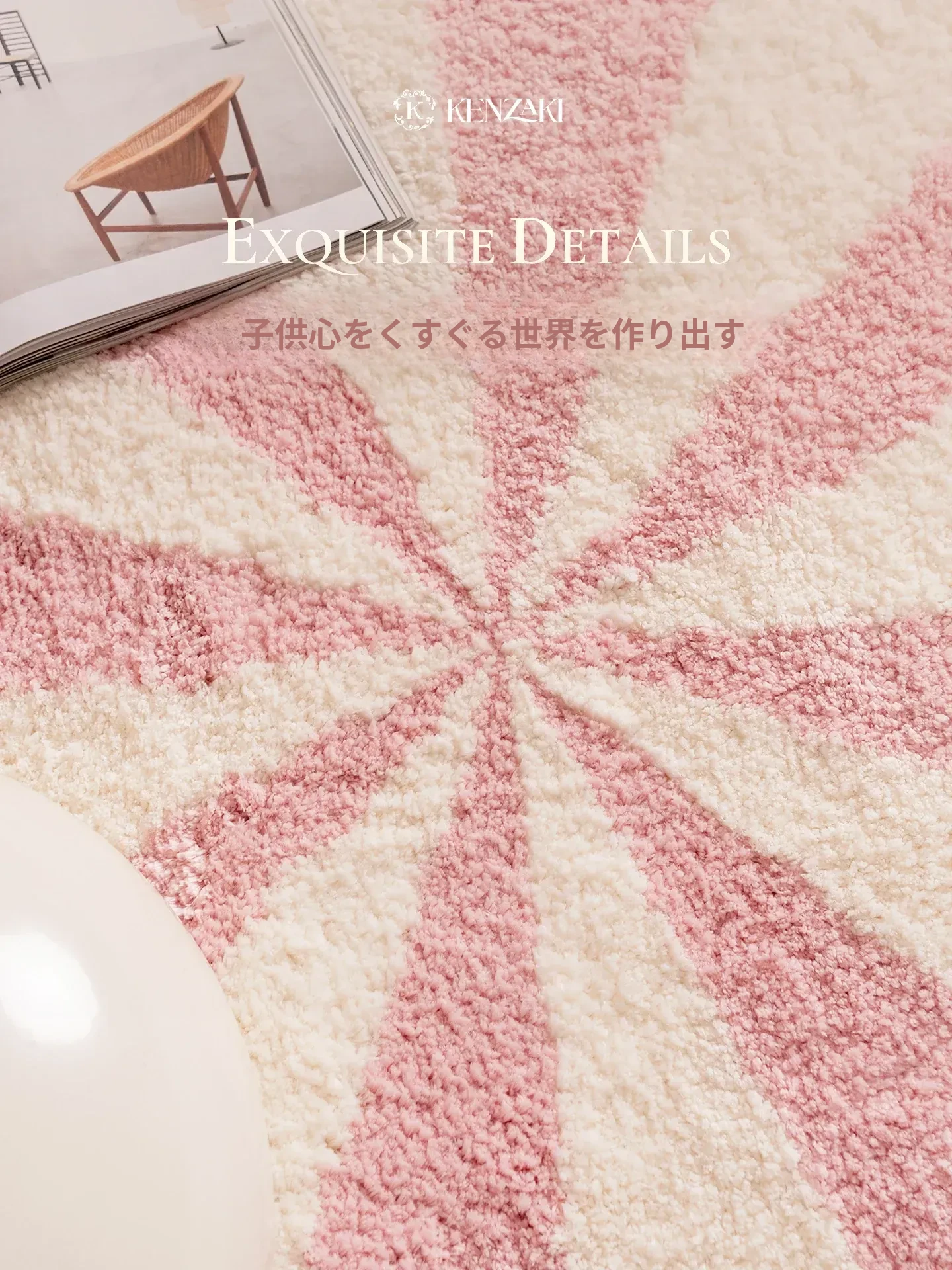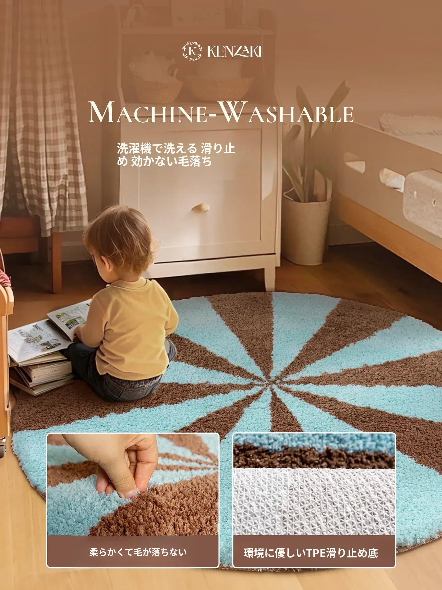 カーペットガールズの寝室にぴったり!インスタ風のベッドサイドカーペット、ピンクの丸型マット。子供部屋に最適な多幸感あふれるレインボーデザイン。洗濯機で丸洗い可能で、いつでも清潔をキープ!