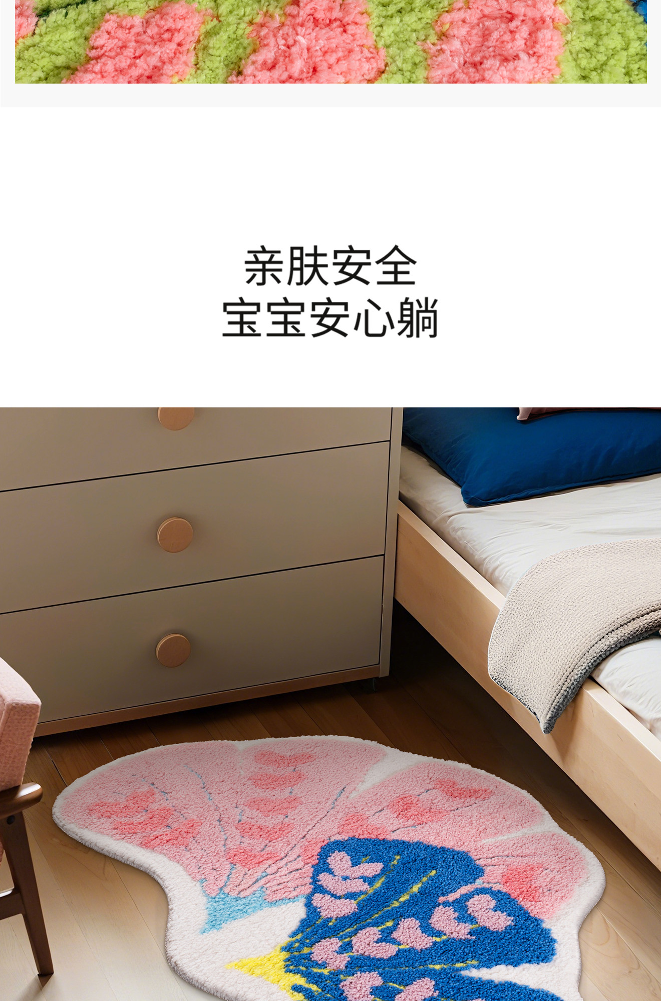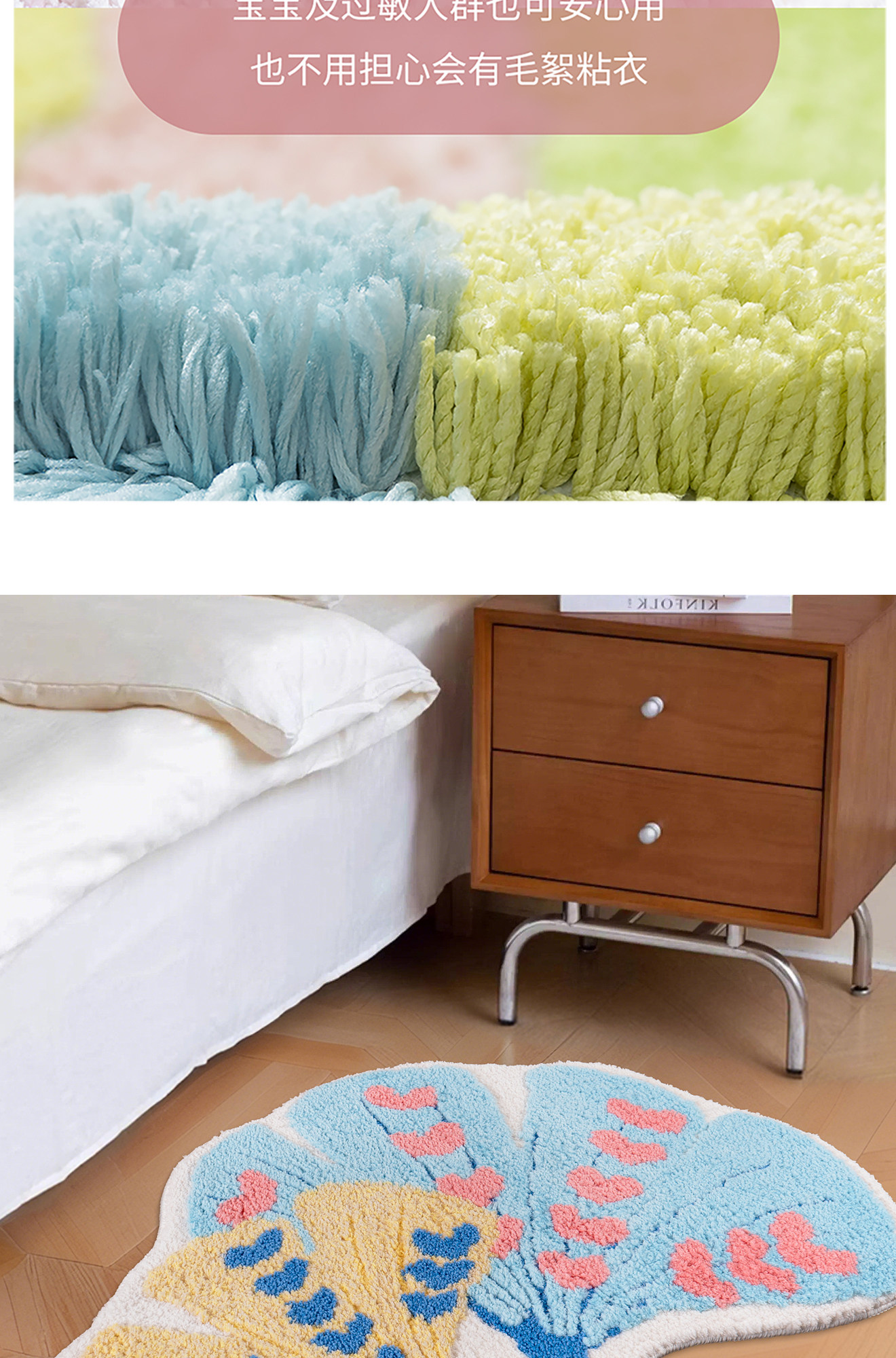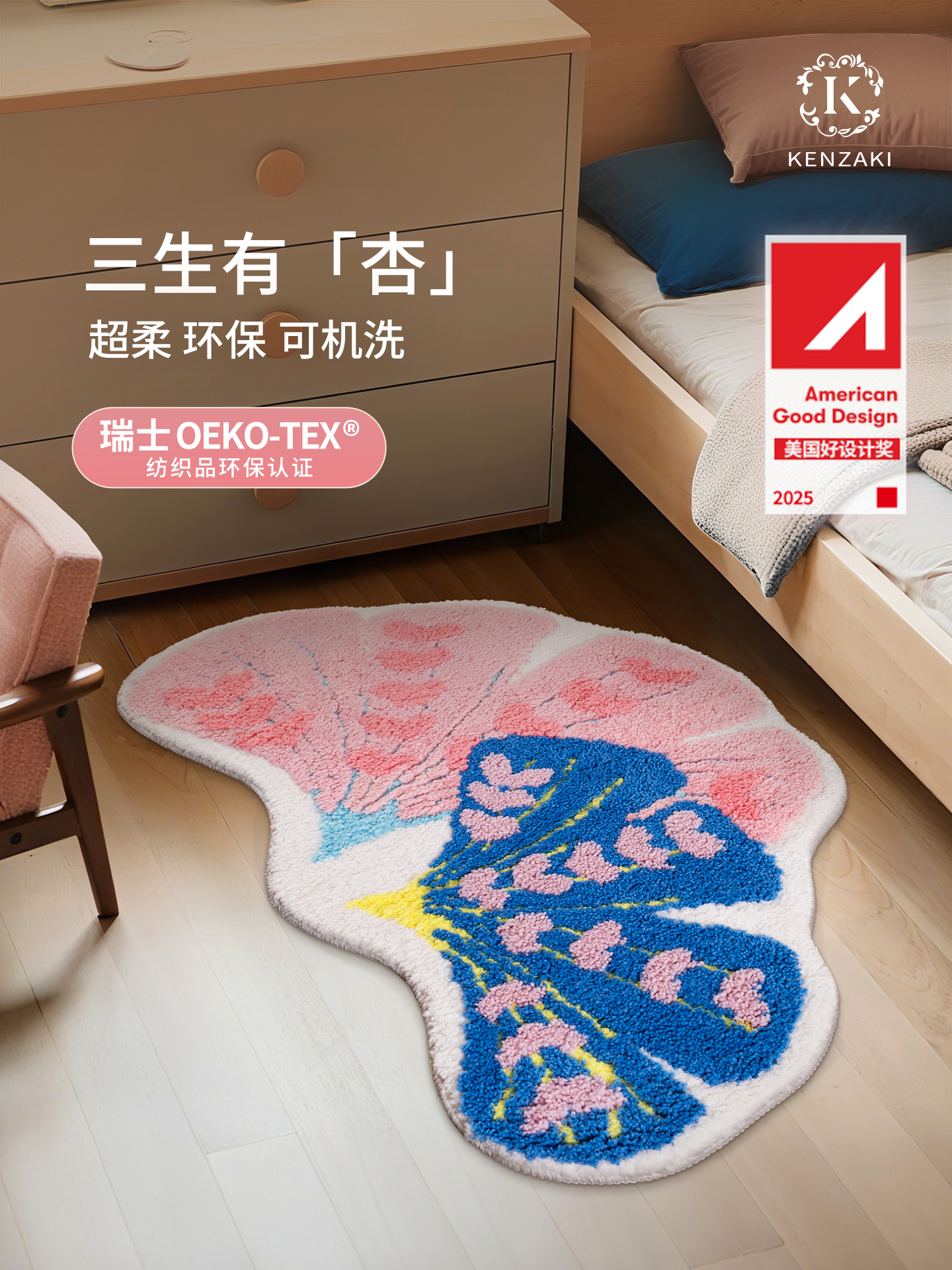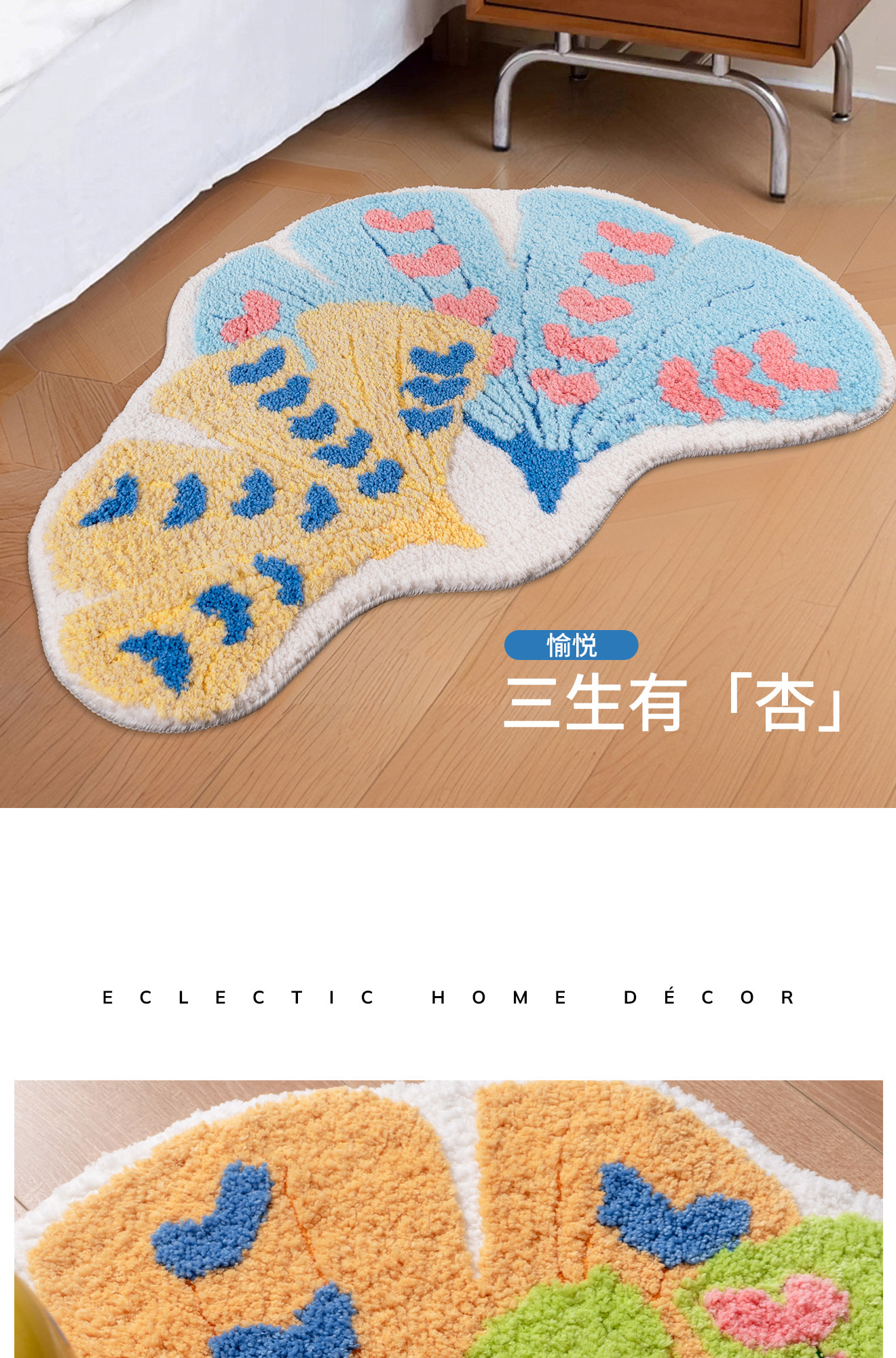 インスタ映えするカーペット!女の子の寝室にぴったりな、ドパミンカラーの銀杏の葉デザインピンク不規則型ベッドサイドマット。お子様も喜ぶ可愛いデザインで、洗濯機で簡単にお手入れ可能!