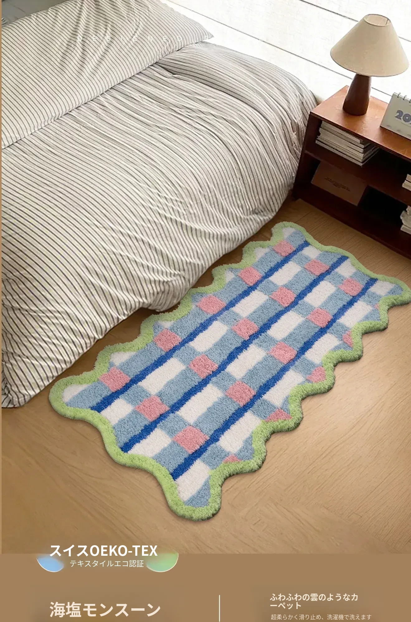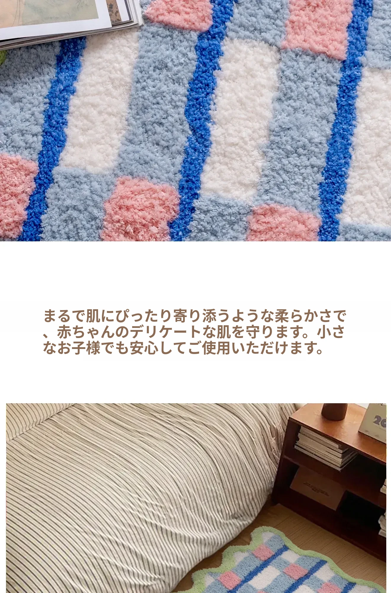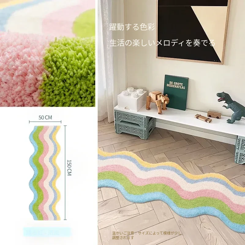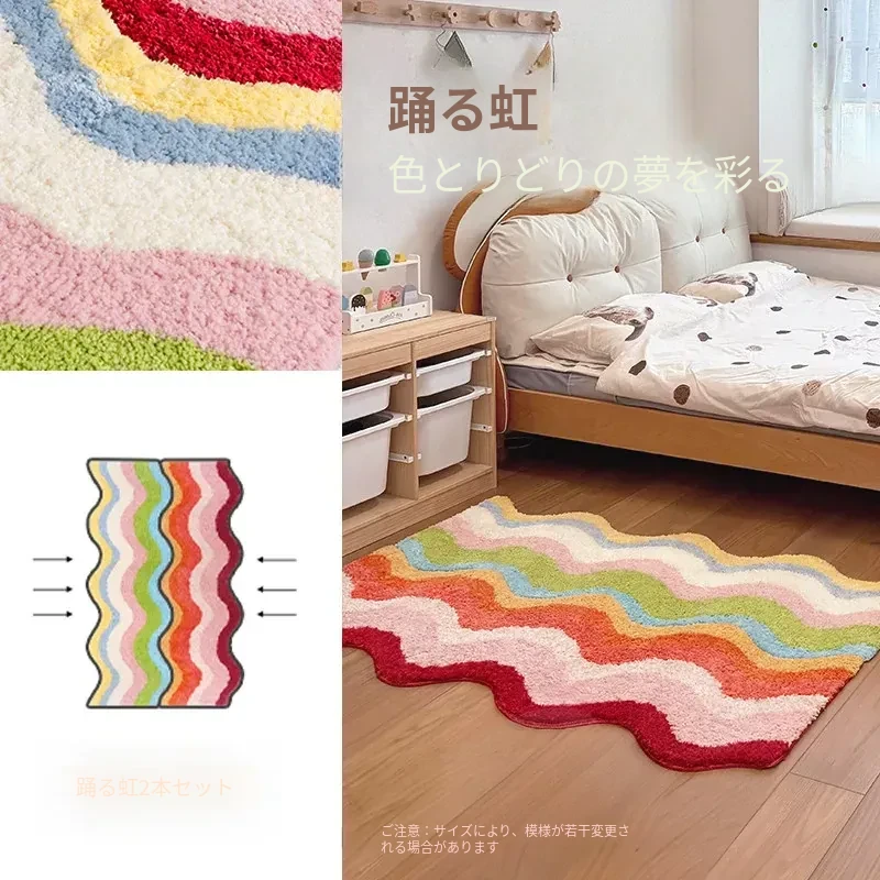 青少年向け!カラフルなドパミンデザインの長方形ラグ、寝室や子供部屋にぴったり。男の子・女の子に最適なブルーのマット、洗濯機で簡単お手入れ可能!おしゃれで快適な空間を演出します。