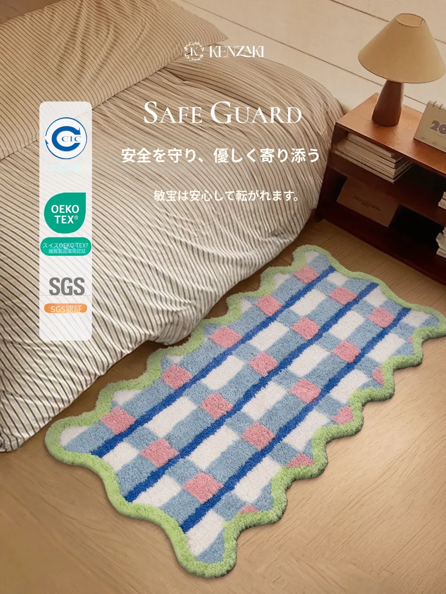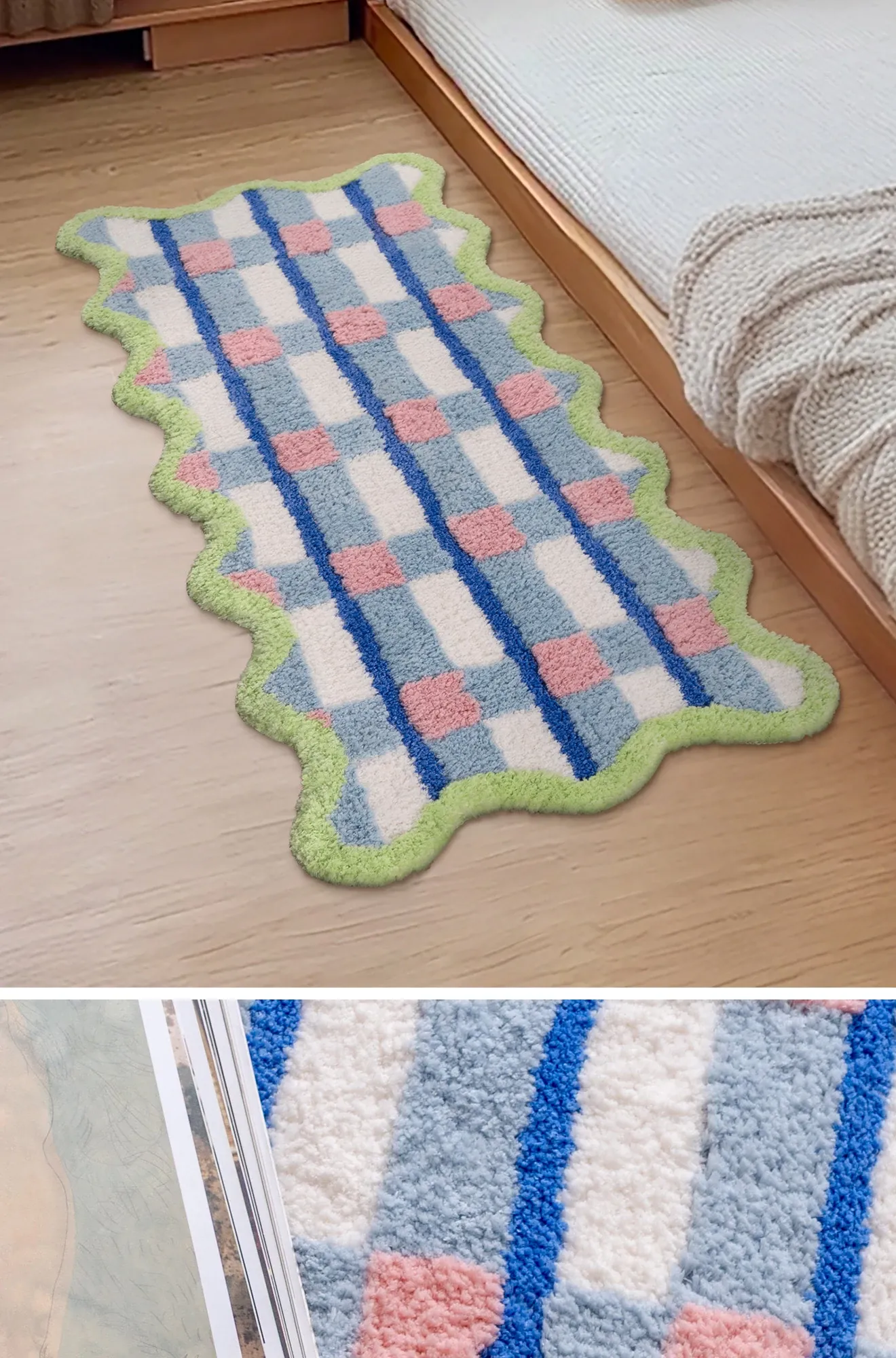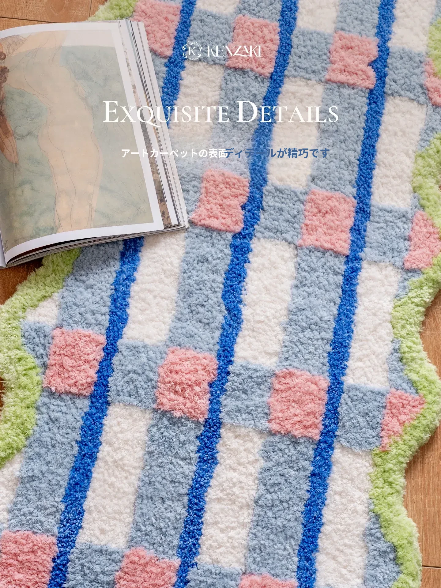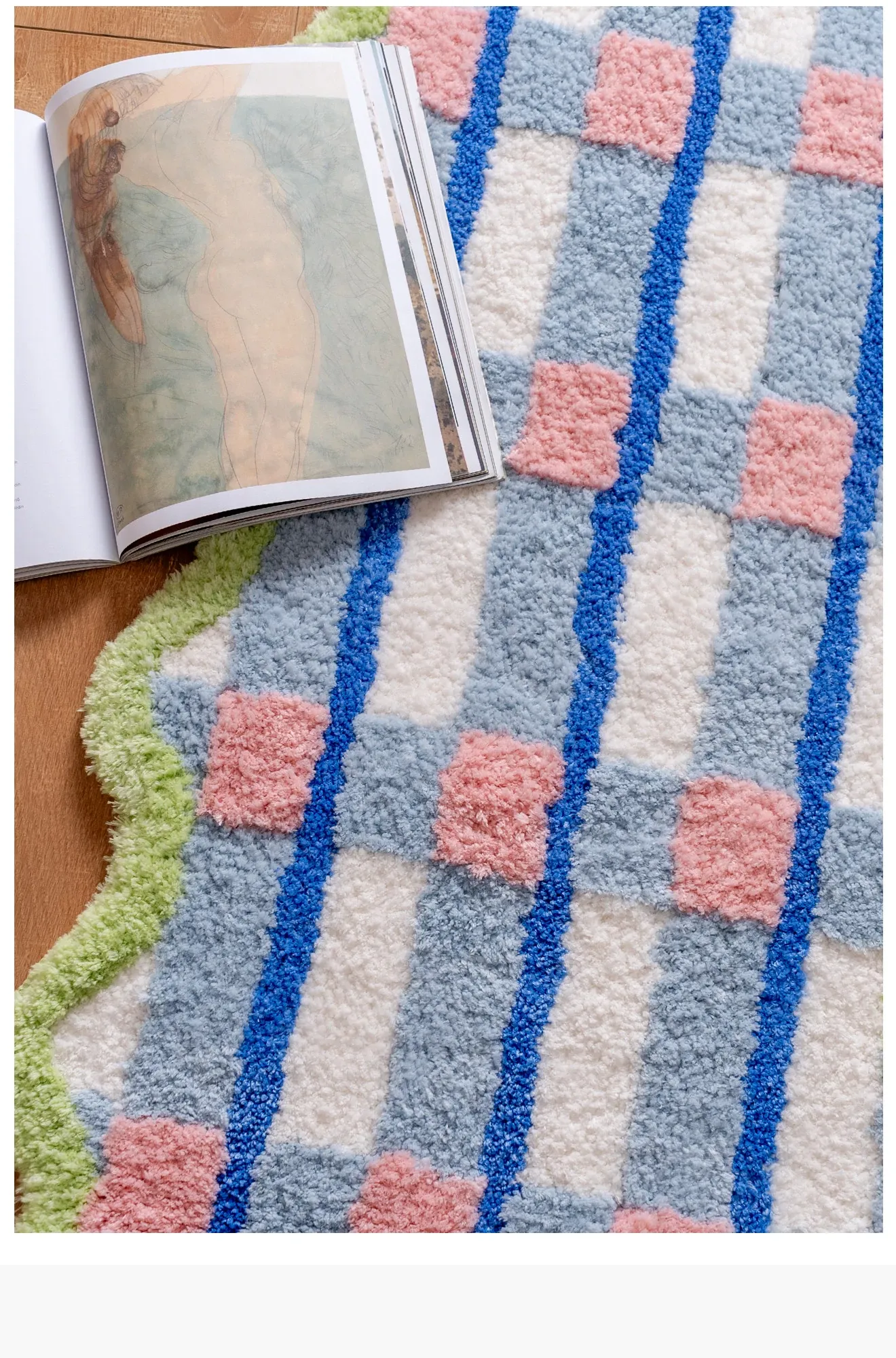 青少年向け!カラフルなドパミンデザインの長方形ラグ、寝室や子供部屋にぴったり。男の子・女の子に最適なブルーのマット、洗濯機で簡単お手入れ可能!おしゃれで快適な空間を演出します。