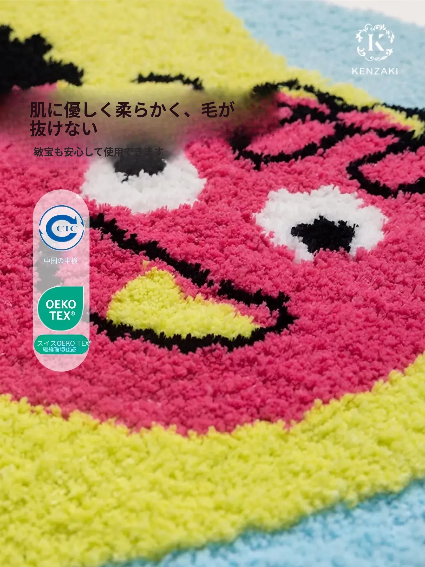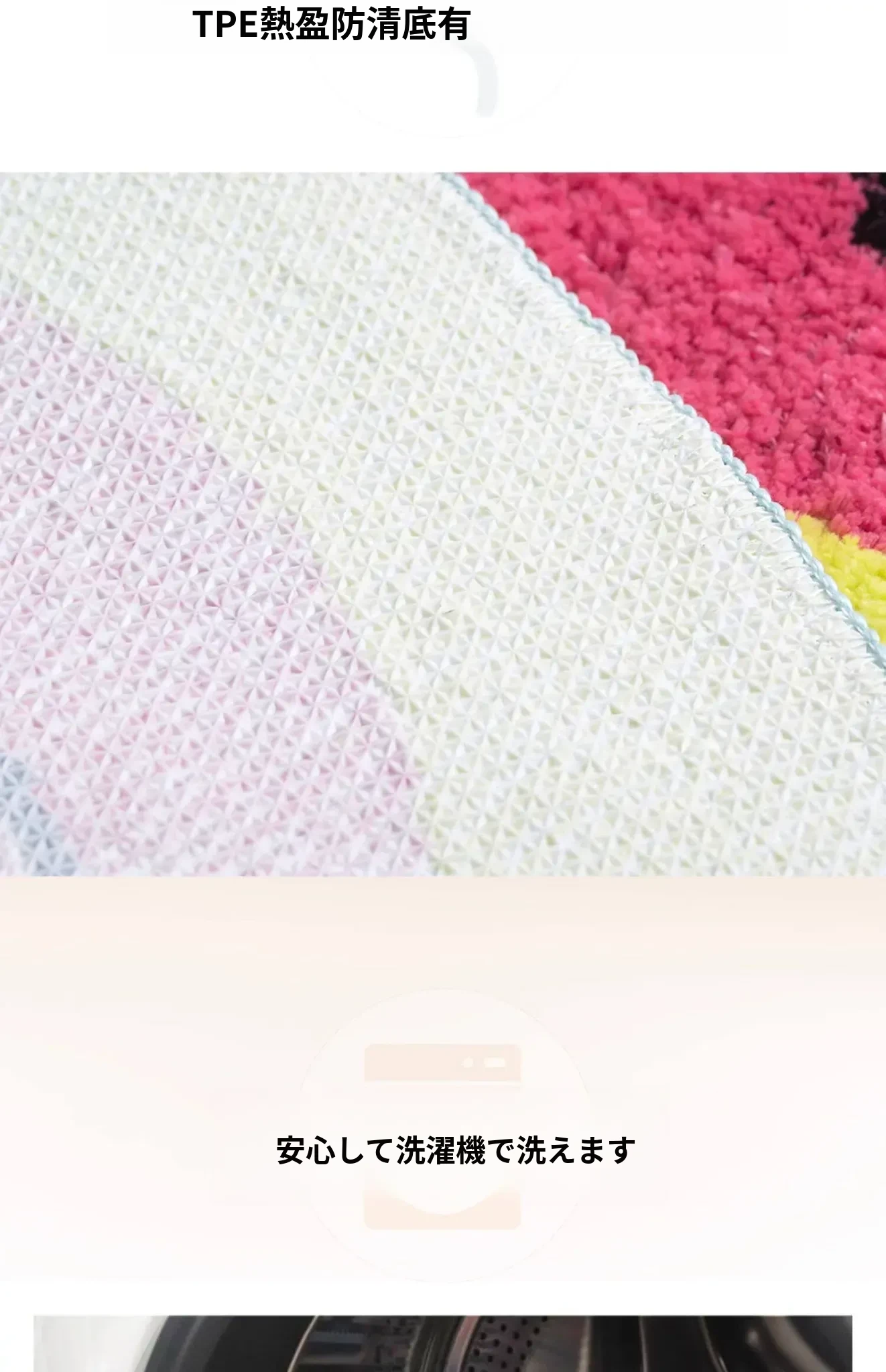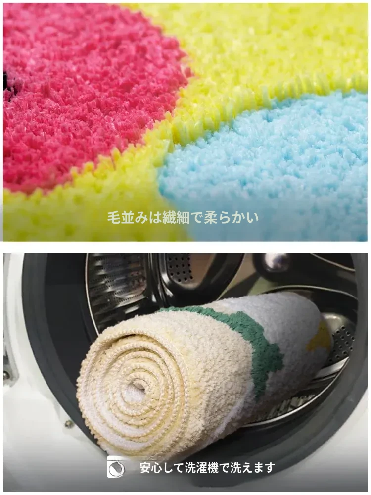KENZAKI(ケンザキ)洗えるオリジナルデザインの可愛いダイパーピンクカラーの子供用防滑ラグマット - リビングや寝室に最適!おしゃれで安心な空間を演出します。