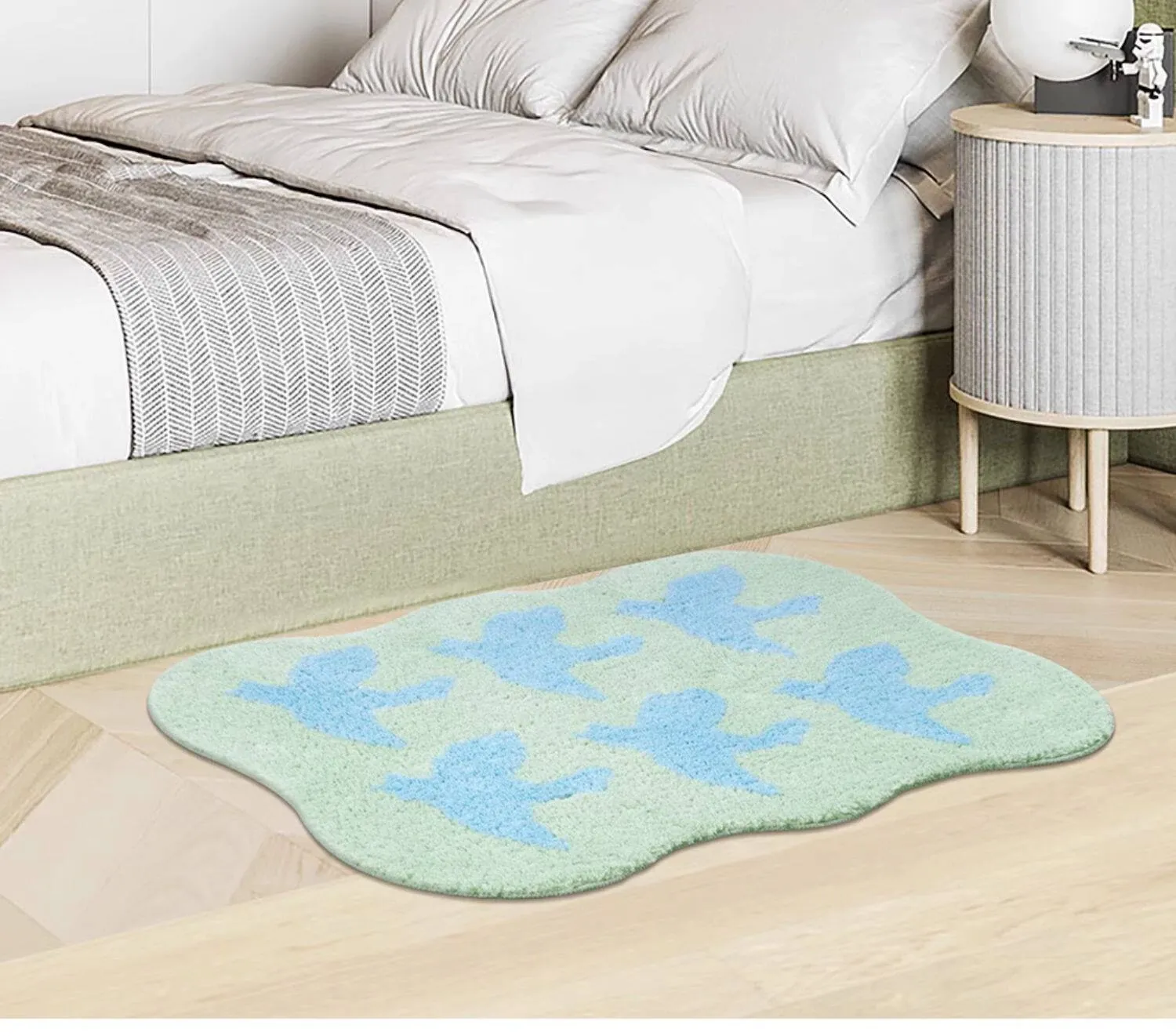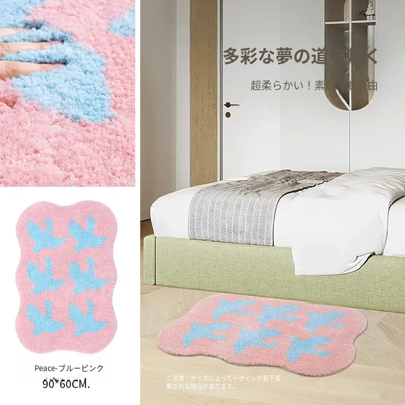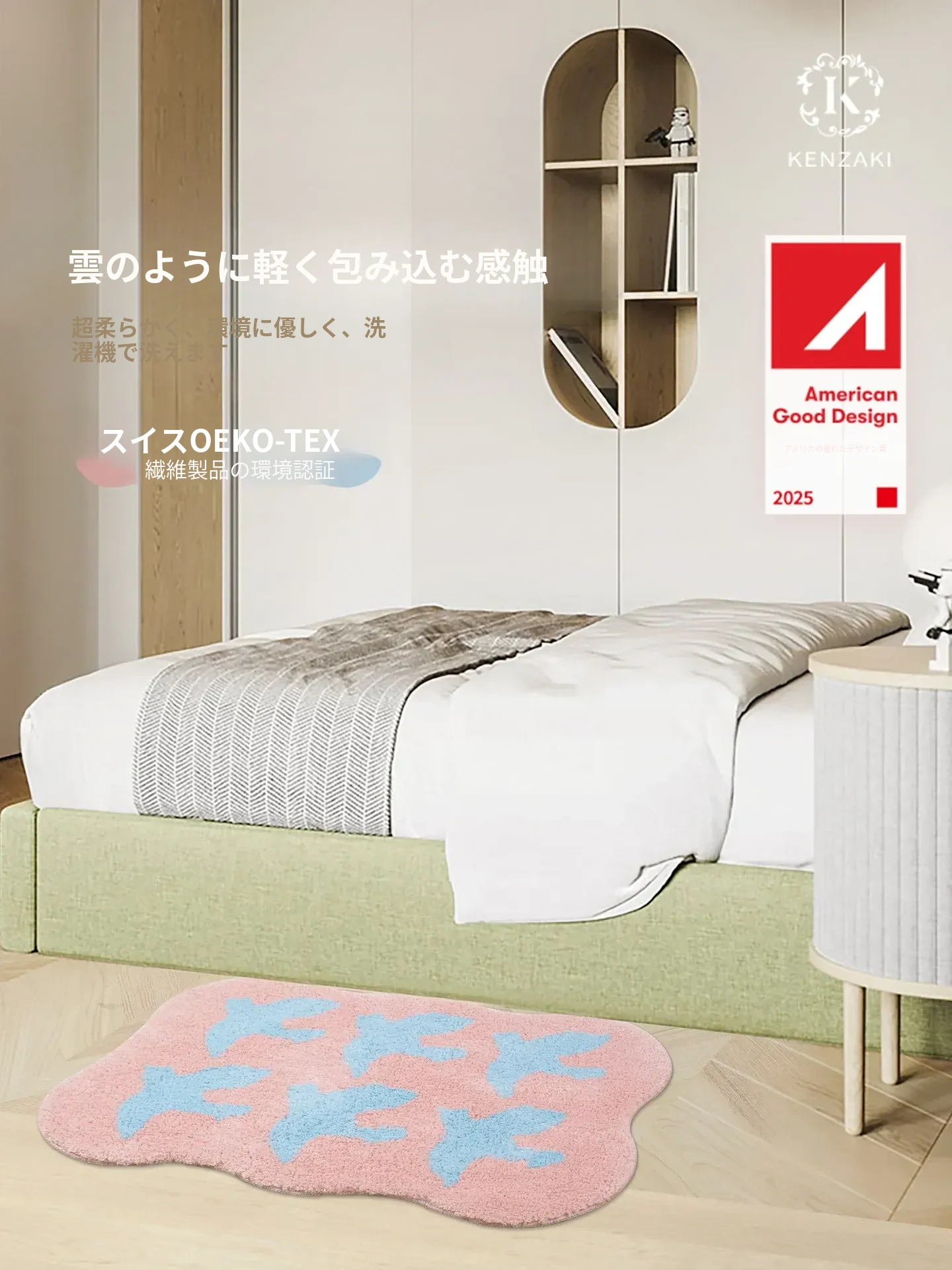 KENZAKI 洗える超柔らかキッズルームカーペット - インスタ風・ドーパミンカラーのグレー、滑り止め付きのベッドサイドマットでお子様の夢の空間を演出!