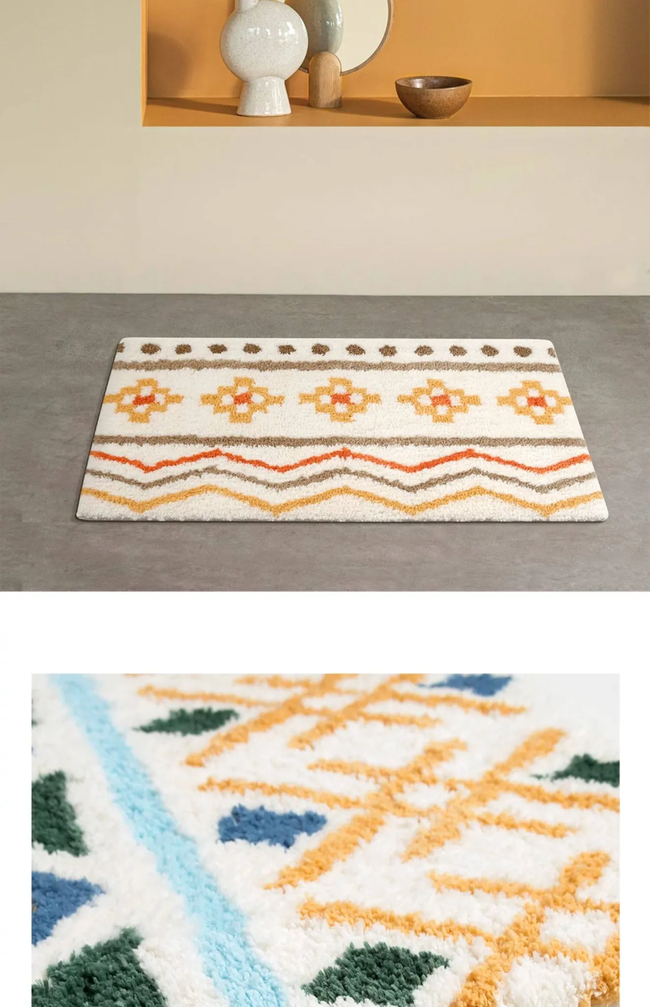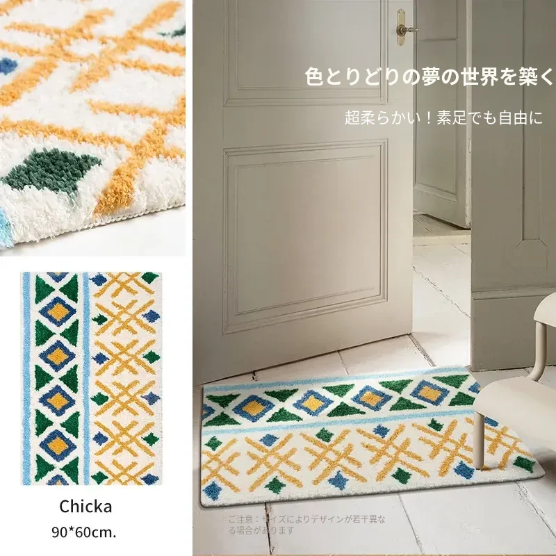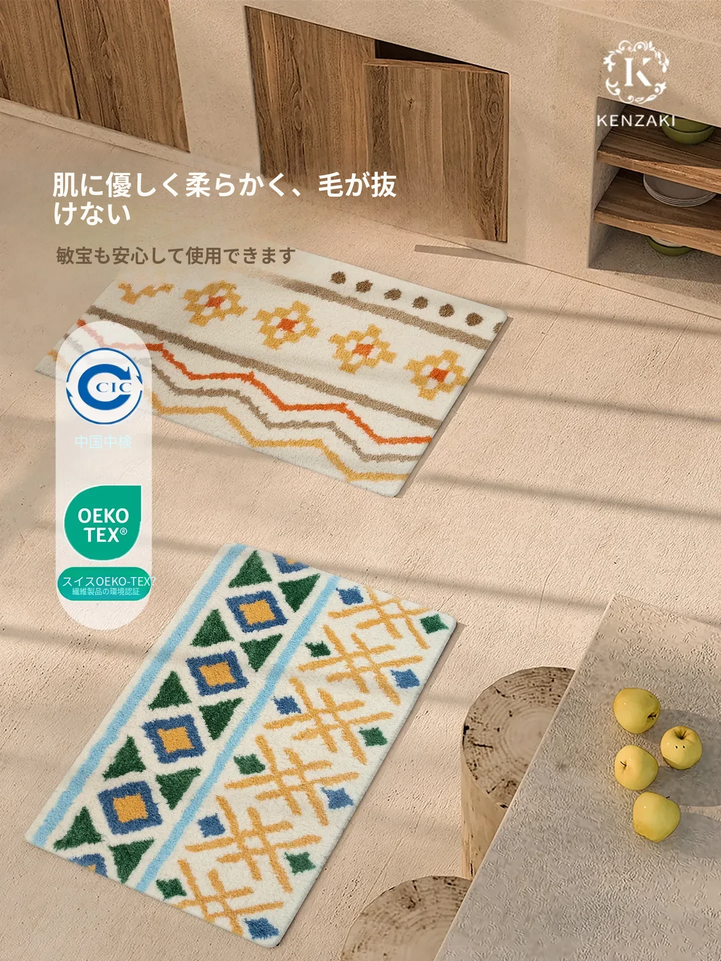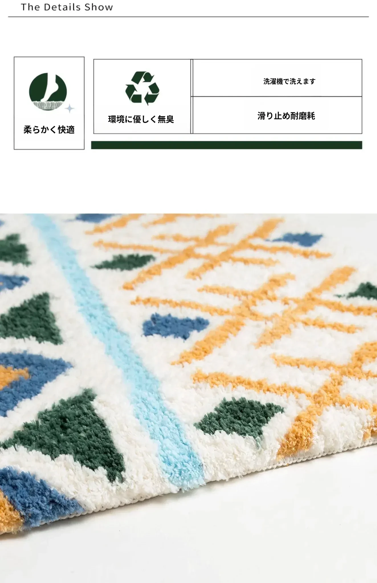 KENZAKI 洗える超柔らかいモロッコ風ラグ - インスタ風バスルームやクローゼット、寝室にぴったり!滑り止め付きで、安全にお使いいただけます。おしゃれなデザインで、お部屋をもっと魅力的に!