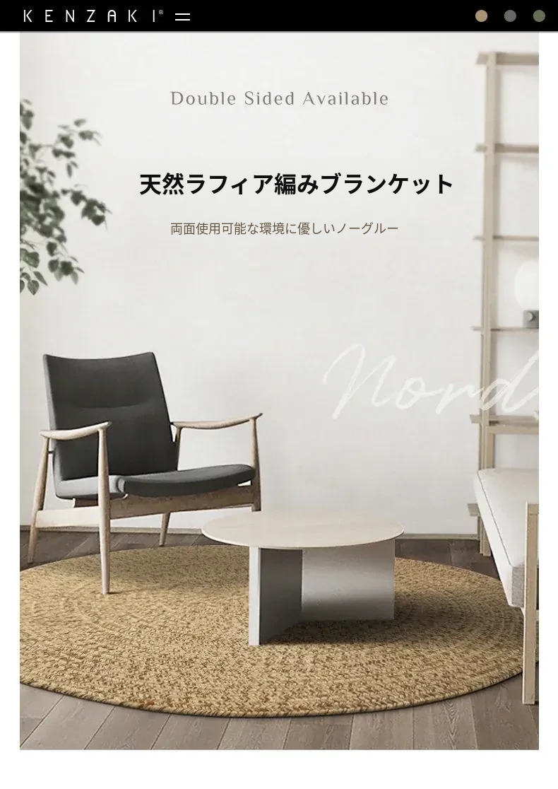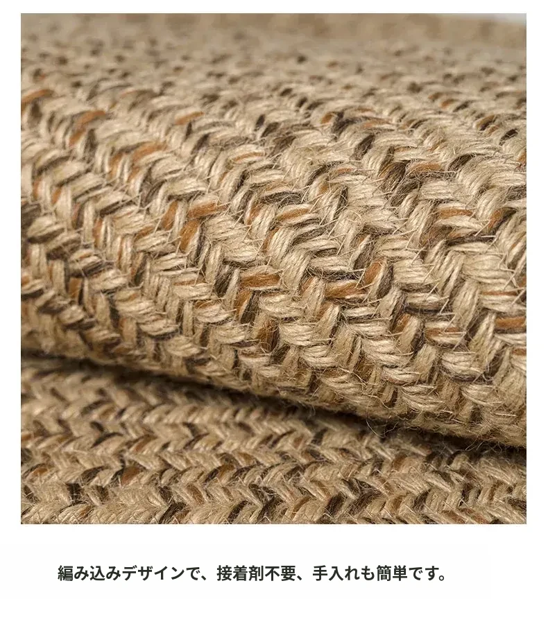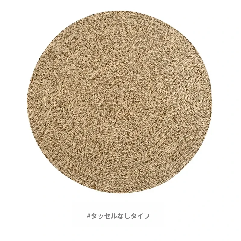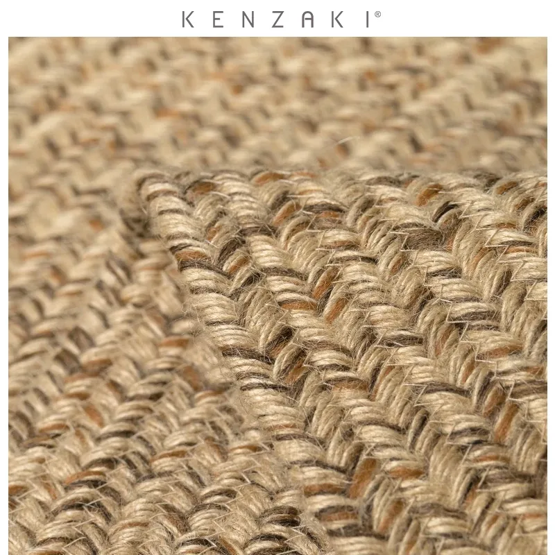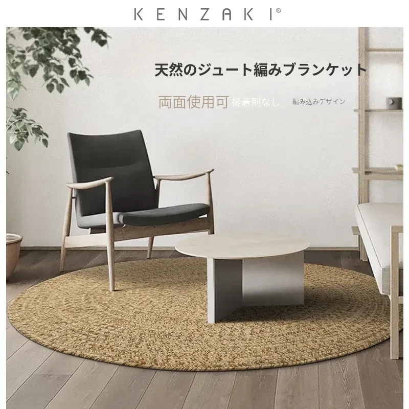 KENZAKI 天然ジュート編みのラウンドカーペット - 和の美を感じる素朴なデザイン、寝室やバルコニーにぴったり!接着剤不使用で安心、安全なリビングルームに最適です。
