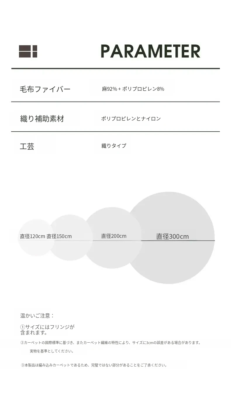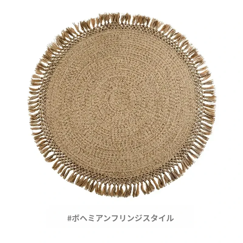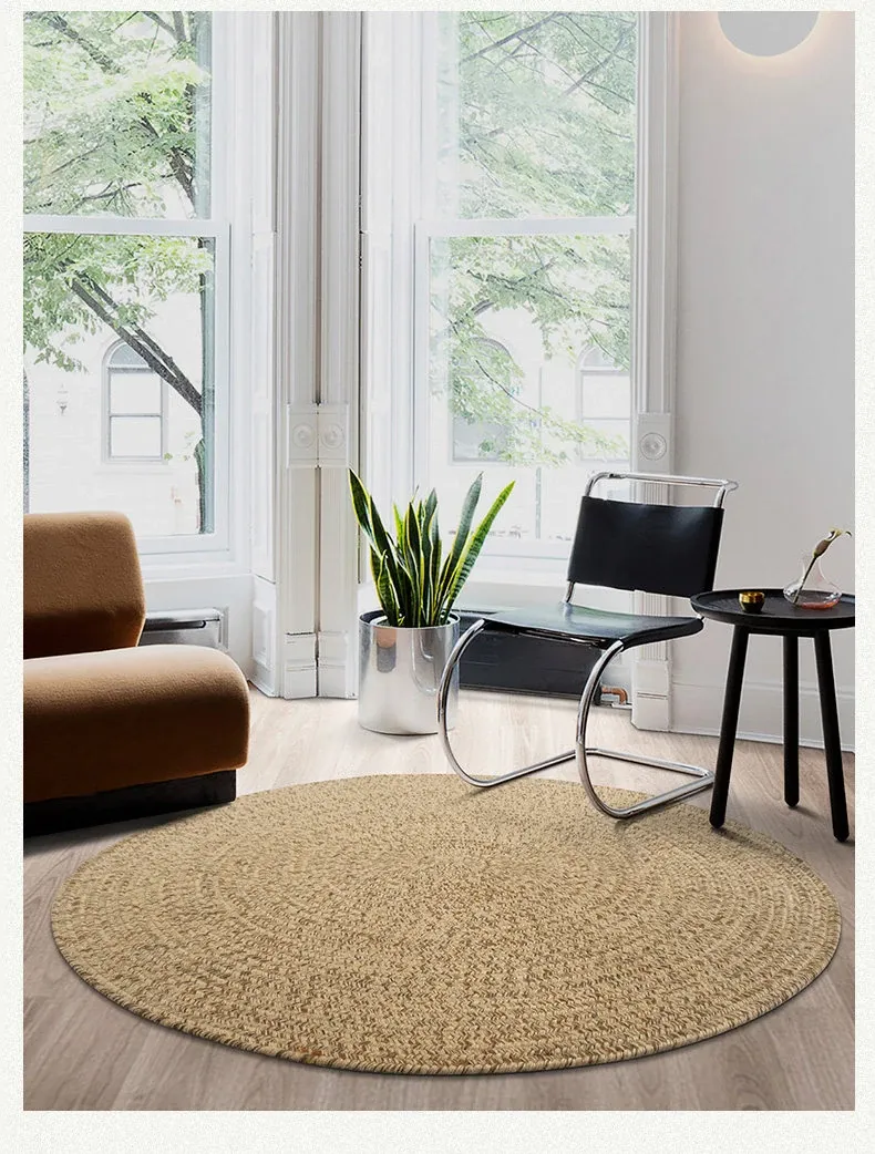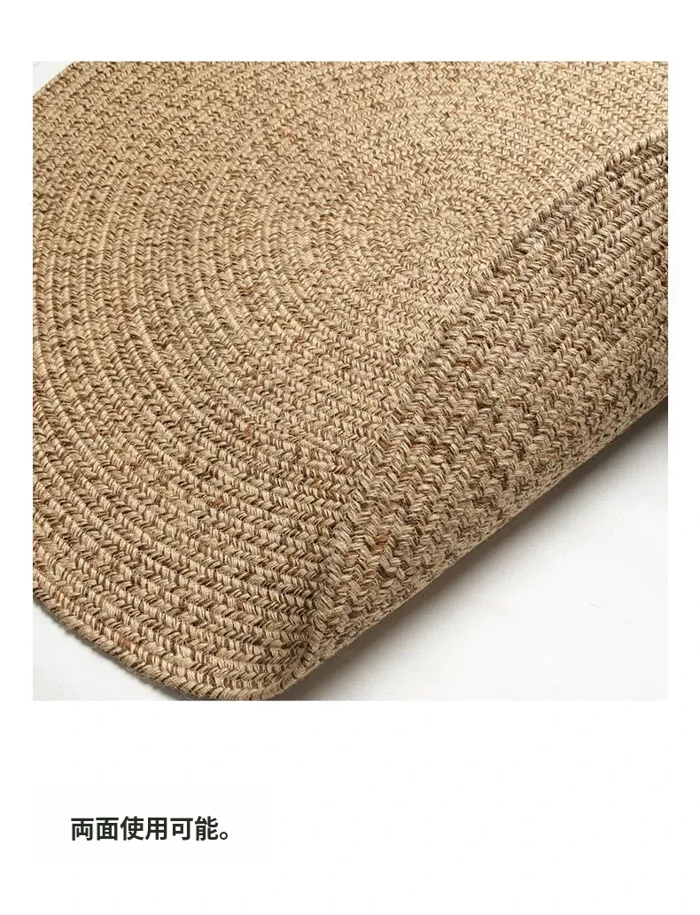 KENZAKI 天然ジュート編みのラウンドカーペット - 和の美を感じる素朴なデザイン、寝室やバルコニーにぴったり!接着剤不使用で安心、安全なリビングルームに最適です。