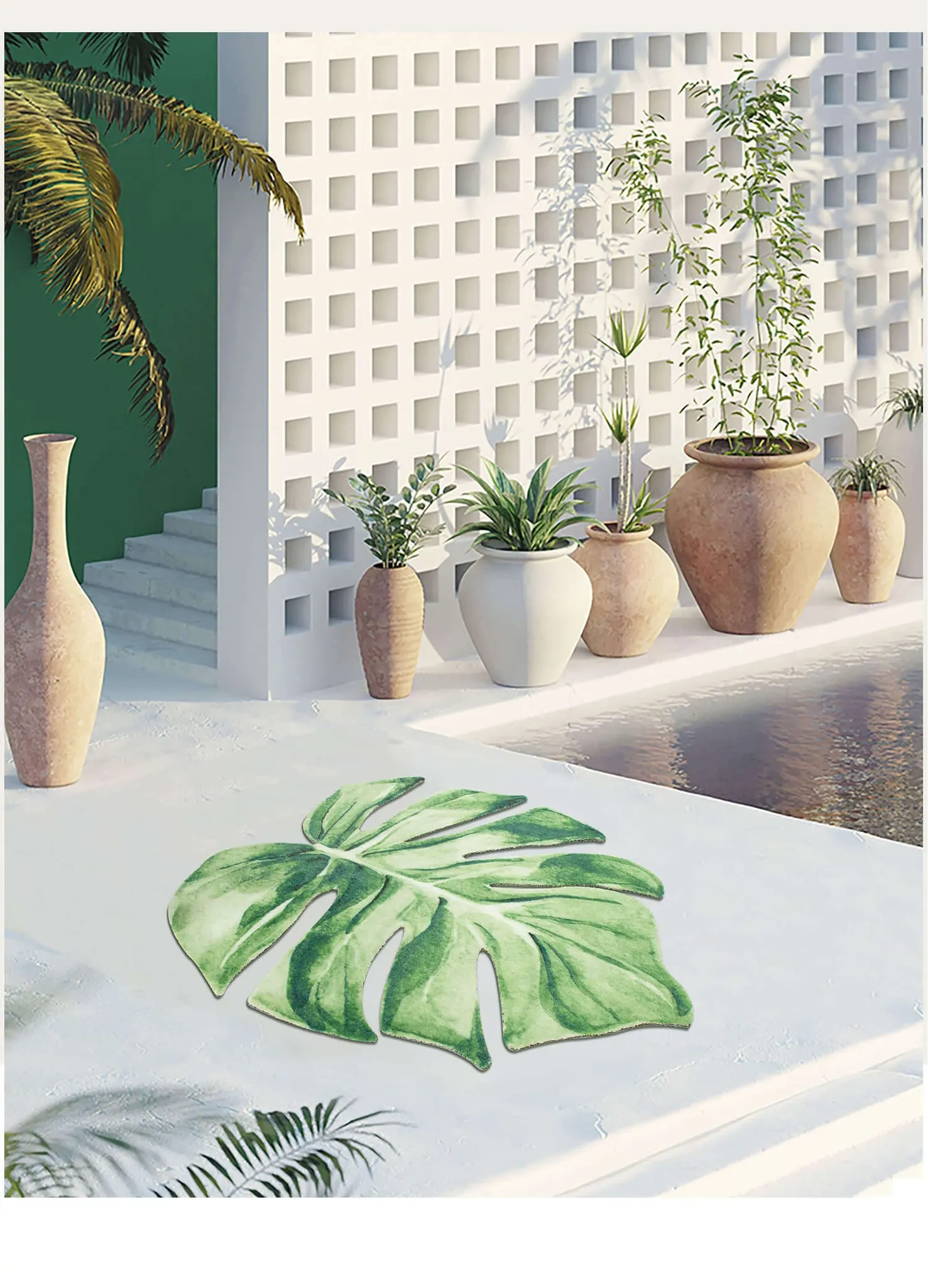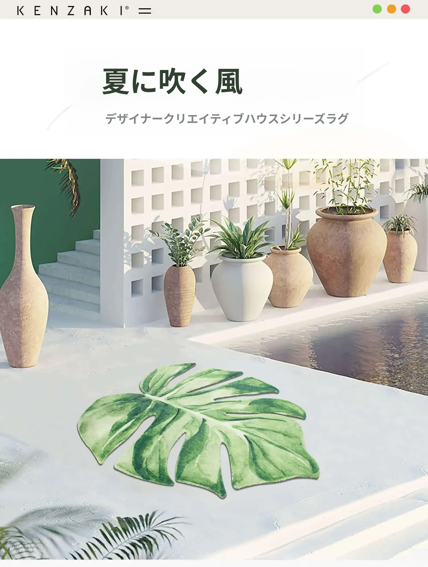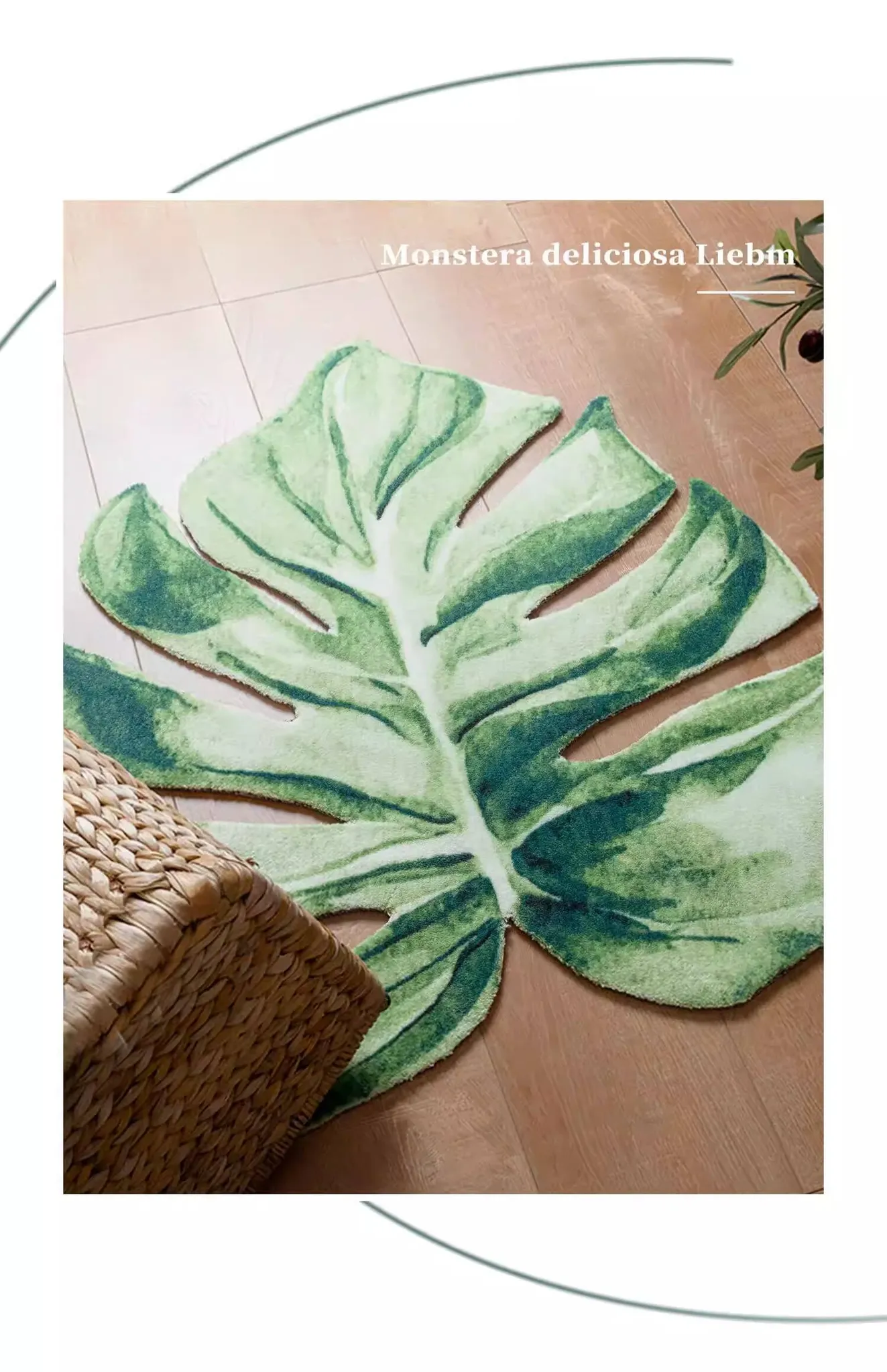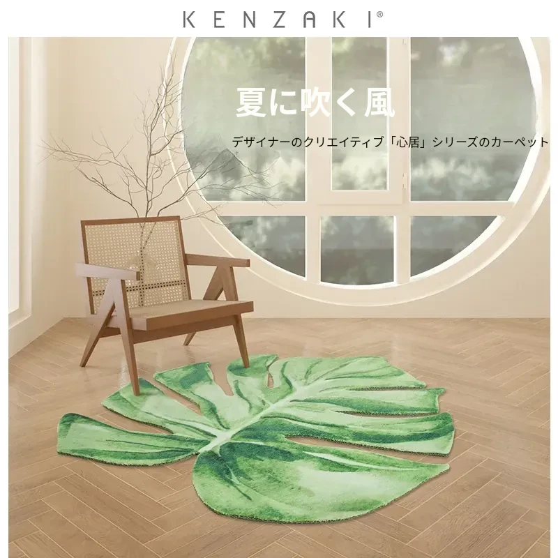 KENZAKI健崎オリジナル グリーン・スネークプラントデザインの衣類収納・バルコニー・寝室・コーヒーテーブル・リビング用ユニークな形のラグカーペットで、心地よい緑の空間を演出!
