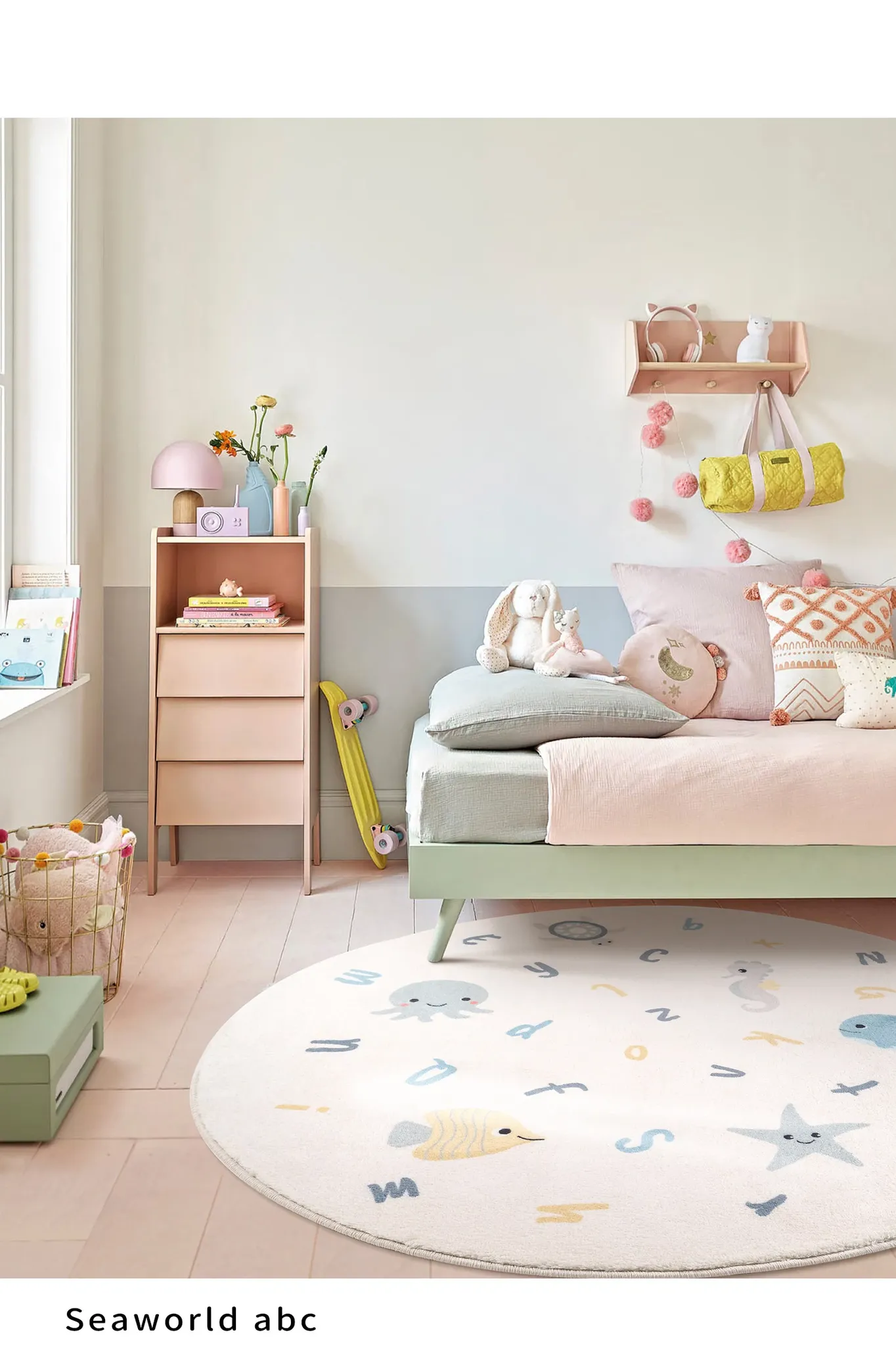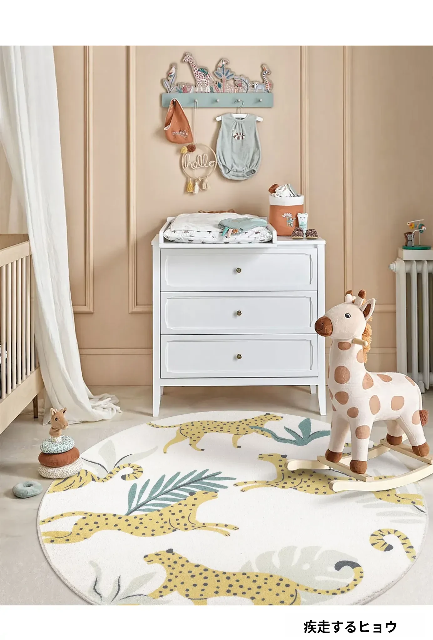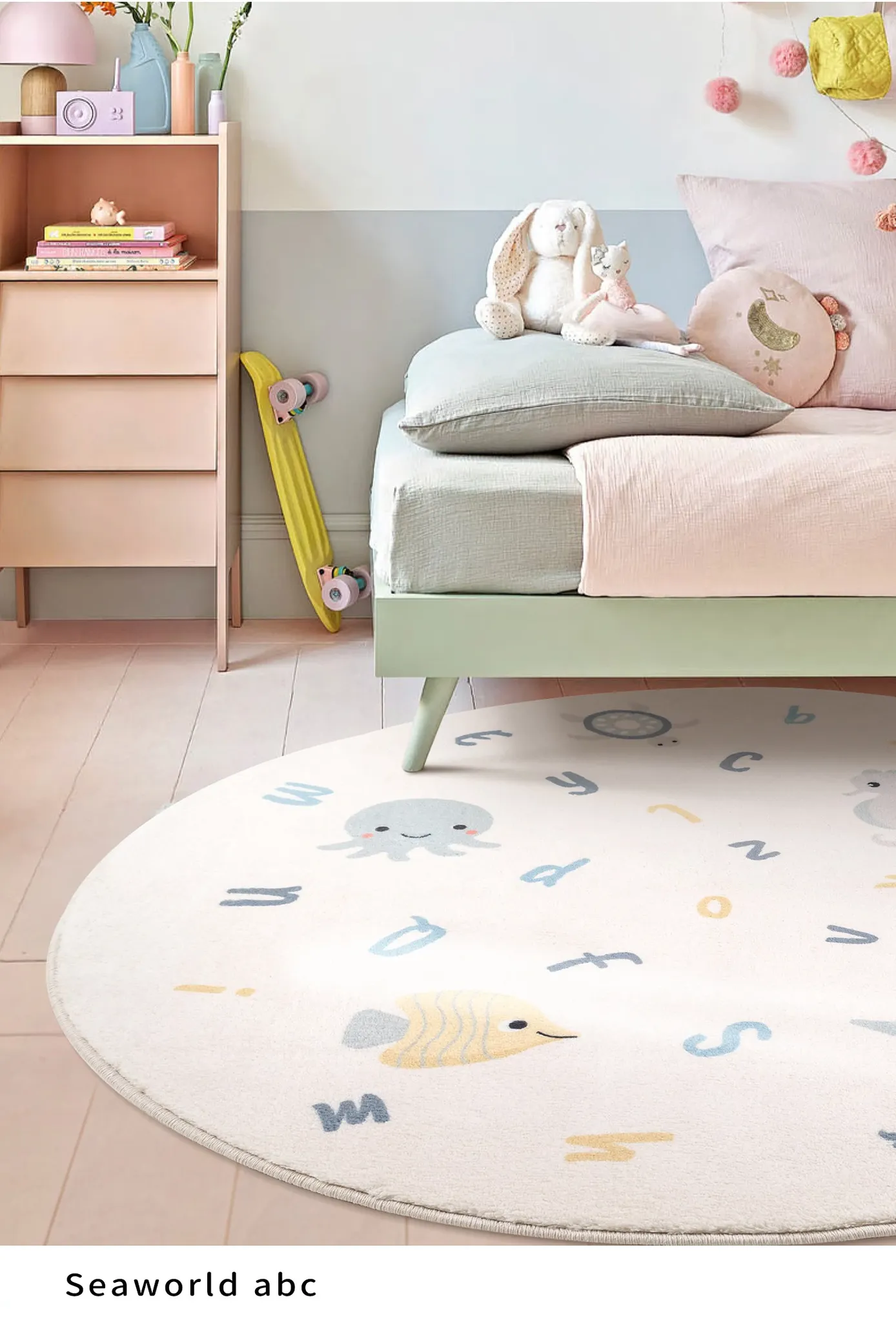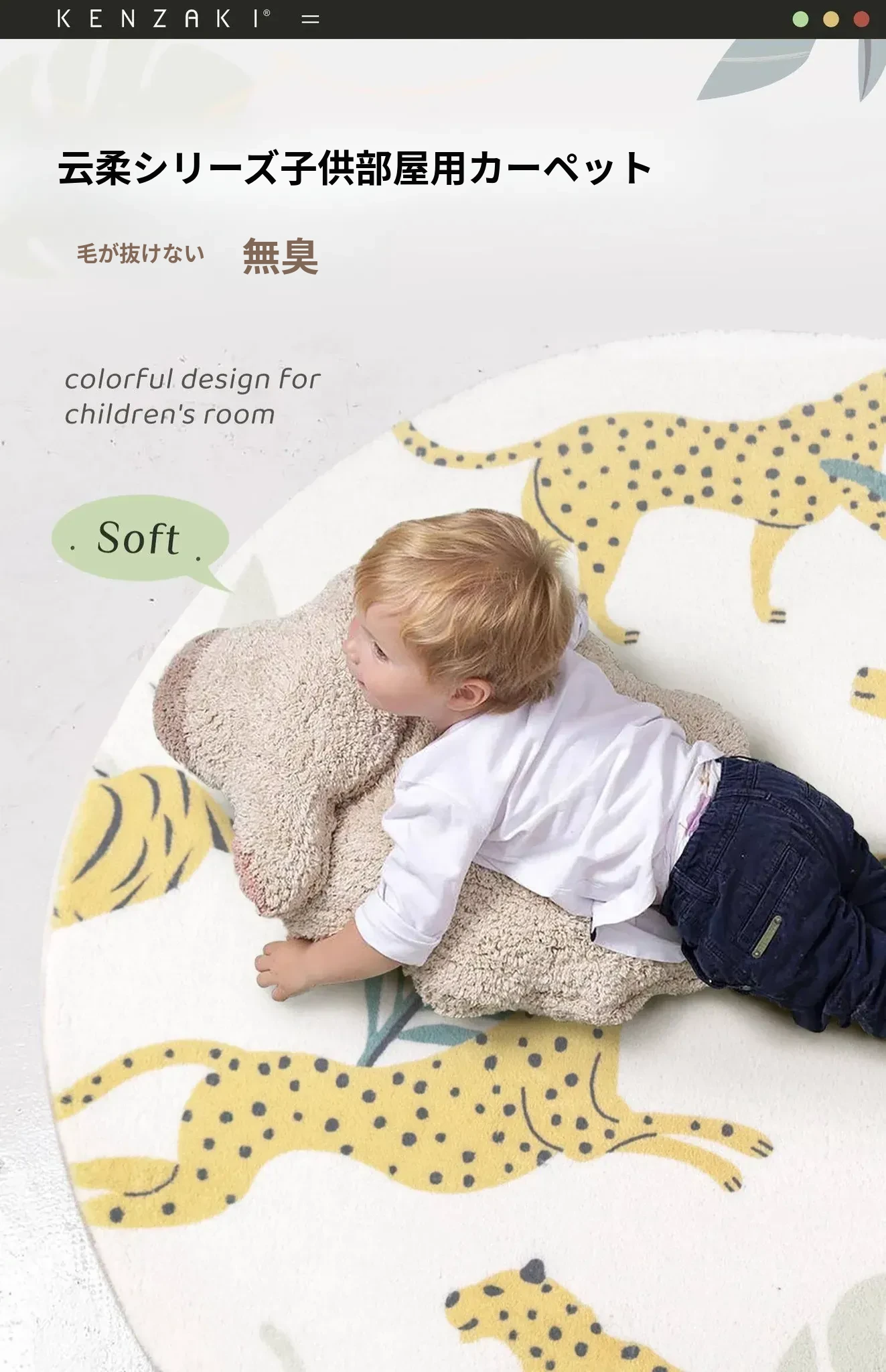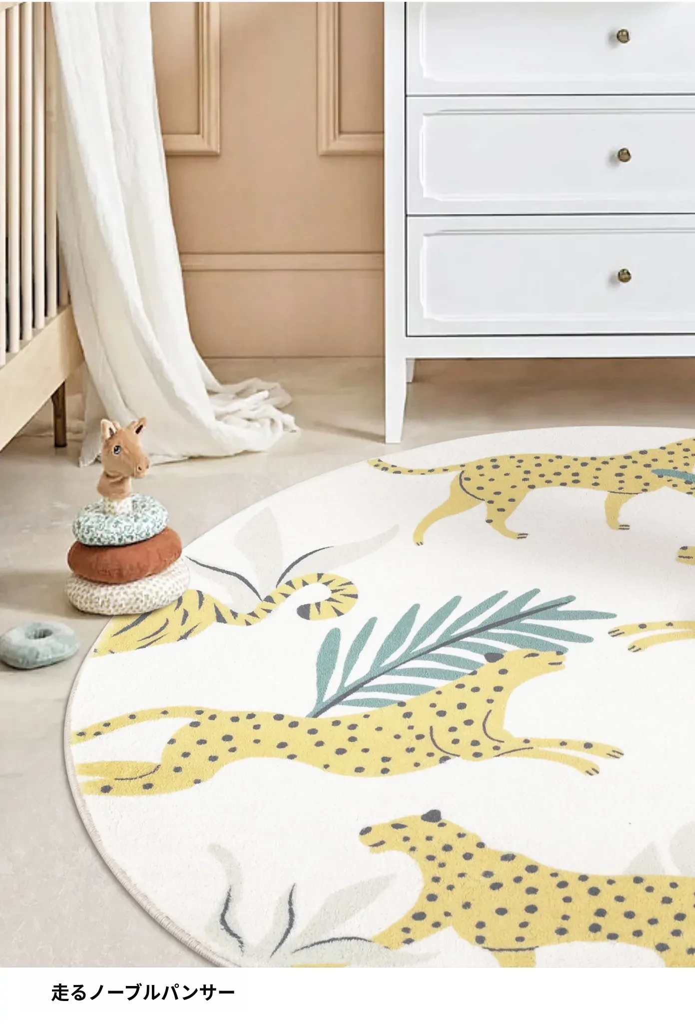 KENZAKI 超柔らかい環境に優しい子供部屋用ラグ - 女の子の寝室にぴったりな円形ラグ!フランス風の可愛いデザインで、赤ちゃんの成長を祝う「抓周」マットとしても最適!
