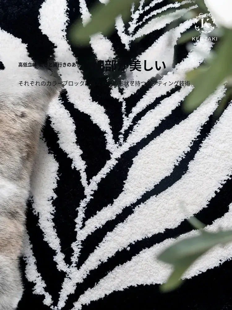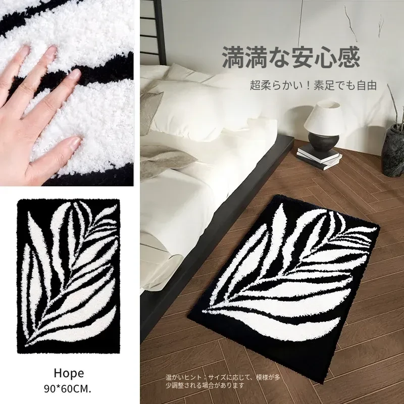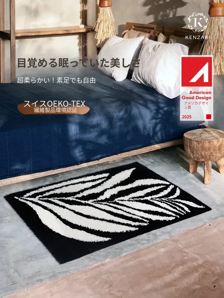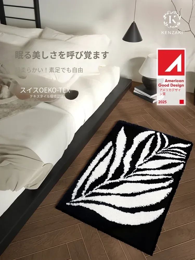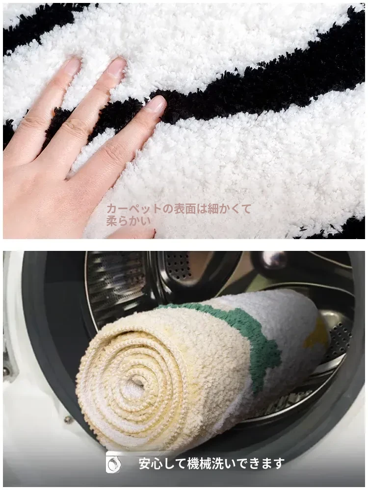 KENZAKI 洗えるブラック&ホワイトベッドサイドラグ - 超柔らかい素材で、寝室やクローゼット、ドレッサーにもぴったり!滑り止め付きで、リビングやソファに最適なカーペット!