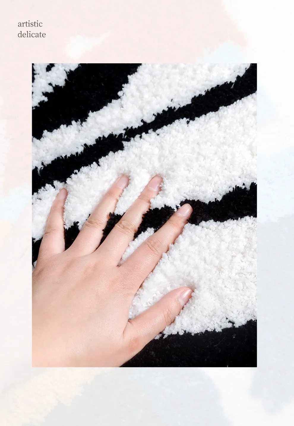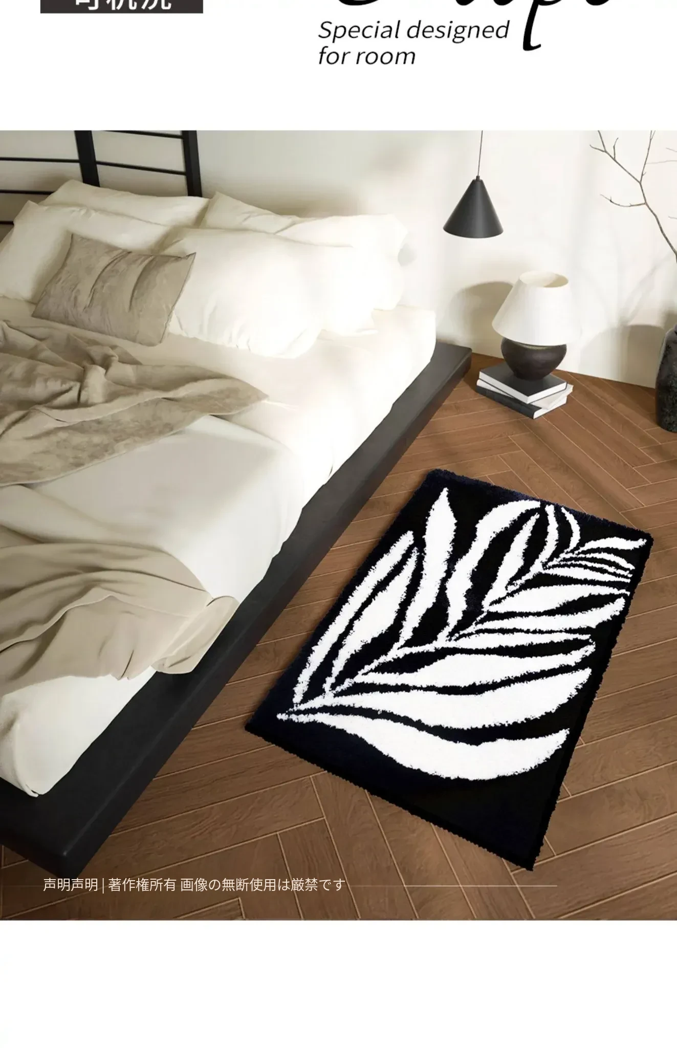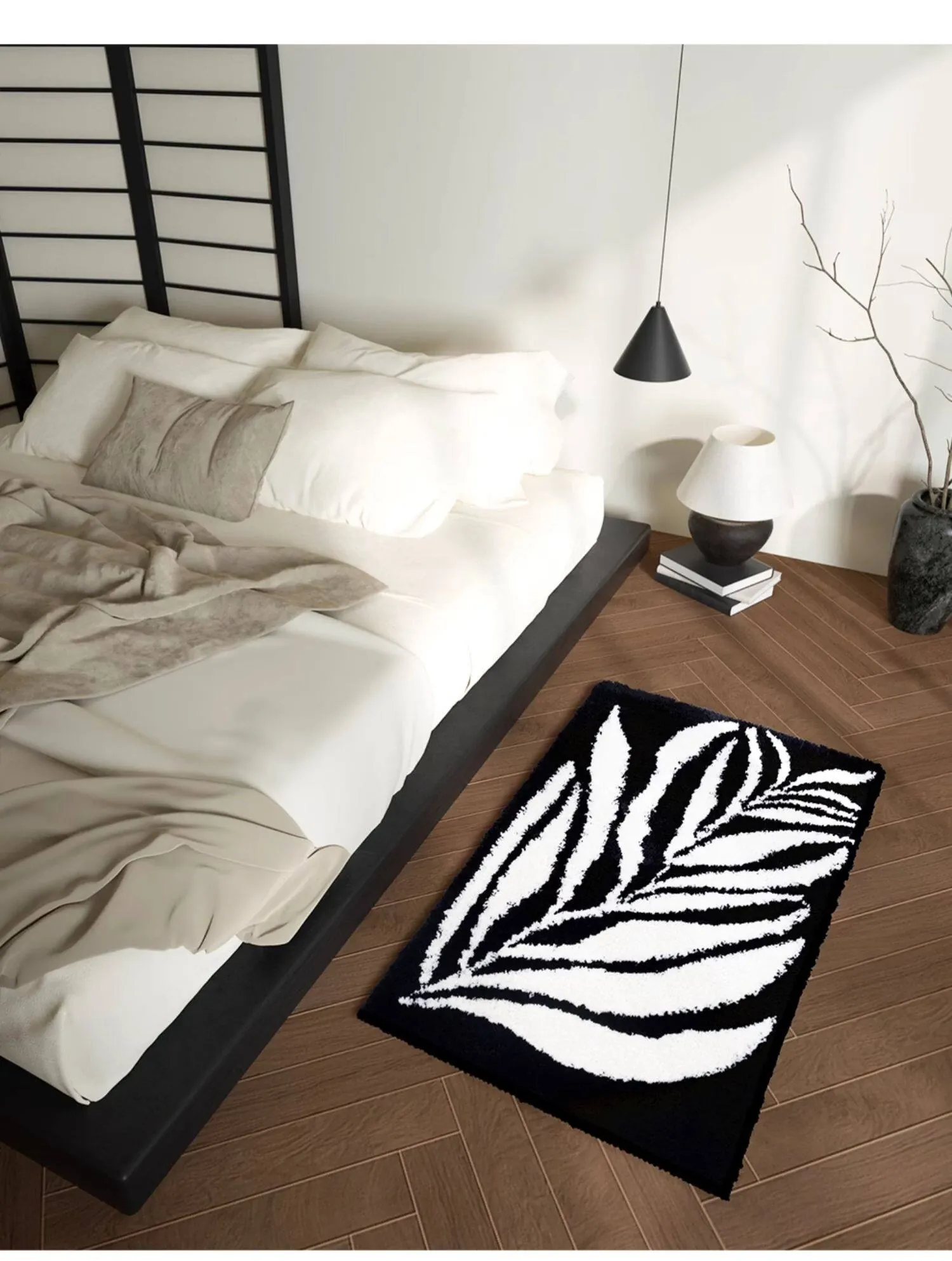 KENZAKI 洗えるブラック&ホワイトベッドサイドラグ - 超柔らかい素材で、寝室やクローゼット、ドレッサーにもぴったり!滑り止め付きで、リビングやソファに最適なカーペット!