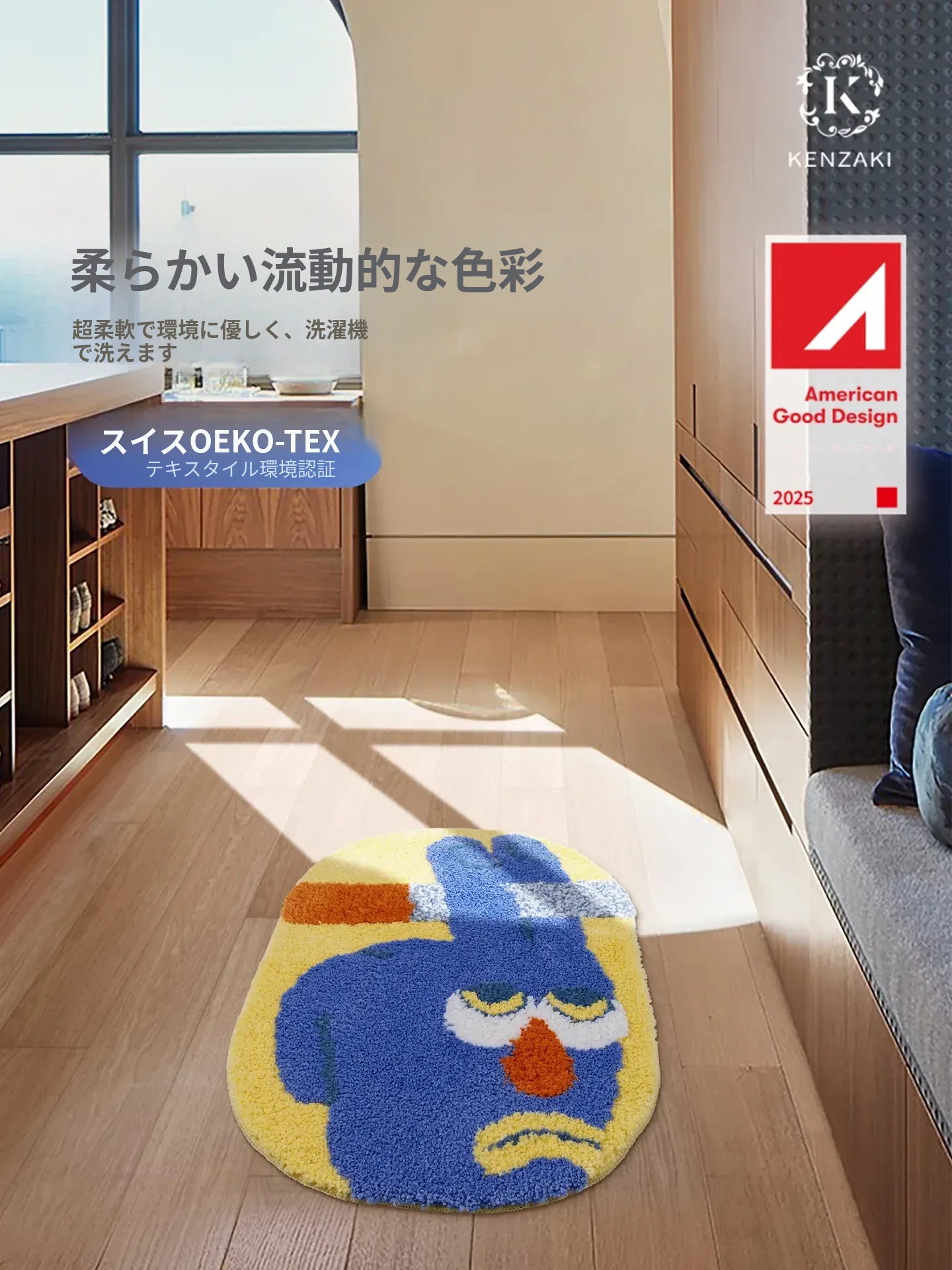 KENZAKI健崎 洗える多機能ドーパミンラグ!デスク、ベッドサイド、リビング、書斎にぴったりな異形滑り止めラグ。心地よい空間を演出し、あなたの生活を彩ります!