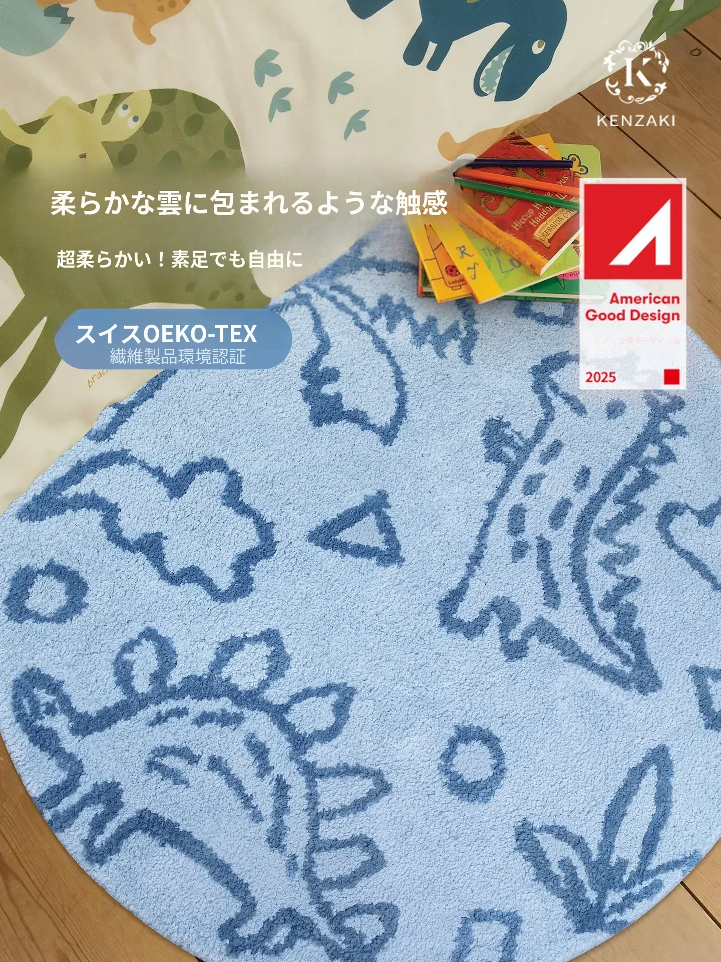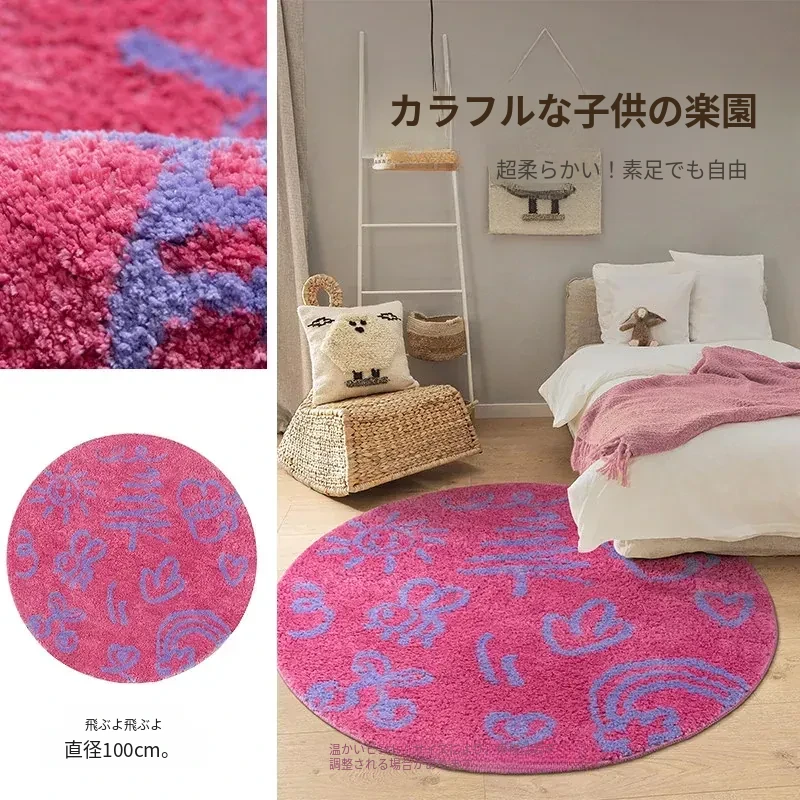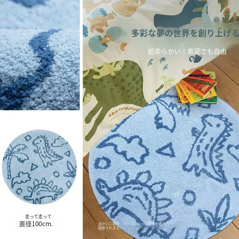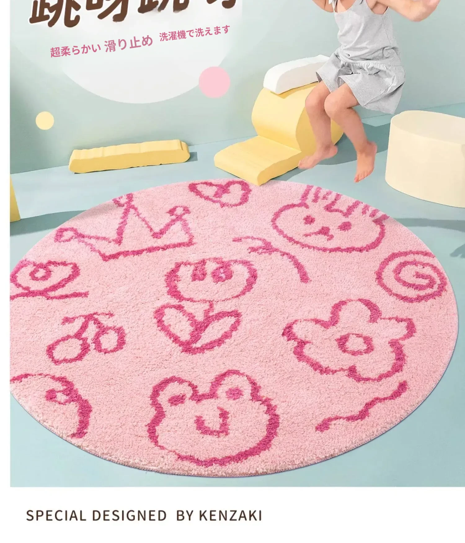 KENZAKI健崎 洗えるラグ 女の子のベッドサイドマット リビング・子供部屋に最適な滑り止め付きのブルーのラウンドカーペット