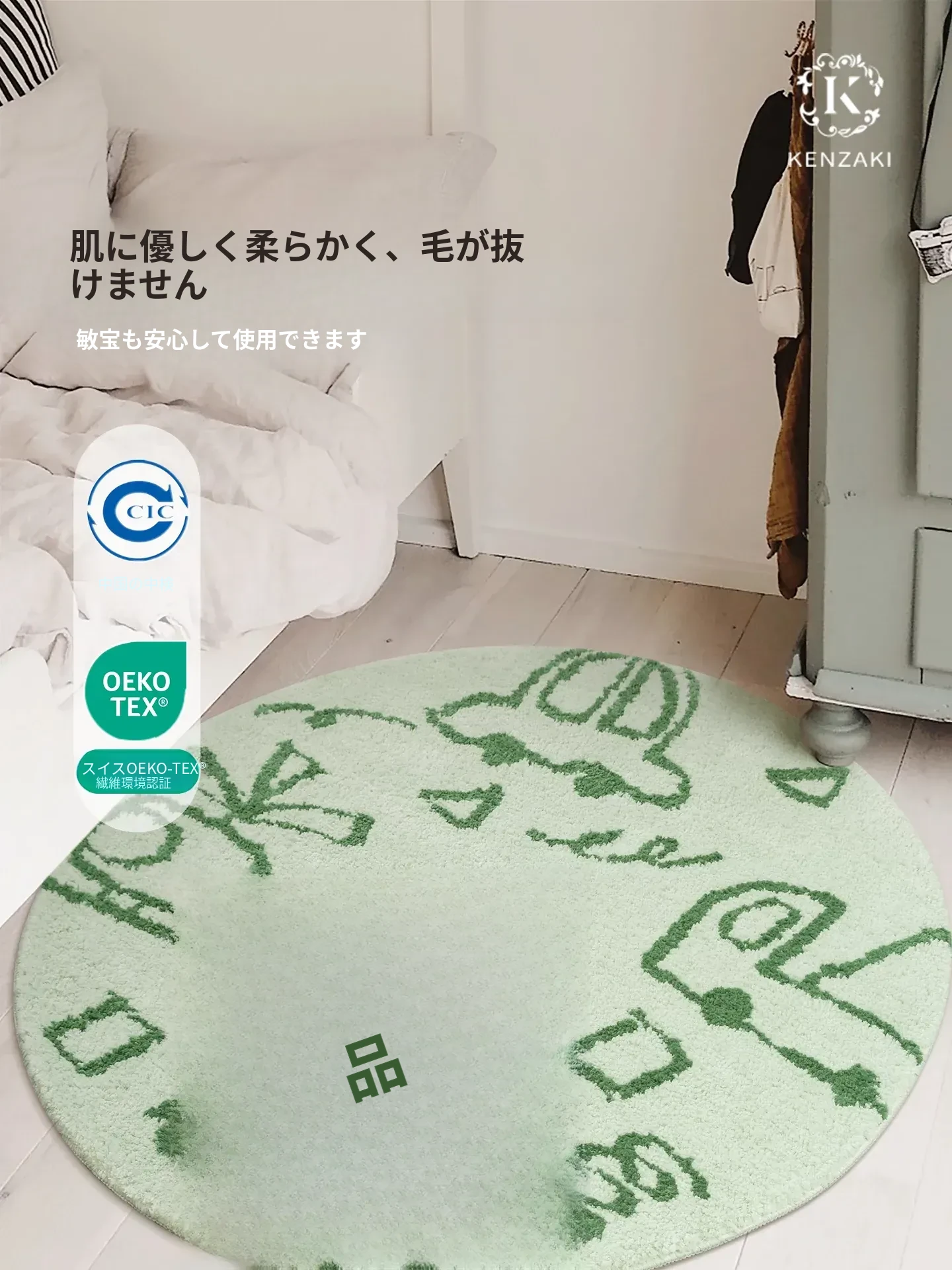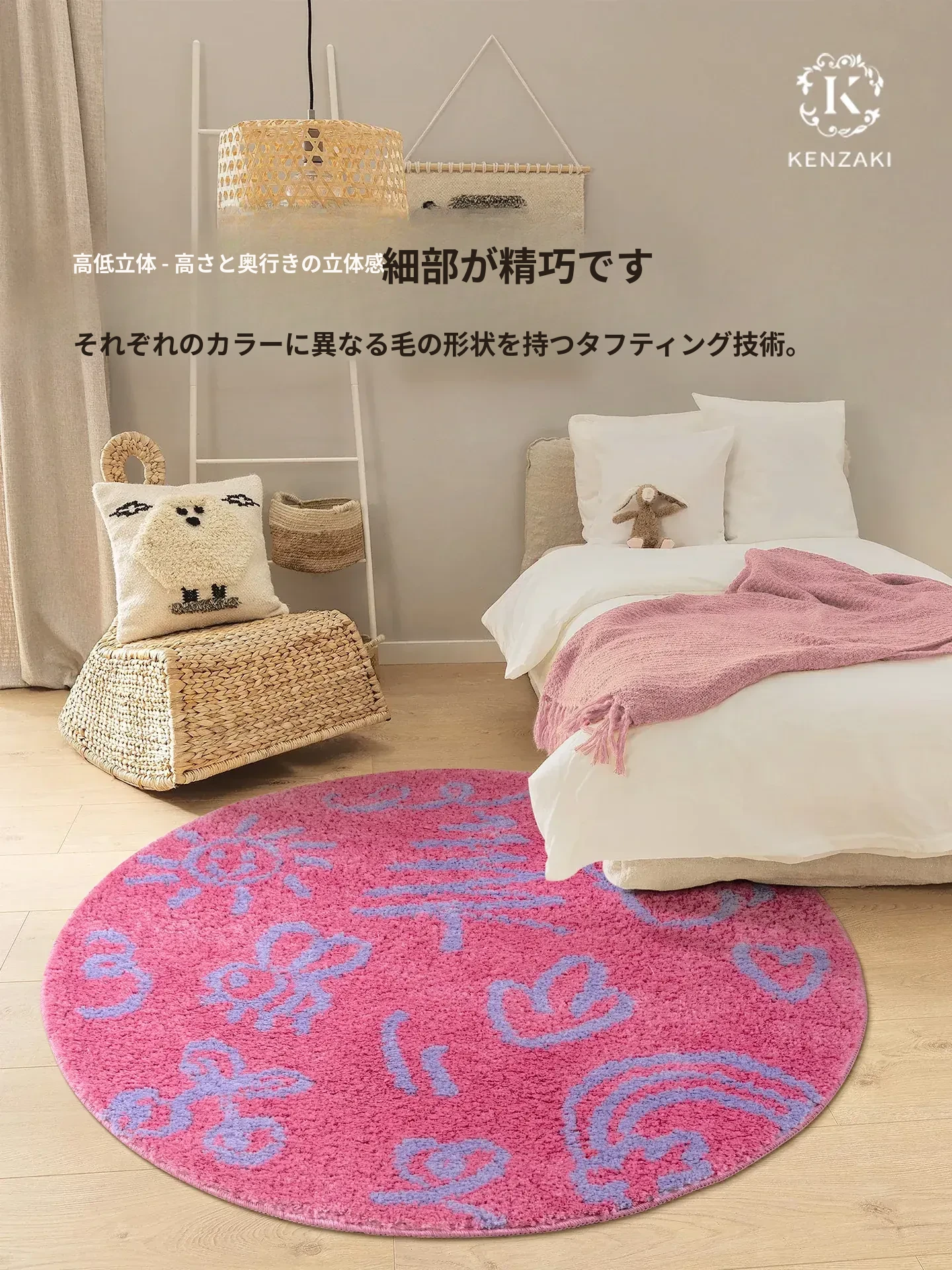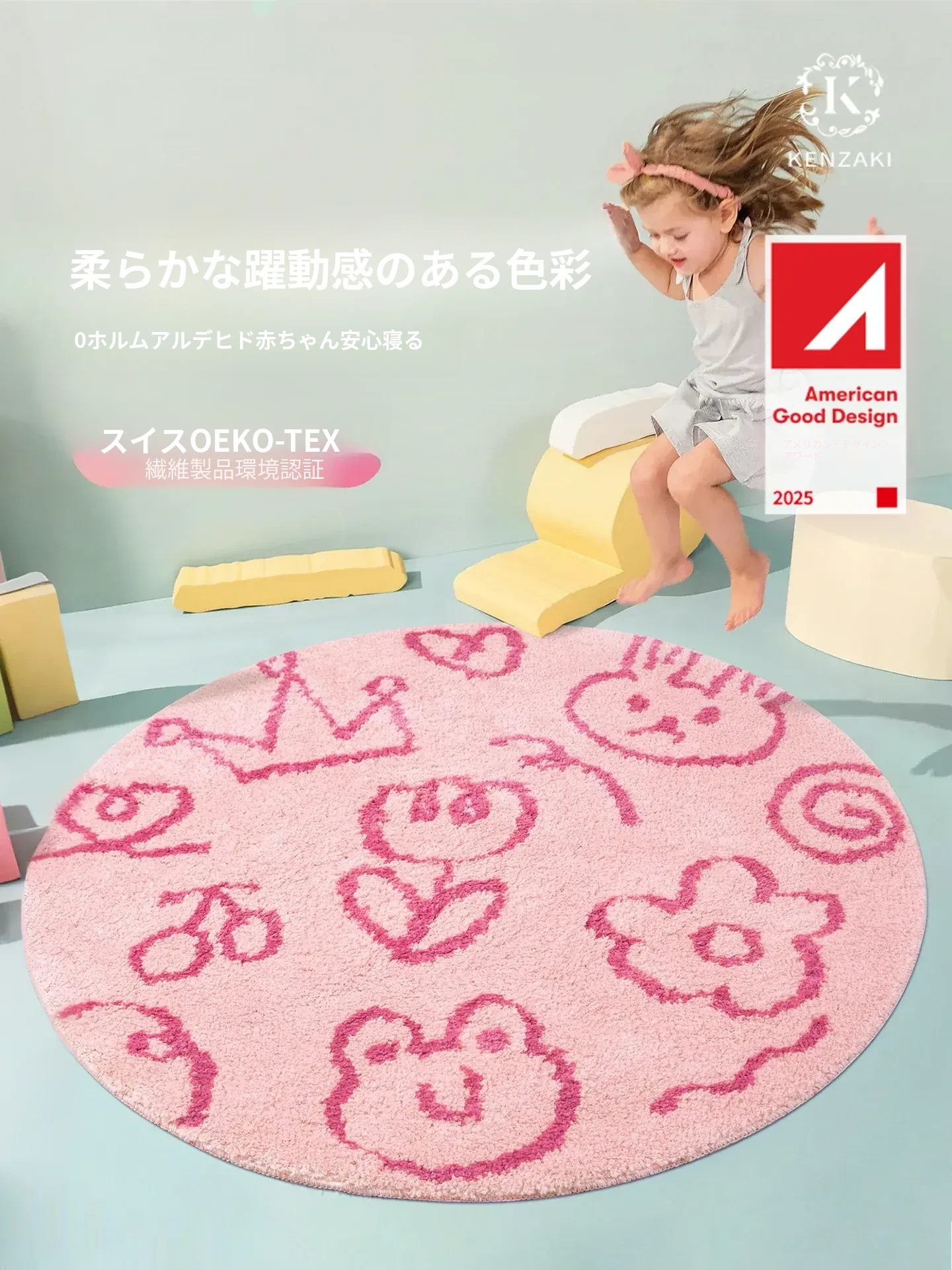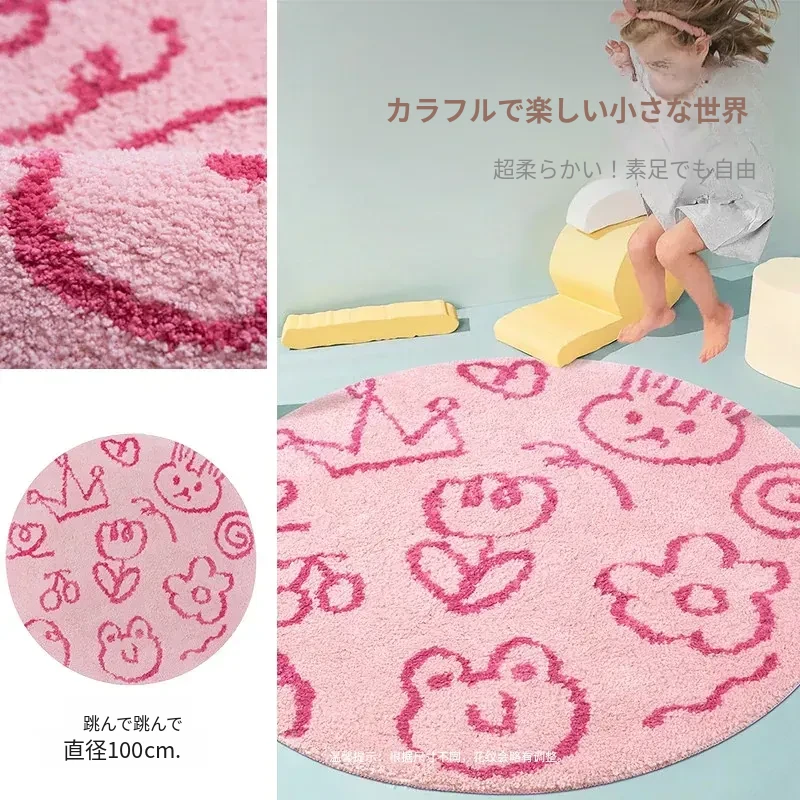 KENZAKI健崎 洗えるラグ 女の子のベッドサイドマット リビング・子供部屋に最適な滑り止め付きのブルーのラウンドカーペット