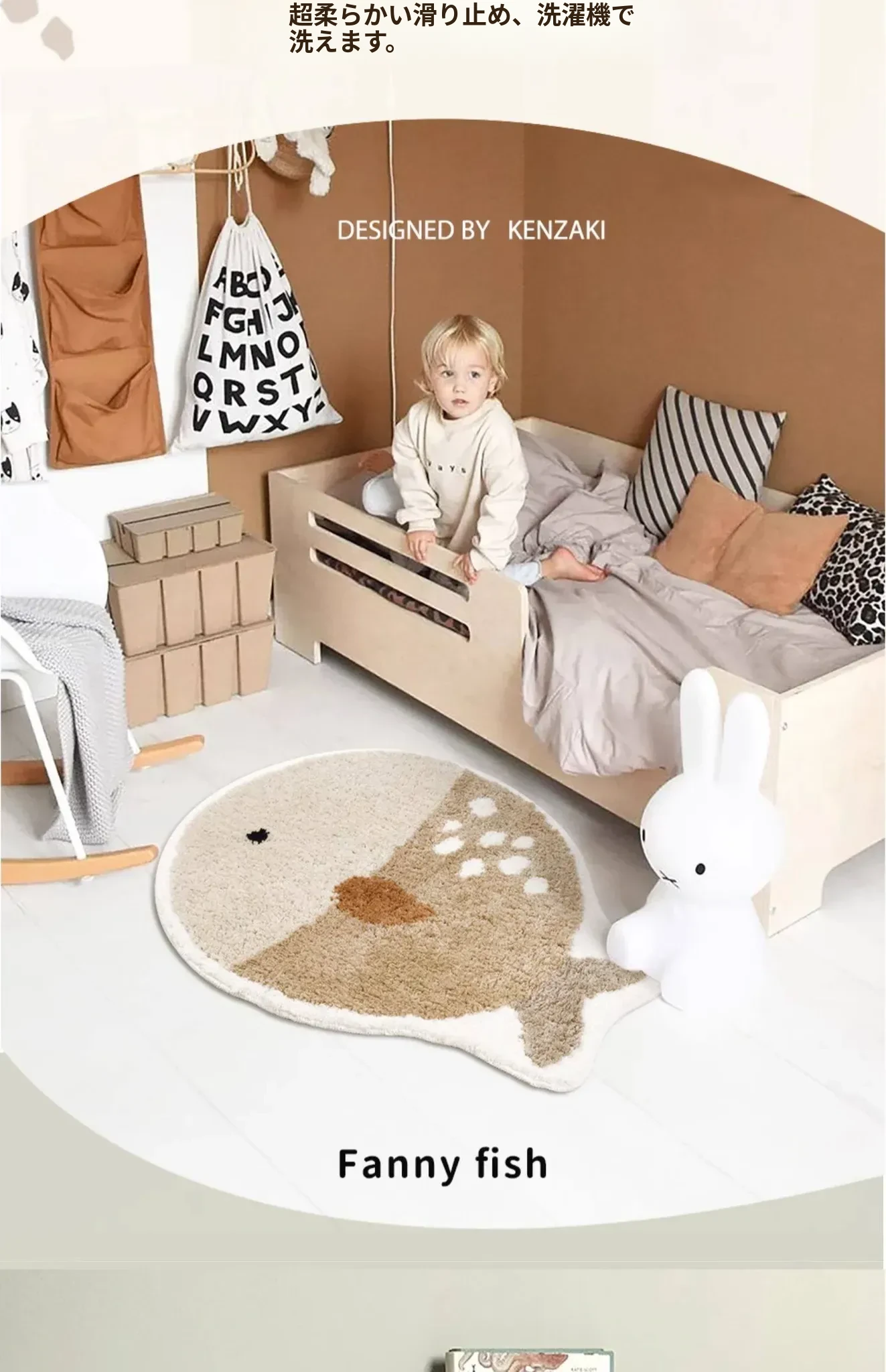 KENZAKI(健崎)洗える防音・滑り止めデザインラグマット - おしゃれで快適な子供部屋やリビングに最適!柔らかい素材で安全性も抜群、洗濯可能でお手入れ簡単。