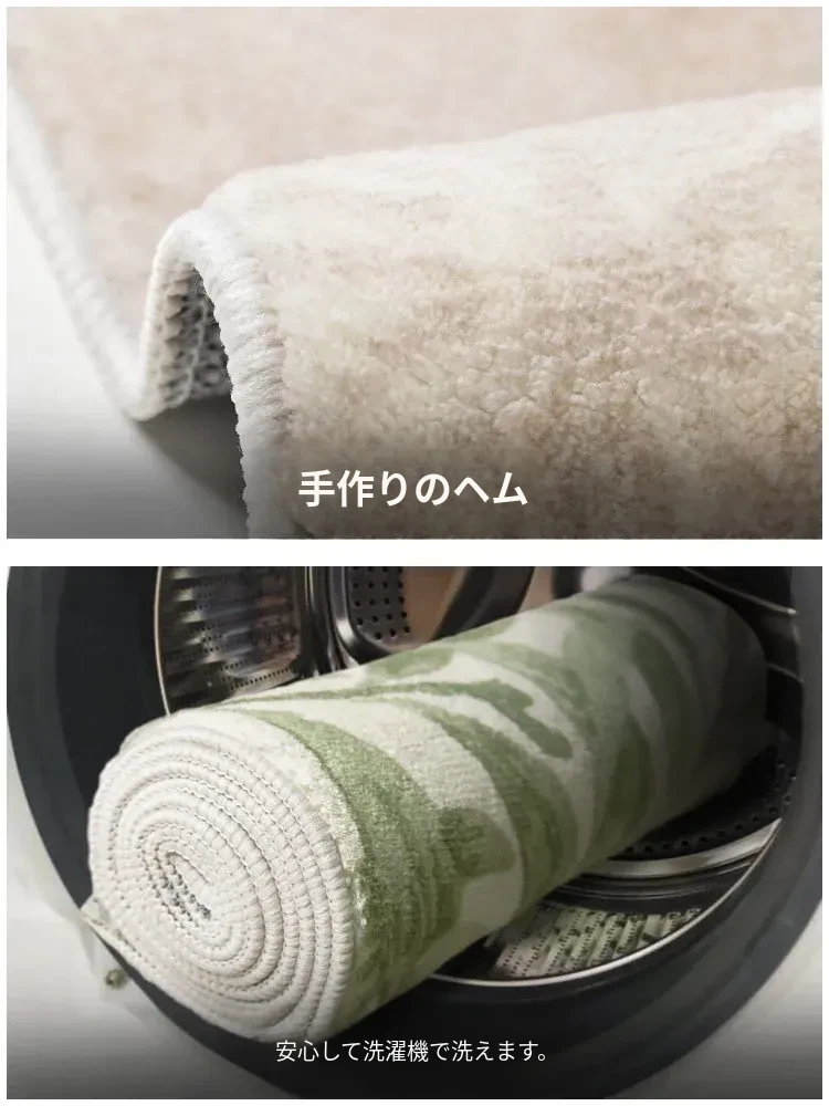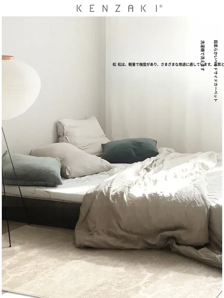 KENZAKI 洗える超柔らかベッドサイドマット - 日本風モダンシンプルデザイン、折りたたみ可能、滑り止め付き!快適な寝室を作る必須アイテム!