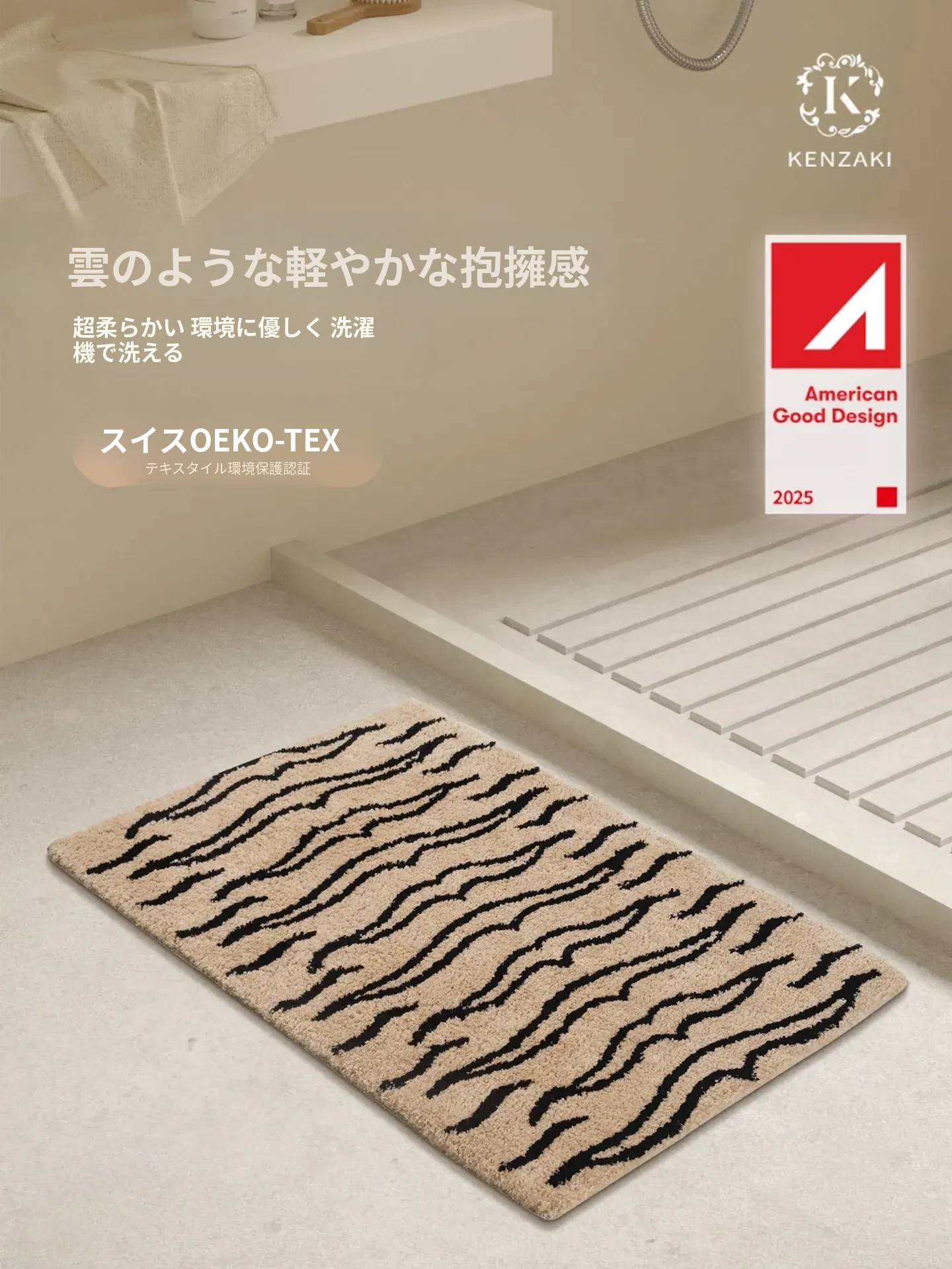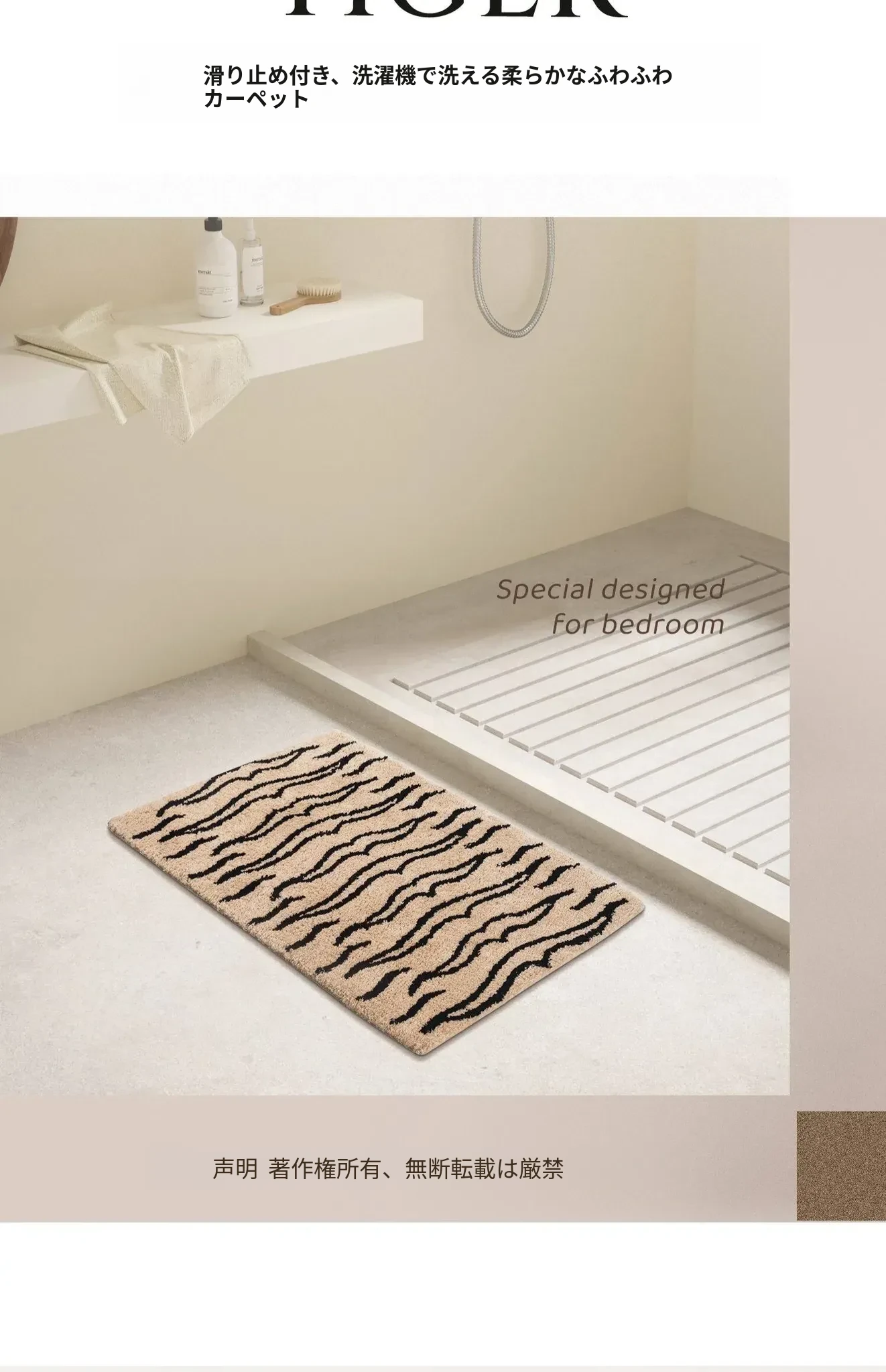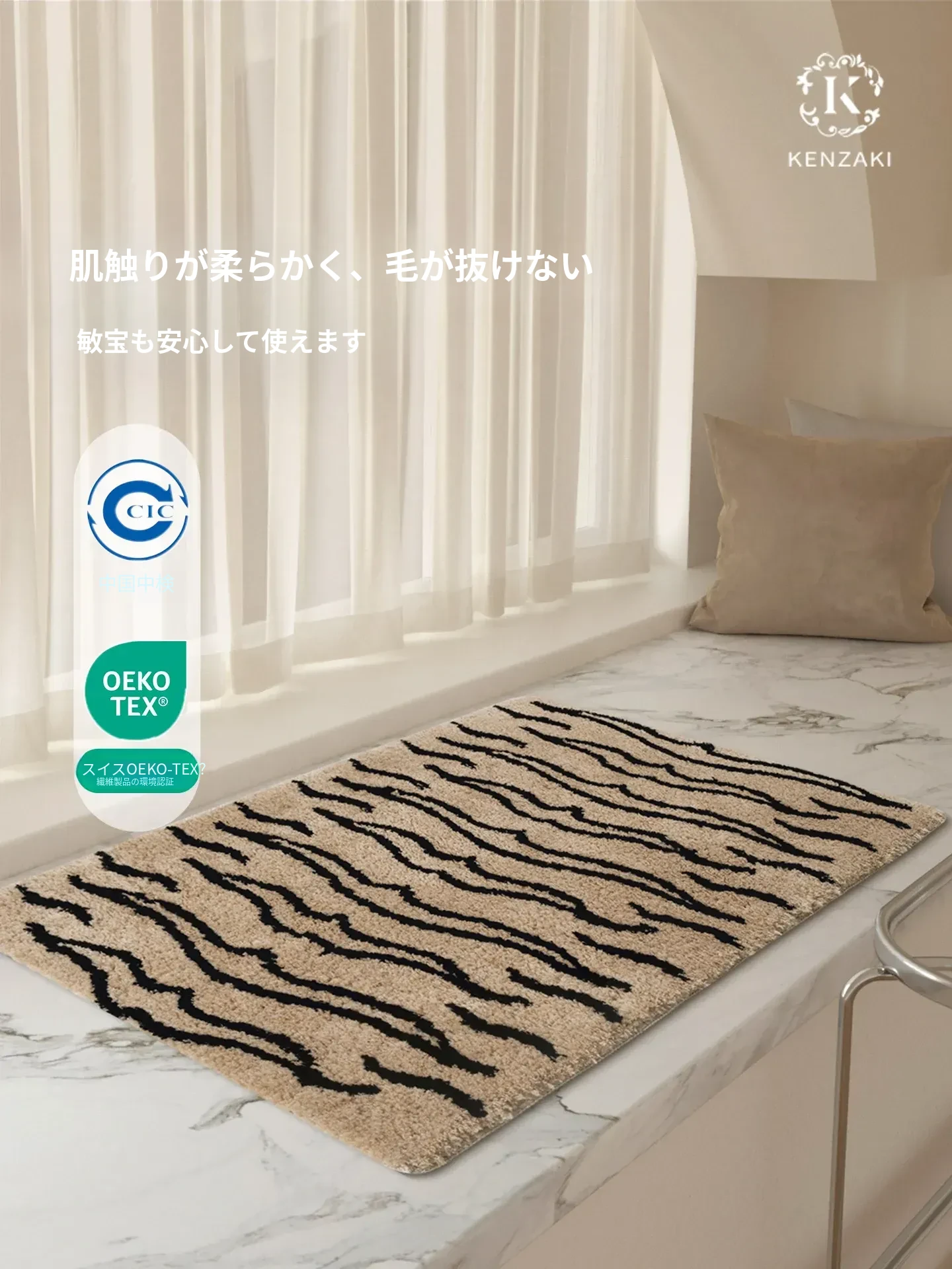 KENZAKI 洗える超柔らか虎柄ラグ - 寝室・クローゼット・ドレッシングミラー・窓辺にぴったり!滑り止め付きで安心のベッドサイドマット。おしゃれで機能的なインテリアを演出します!