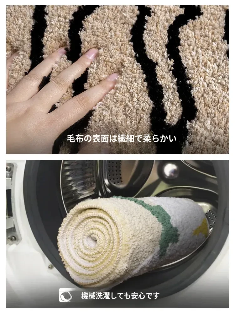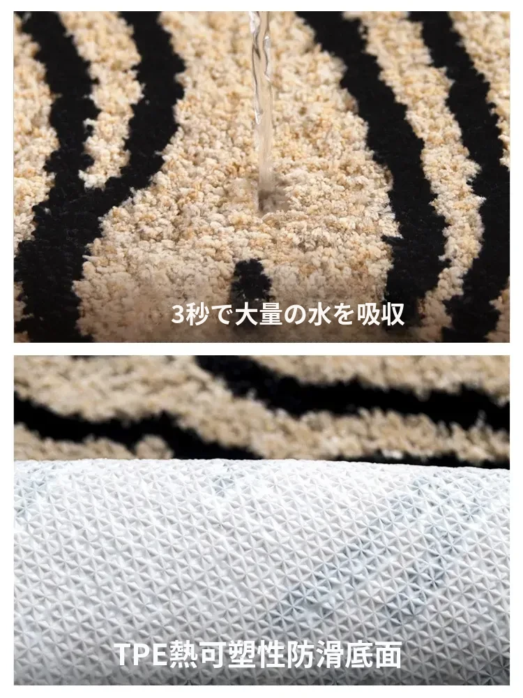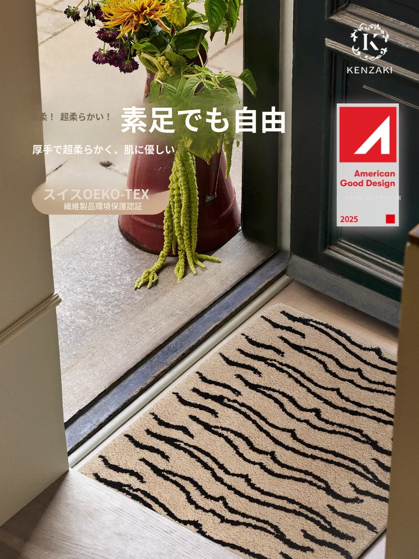 KENZAKI 洗える超柔らか虎柄ラグ - 寝室・クローゼット・ドレッシングミラー・窓辺にぴったり!滑り止め付きで安心のベッドサイドマット。おしゃれで機能的なインテリアを演出します!