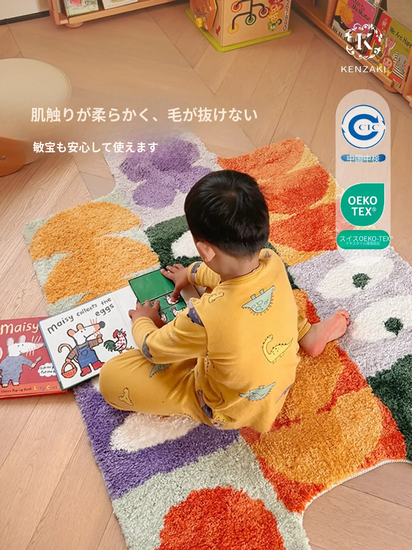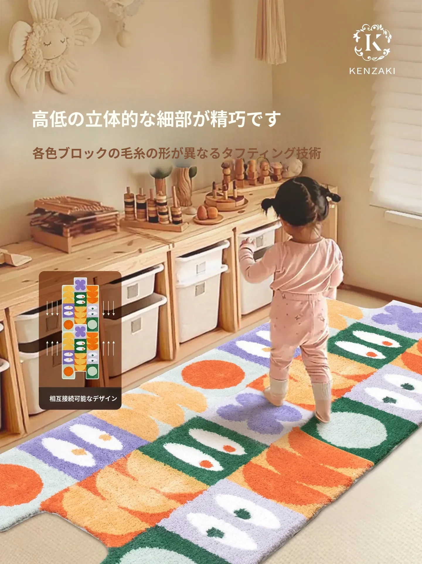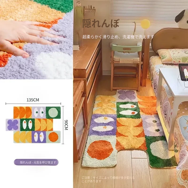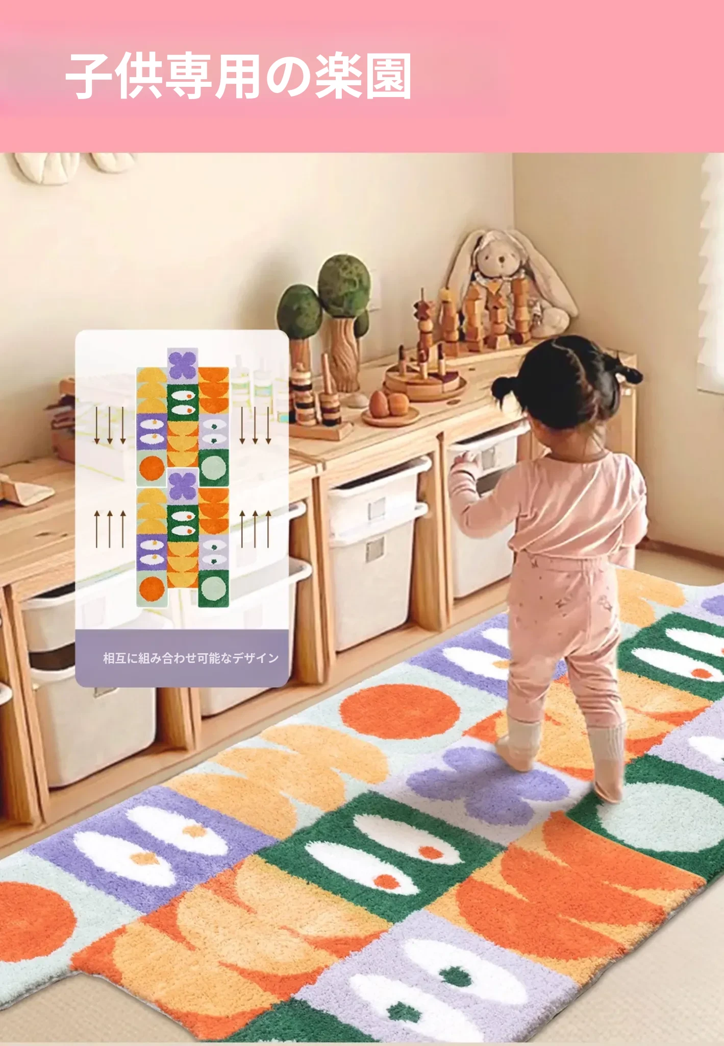 子供用カーペット ベッドサイドマット 読書エリアにぴったりのドーパミンマット!滑り止め加工で安全、洗濯機で簡単お手入れ。心温まるお部屋作りをサポートします!
