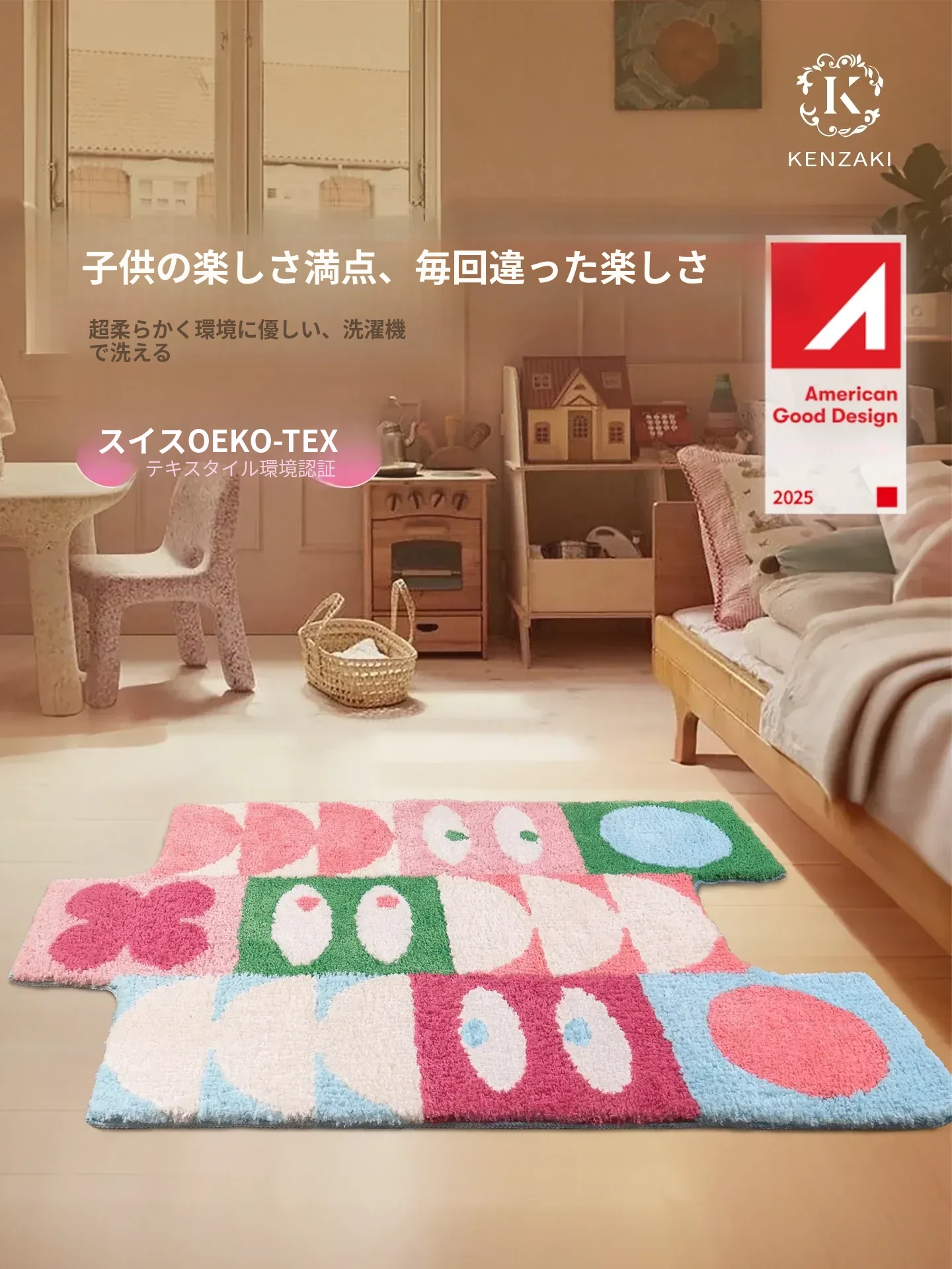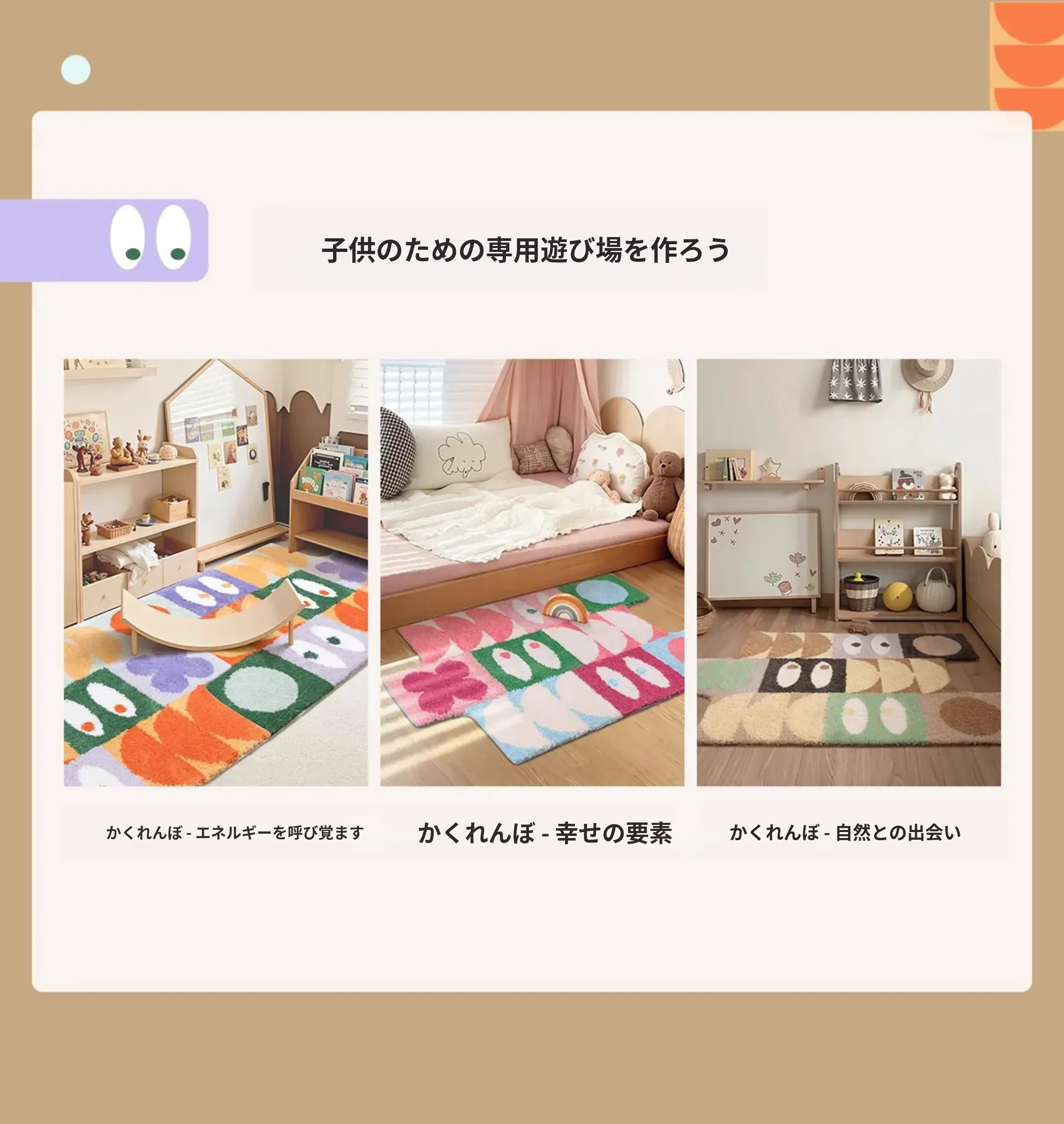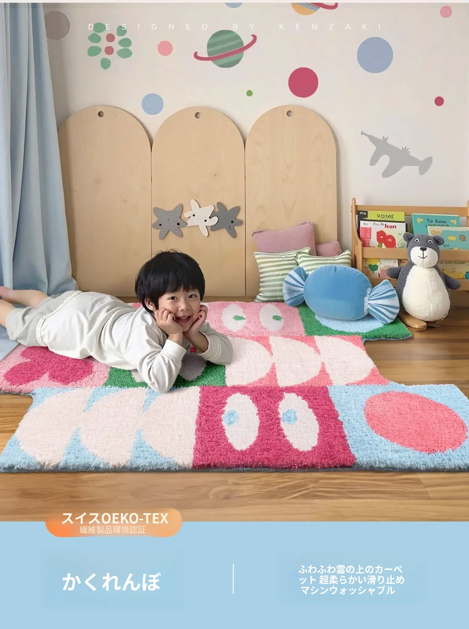 子供用カーペット ベッドサイドマット 読書エリアにぴったりのドーパミンマット!滑り止め加工で安全、洗濯機で簡単お手入れ。心温まるお部屋作りをサポートします!