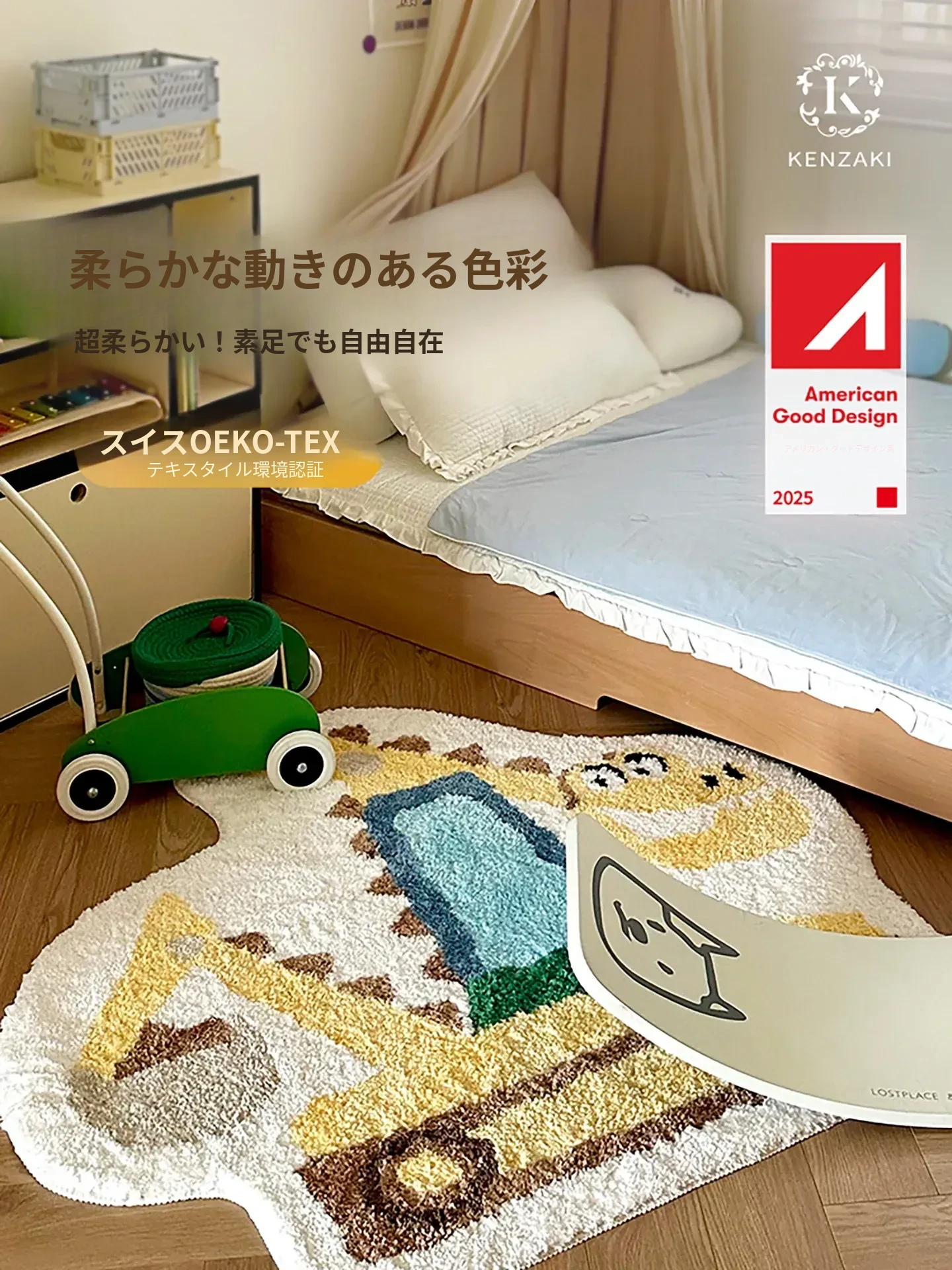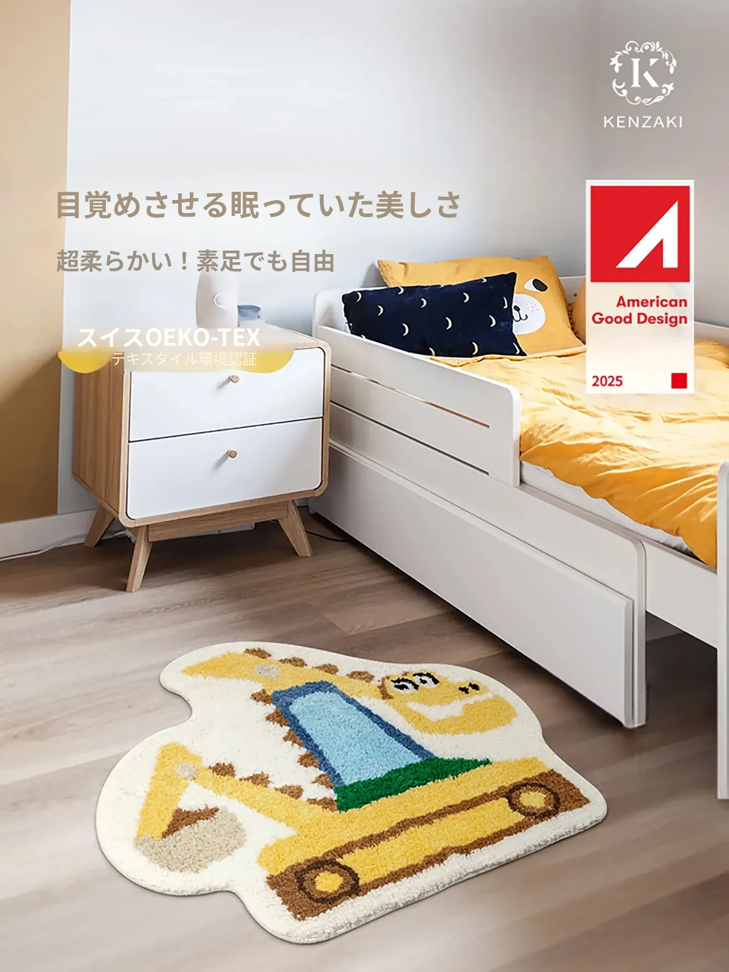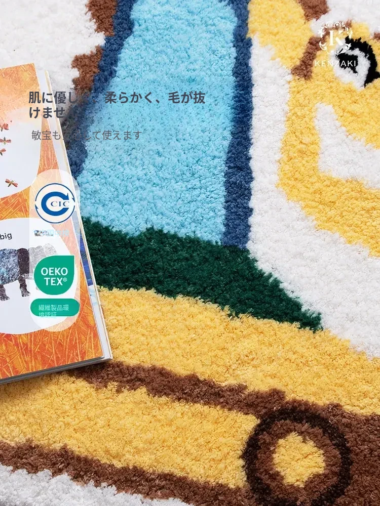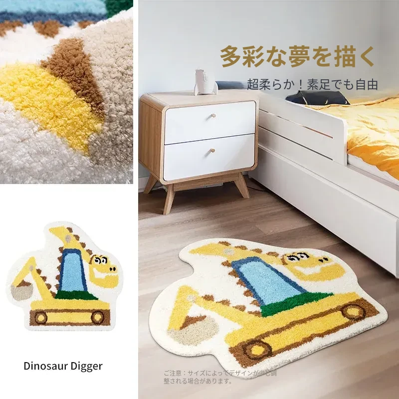 子供用カーペット ベッドサイドマット 男の子の部屋にぴったり!読み聞かせエリアに最適な掘削機デザインの不規則な形状。洗濯機で洗えるからいつでも清潔!お子様の成長に合わせて楽しく使えるアイテムです。