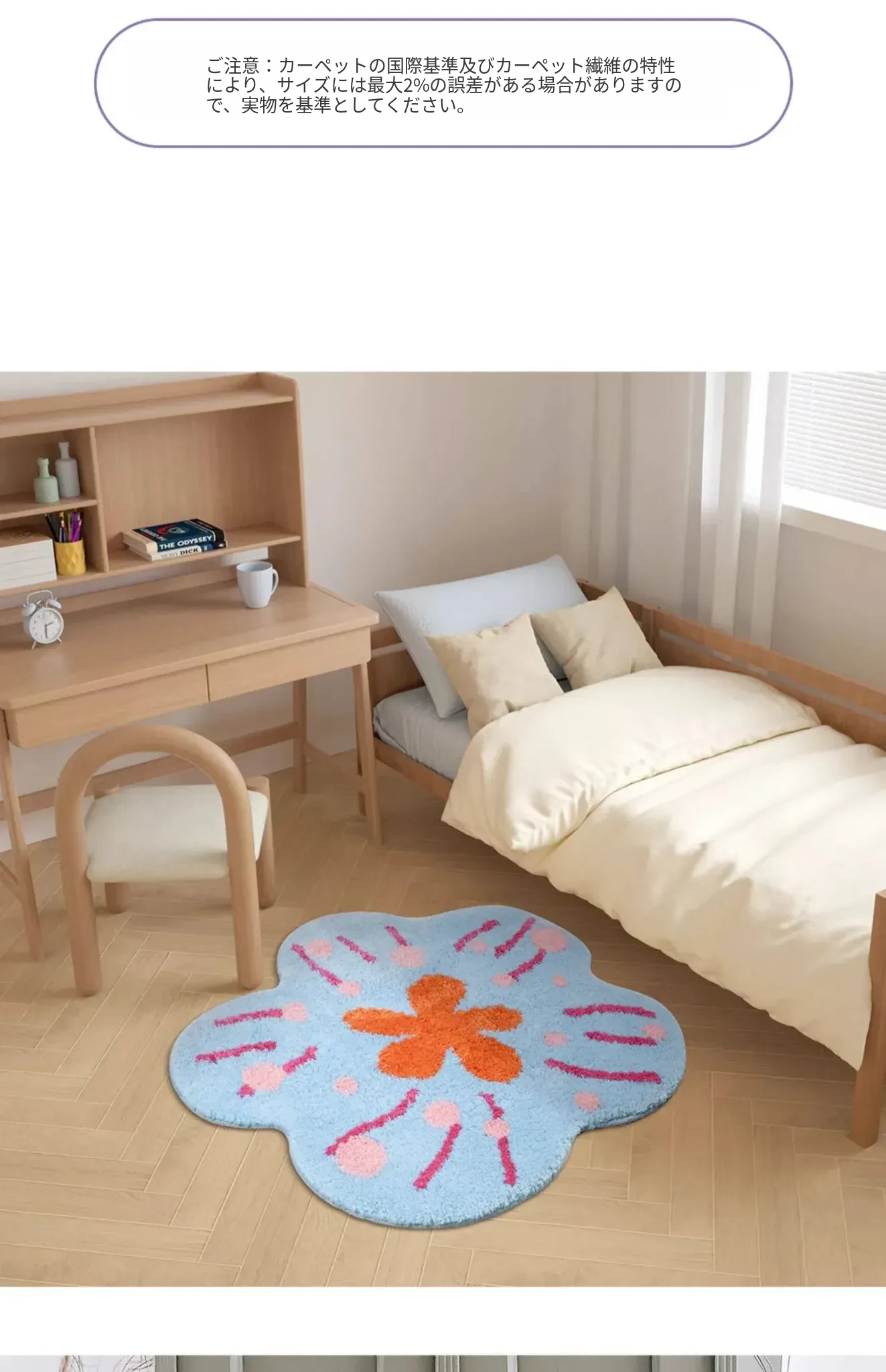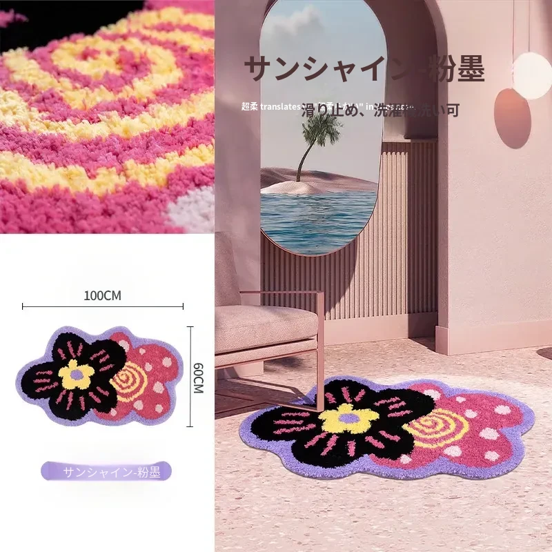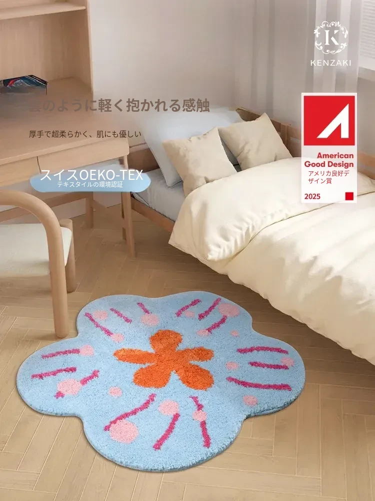 子供部屋にぴったり!女の子のためのベッドサイドラグ、洗濯機で洗える多バイタルデザイン。メイク台や化粧椅子にも最適な滑り止め付きマット。おしゃれで快適な空間を演出します!