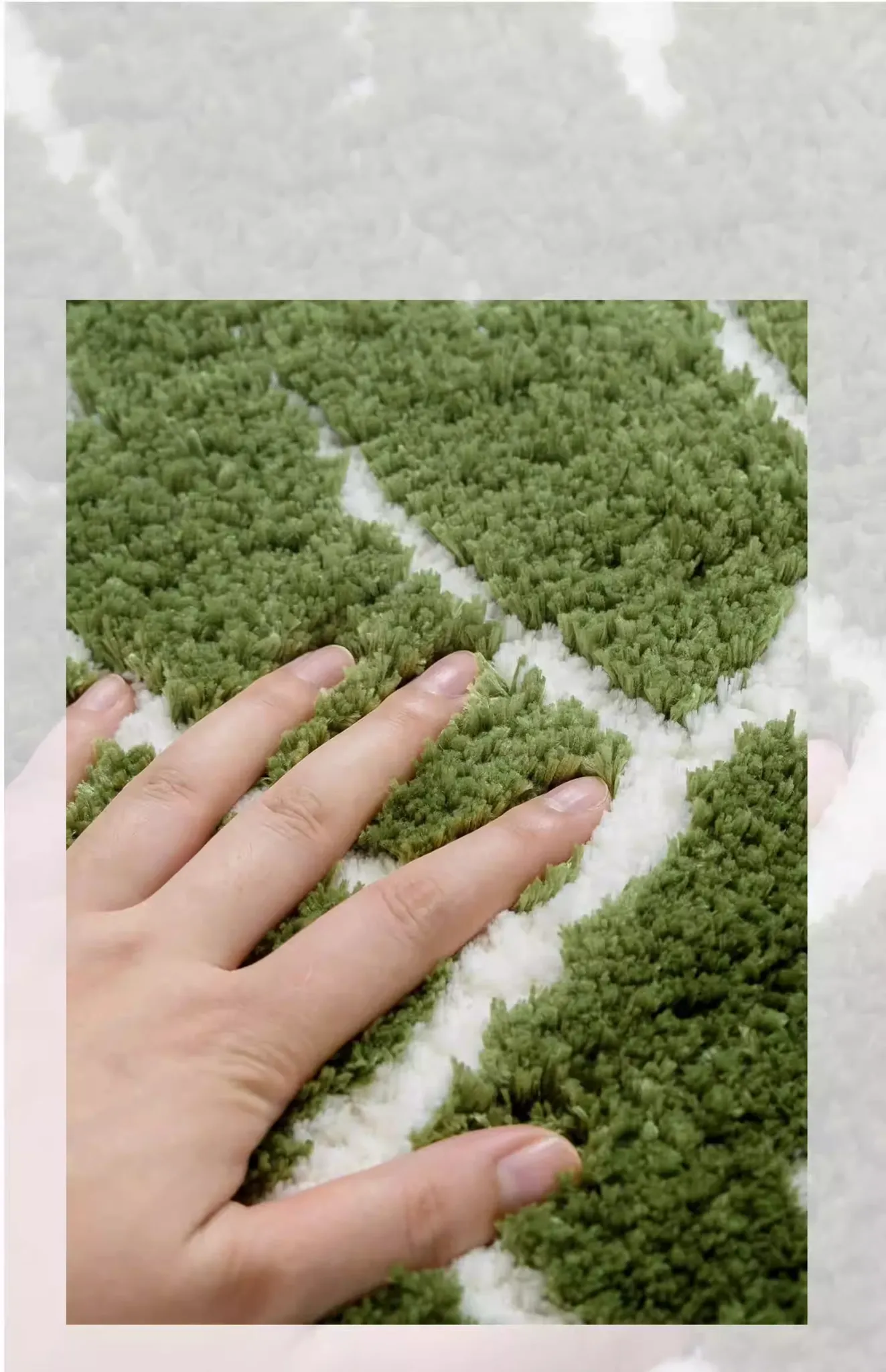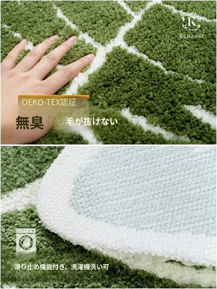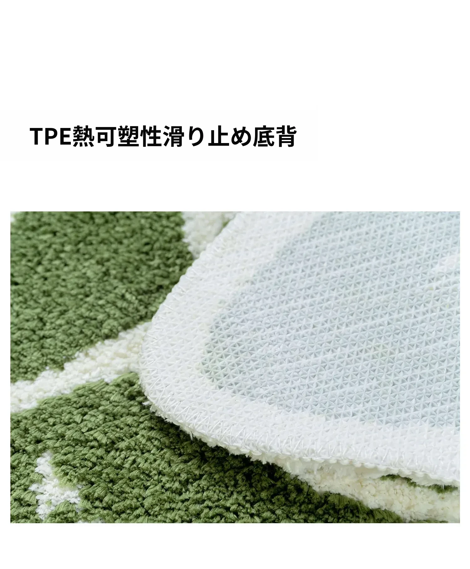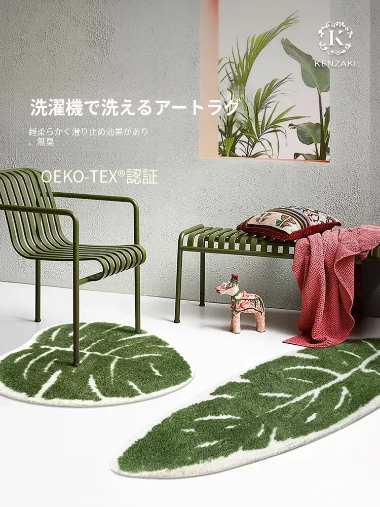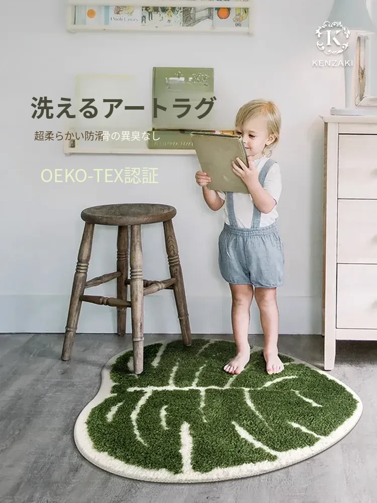 女の子の部屋にぴったり!おしゃれなグリーン植物デザインの子供用ラグ。ベッドサイドやドレッサーの下に最適。滑り止め機能付きで安心、安全。洗濯機で丸洗い可能で、お手入れも簡単!