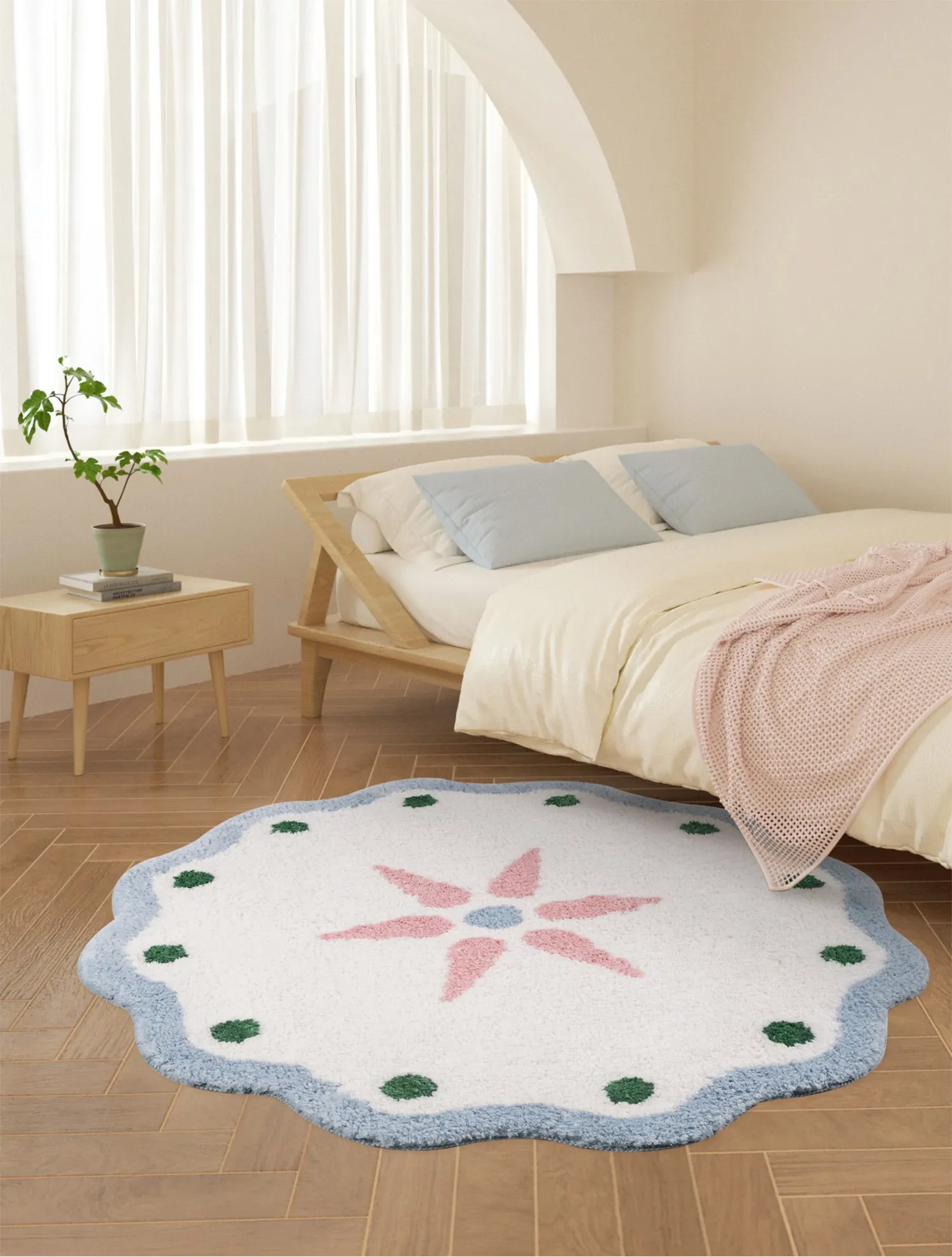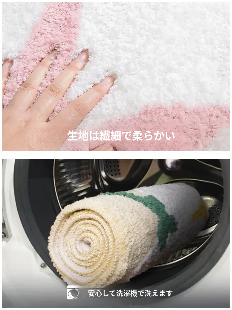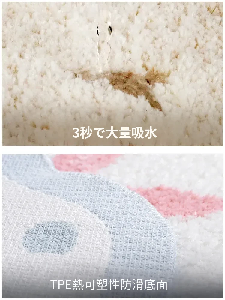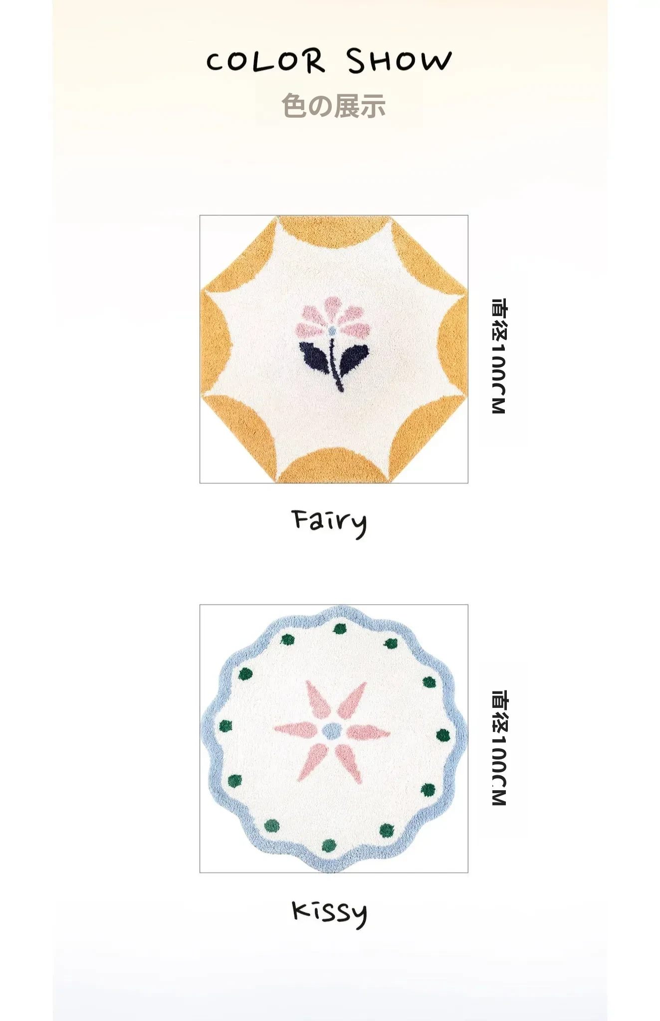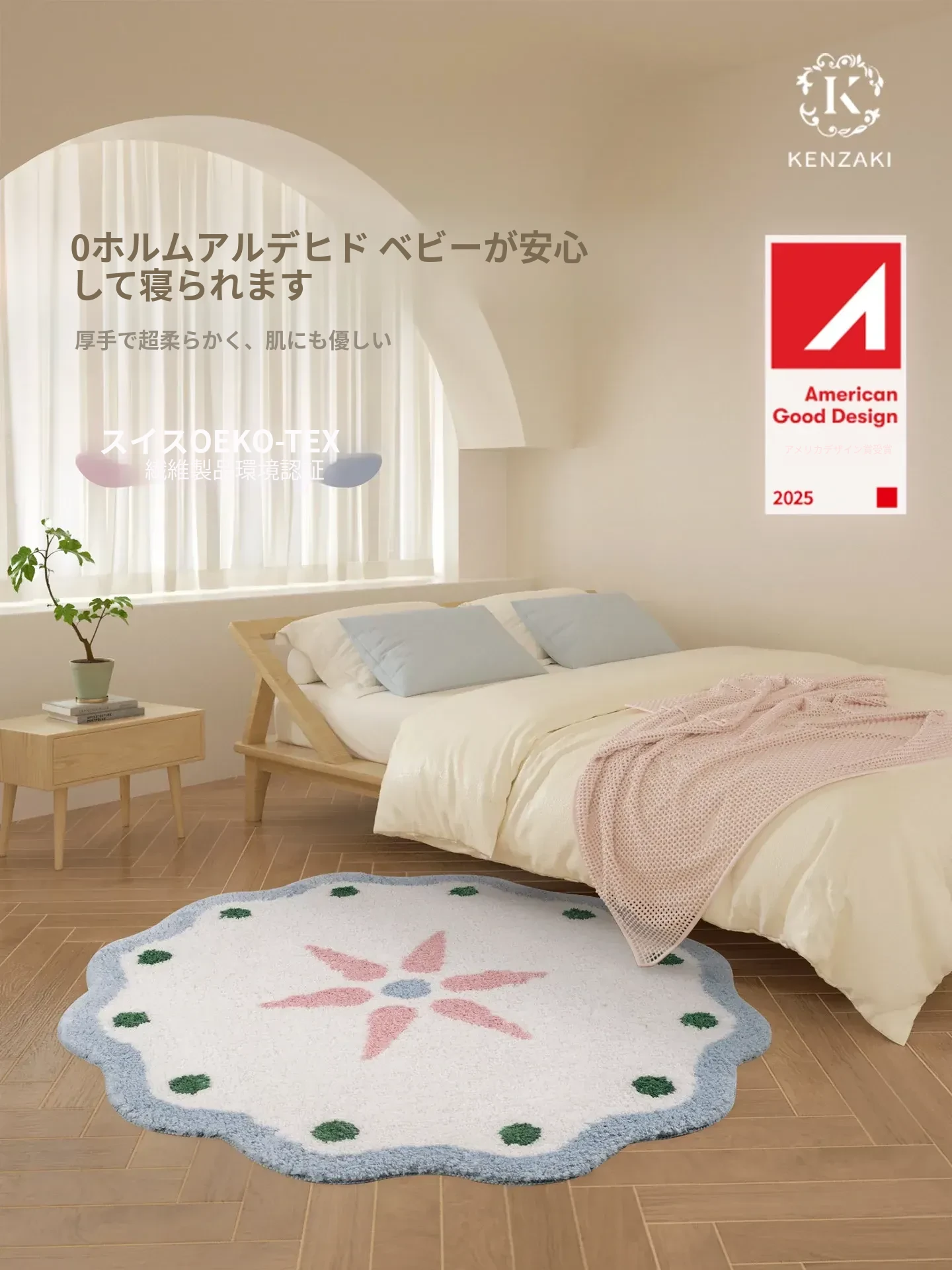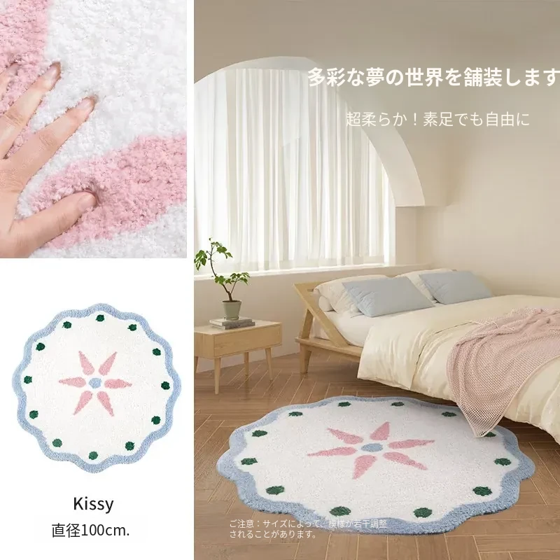超柔らかい円形ラグマット|子供部屋や寝室にぴったり!洗濯機で洗えるからいつでも清潔|滑り止め付きで安心|ドレッサー前やクローゼットにも最適!