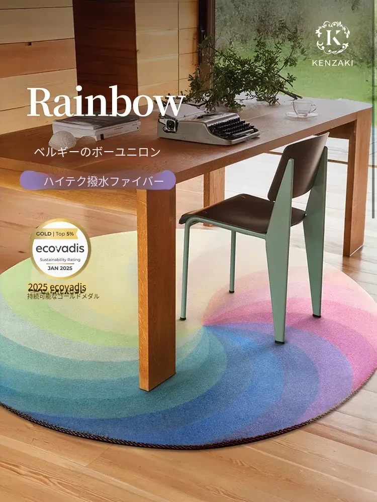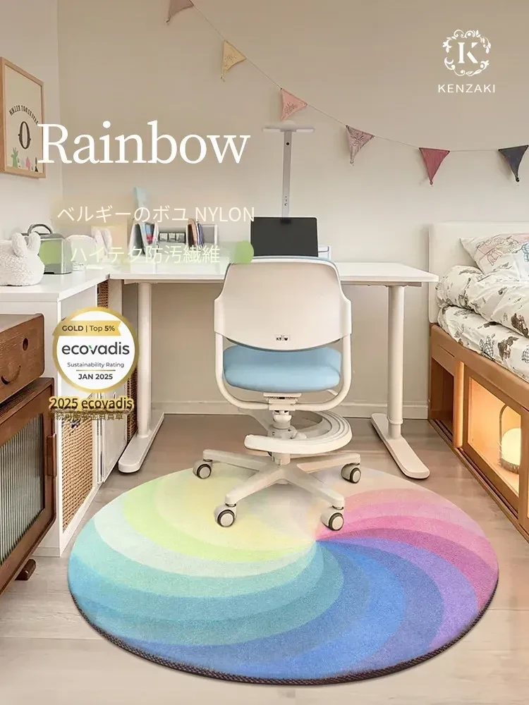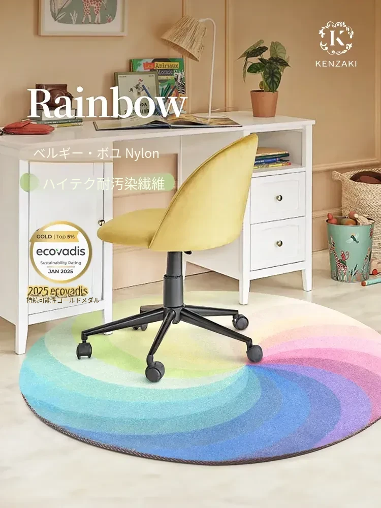 ラウンドカーペット|高級フレンチスタイル|リビングや子供部屋にぴったり|男の子・女の子のためのドパミンレインボーデザイン|おしゃれで心地よい空間を演出する子供用マット