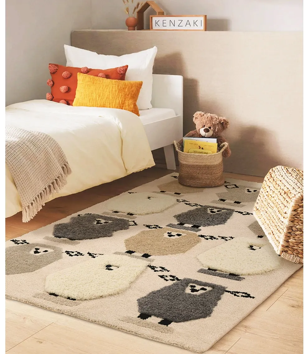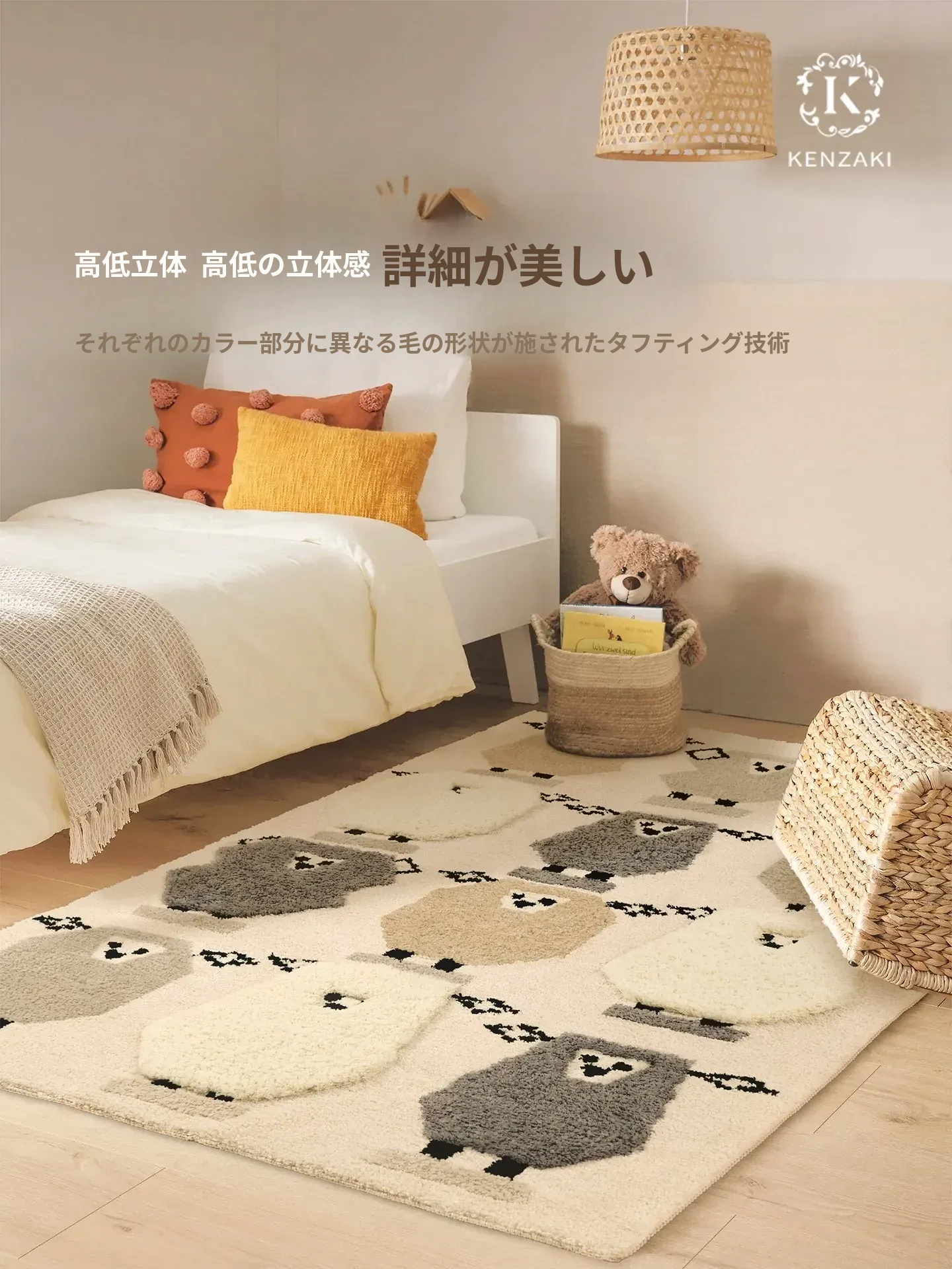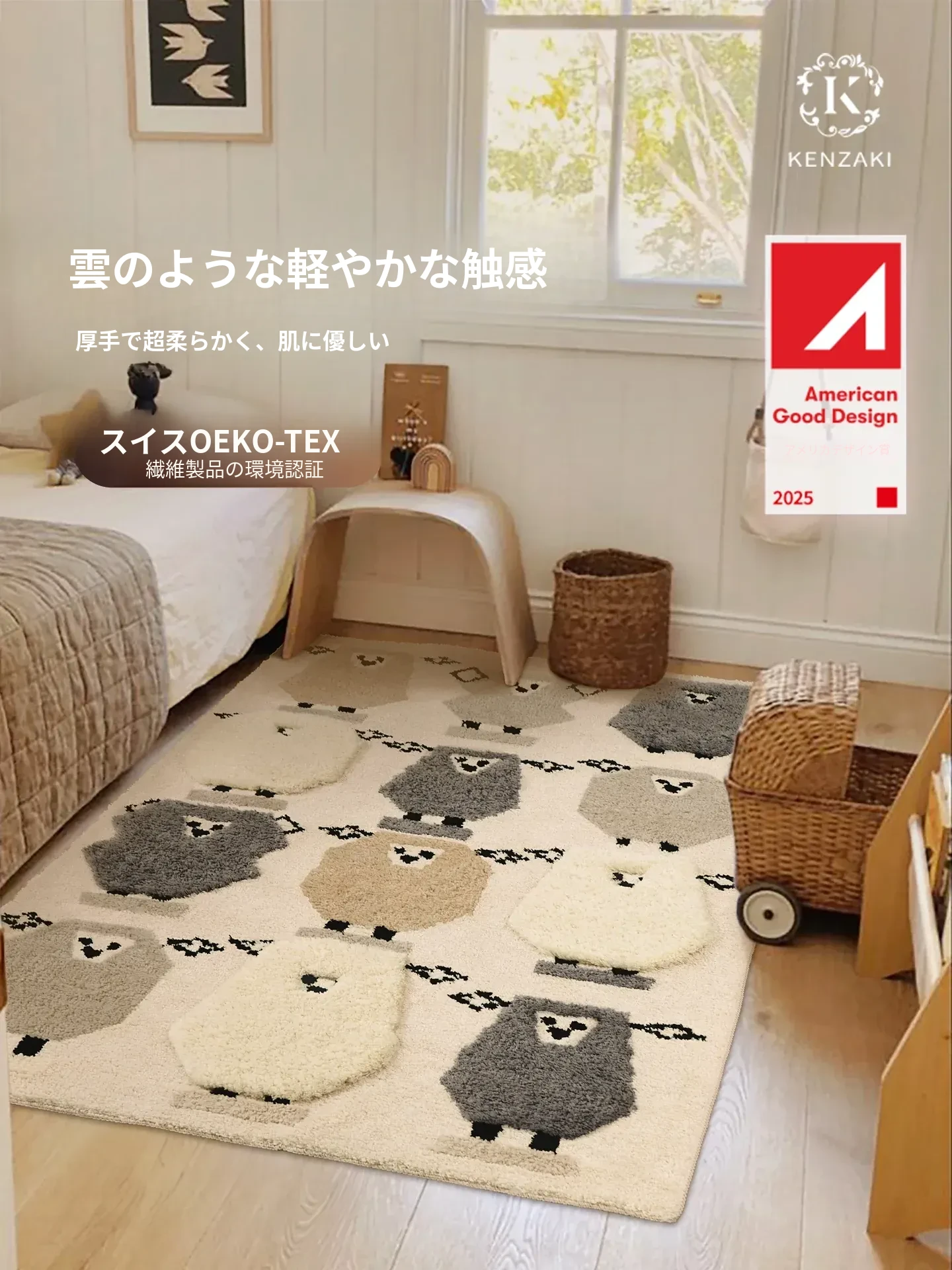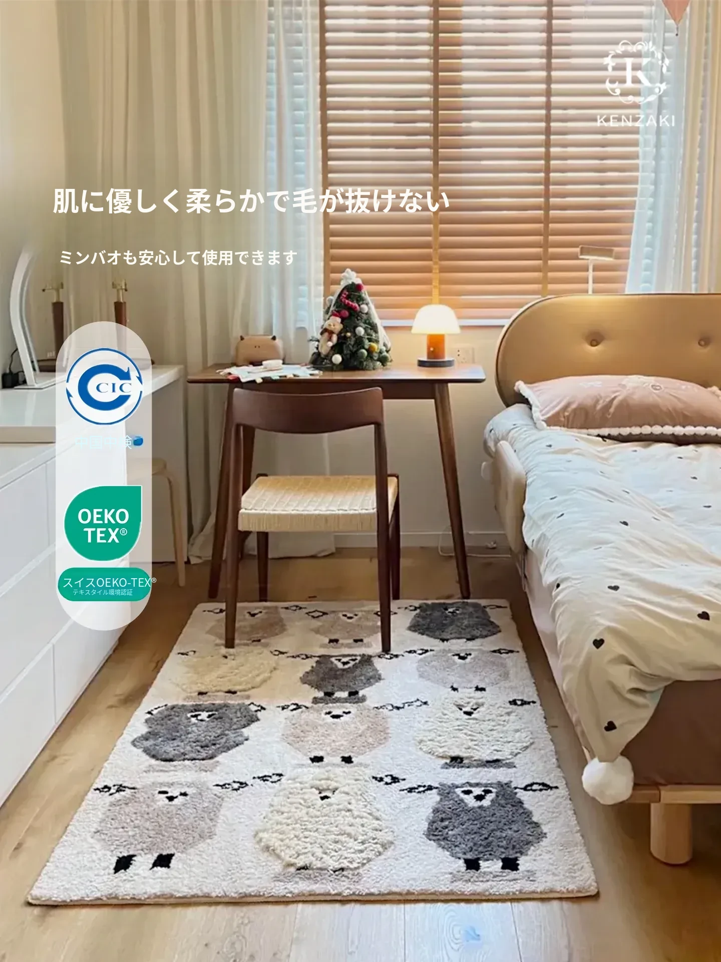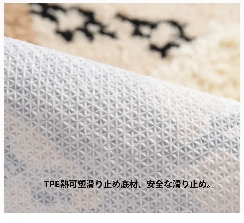 洗えるラグマット|おしゃれなインテリアにぴったり!ベッドサイドや子供の読書スペースに最適な滑り止め付きのふわふわラグで、温かみのあるお部屋作りをサポートします。