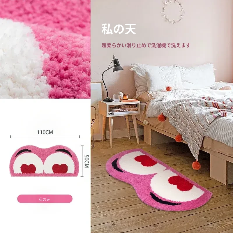 洗える!おしゃれなベッドサイドマット・リビング用ラグ - 女の子にもぴったりな滑り止め付き、キッズルームにも最適な小さなカーペットで、読書エリアを快適に!