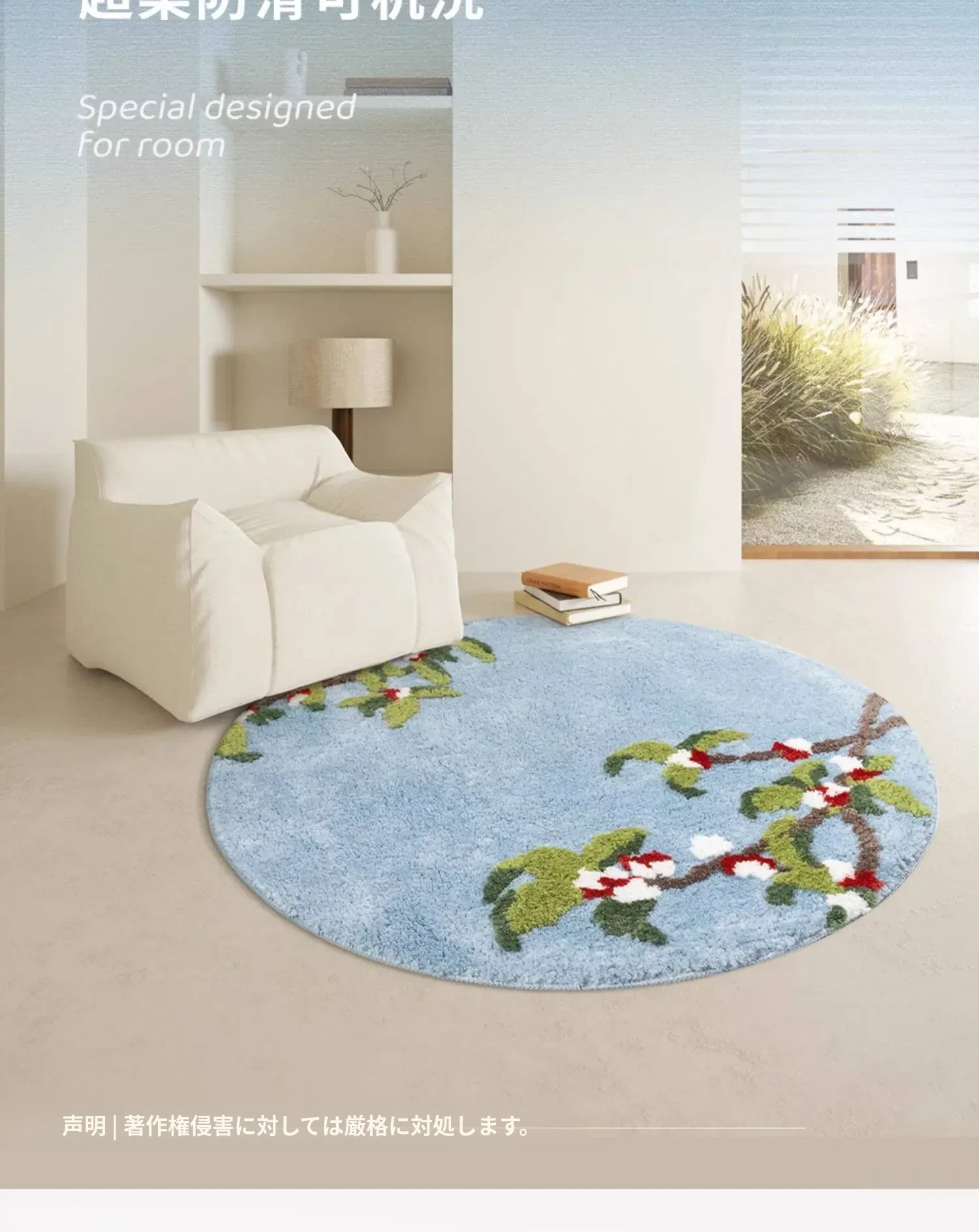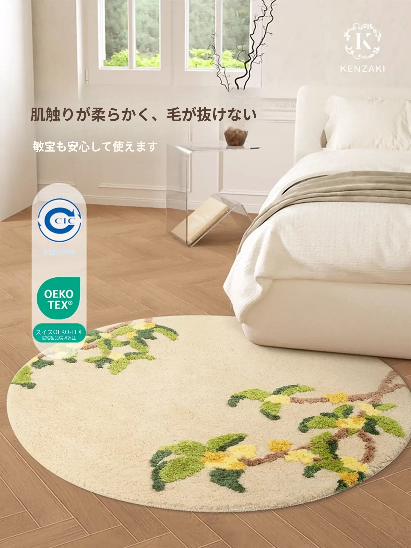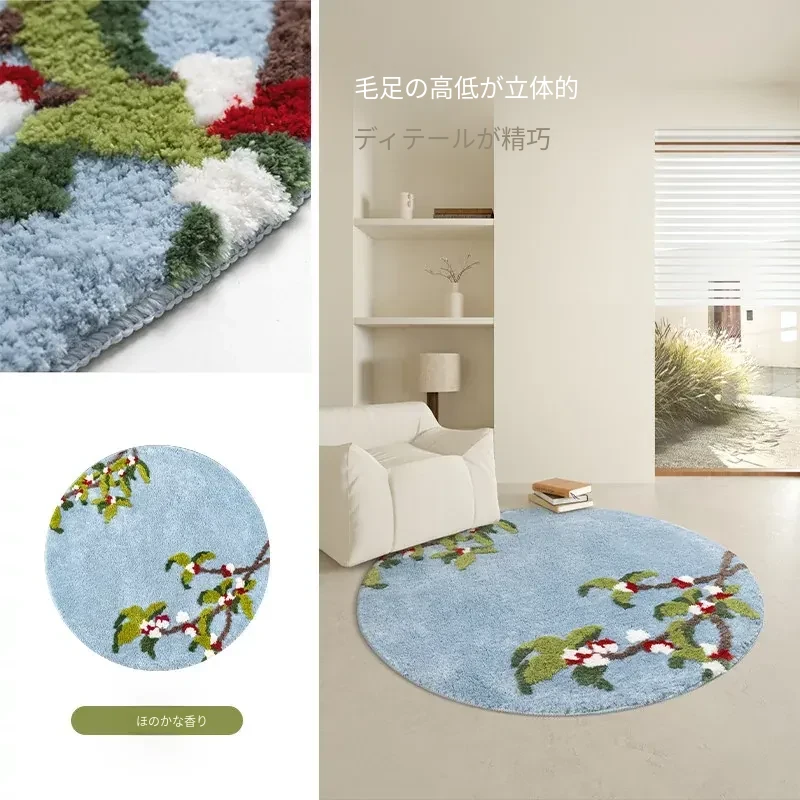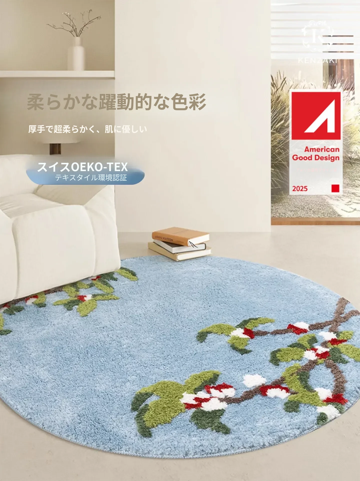 洗濯機で洗える!子供部屋やリビングにぴったりな防滑・防転倒のブルーラウンドカーペット。ベッドの前やクローゼットにも最適!快適な空間を演出します。