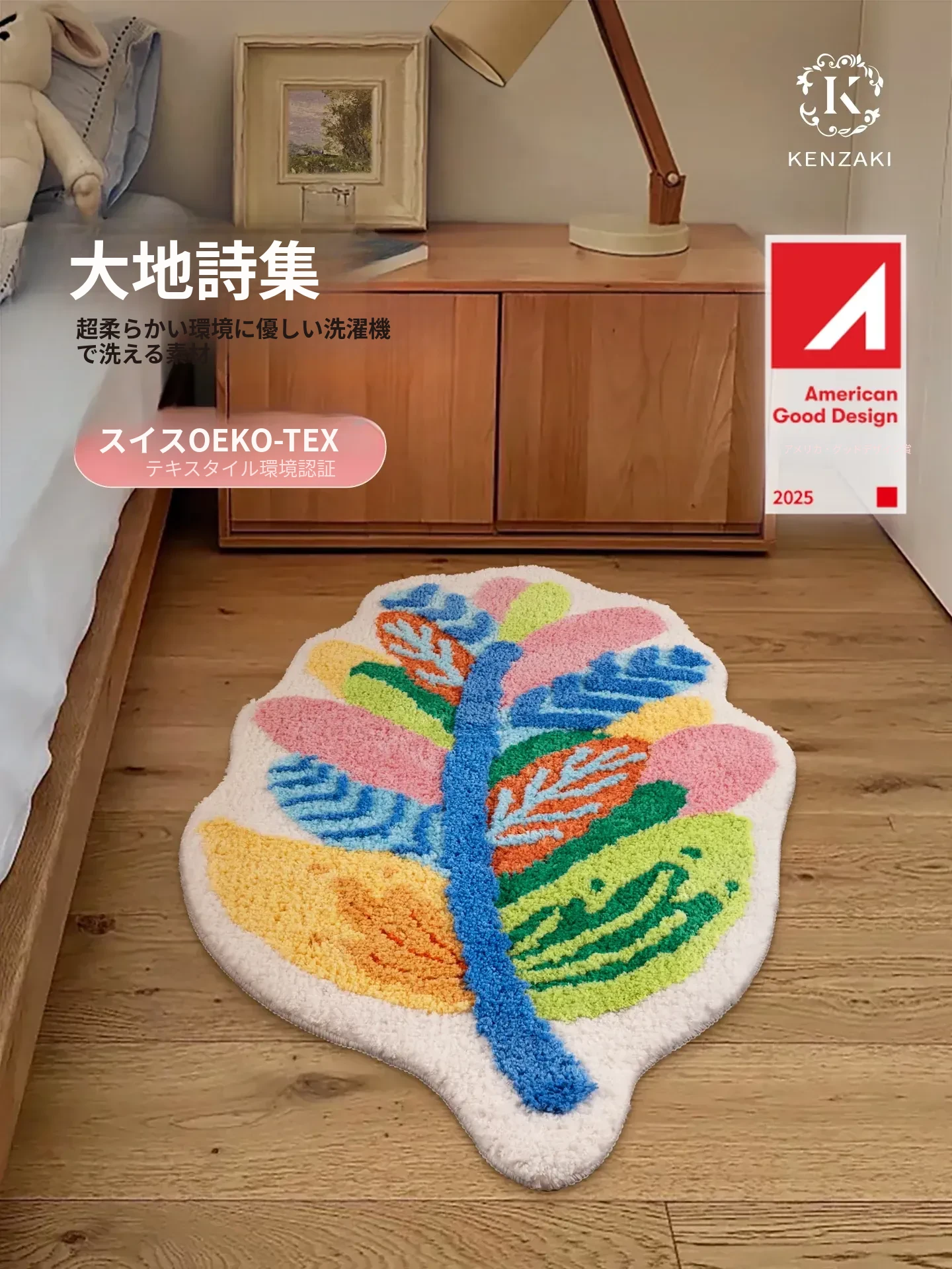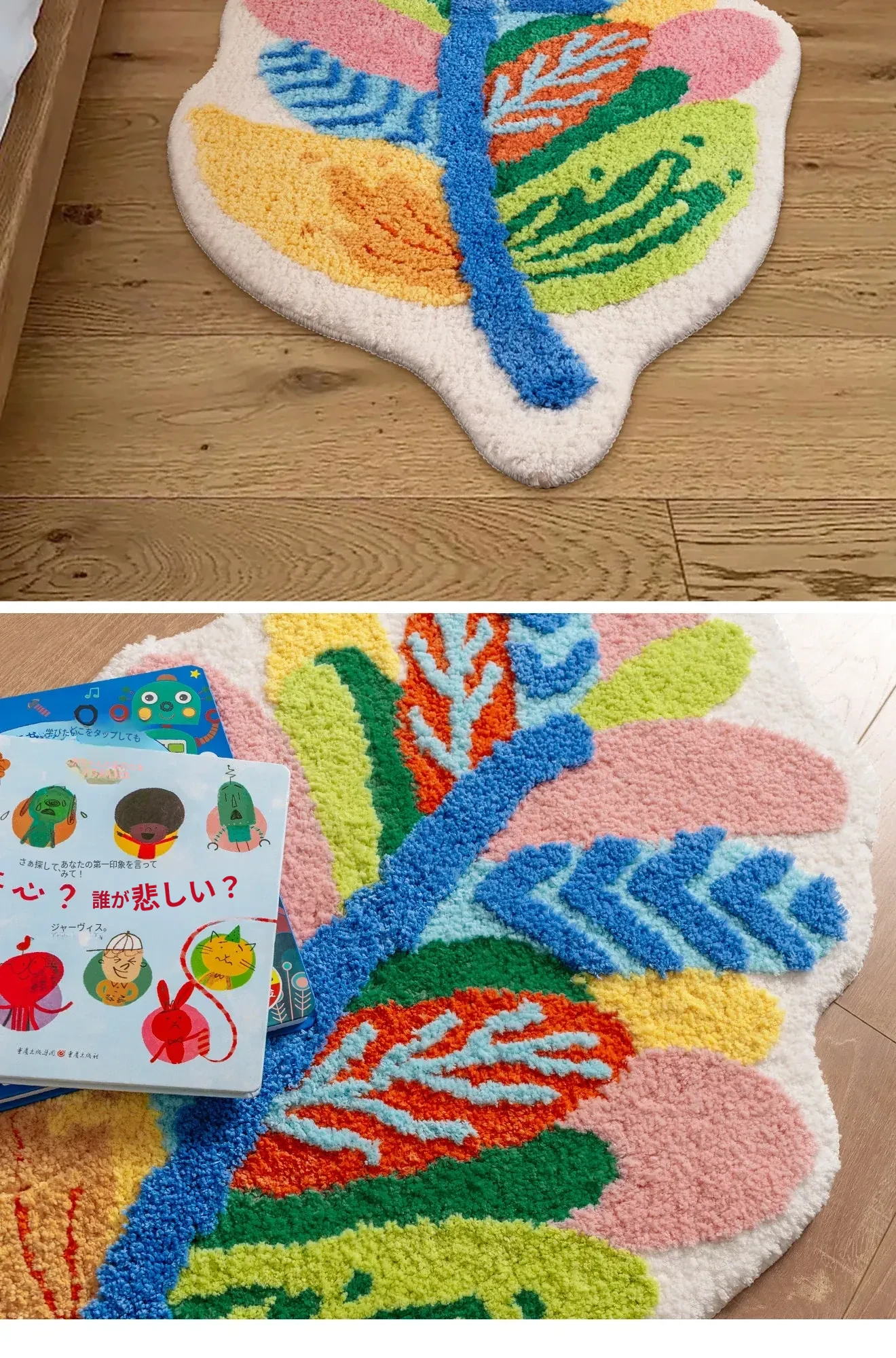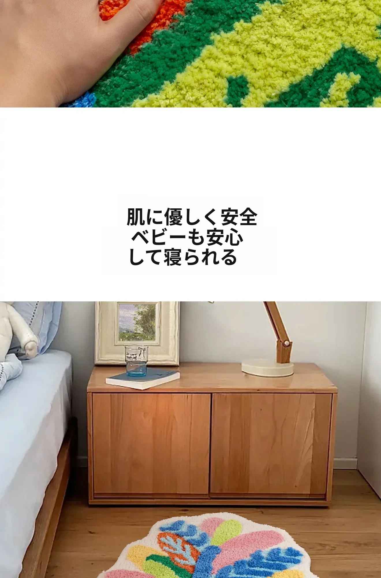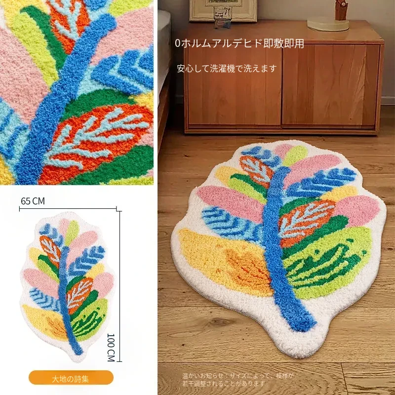 新作!おしゃれな子供部屋にぴったりの不規則な形のカーペット。男の子も女の子も大喜び!リビングやベッドサイドにも最適。ダイパンサーリーフデザインで、洗濯機で簡単にお手入れ可能!