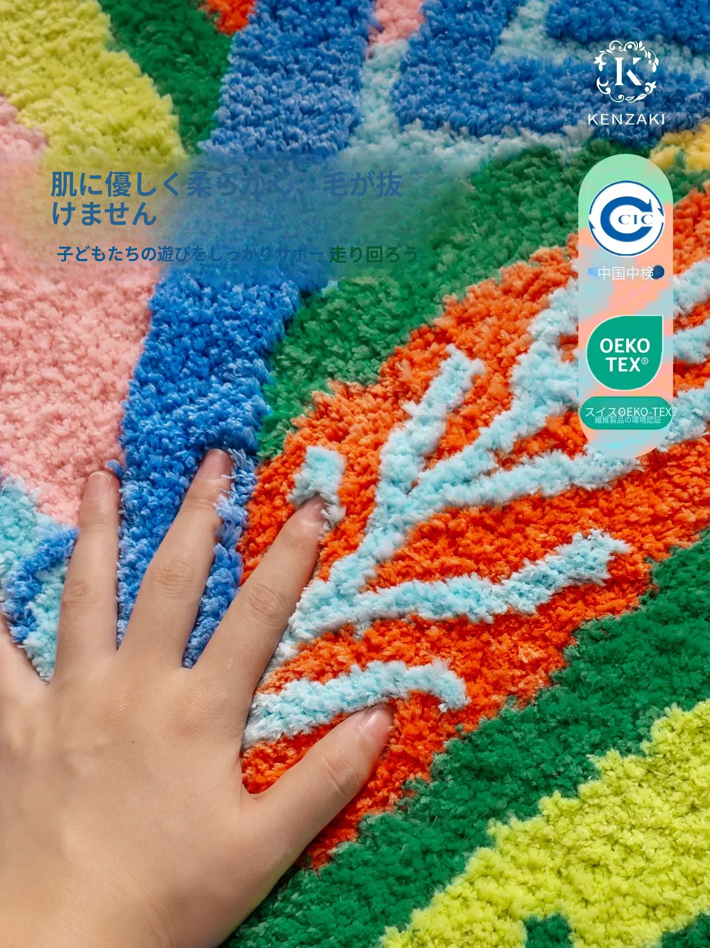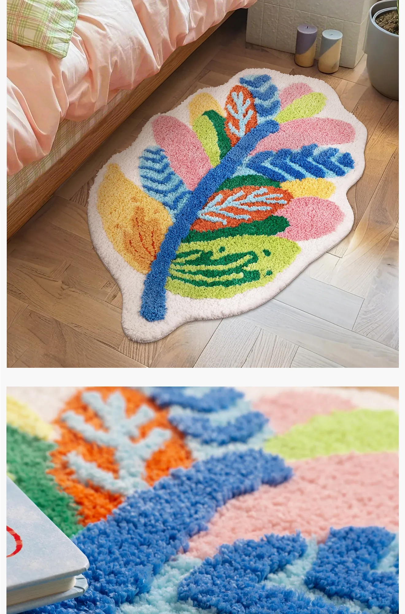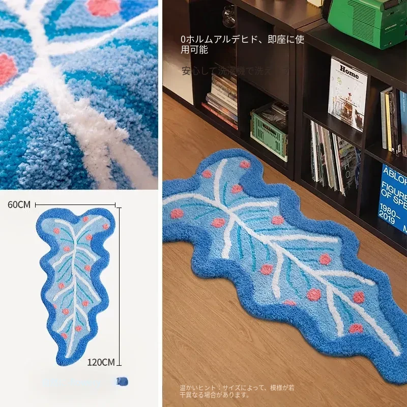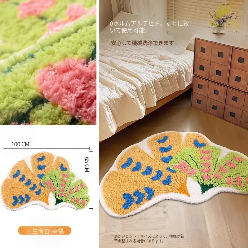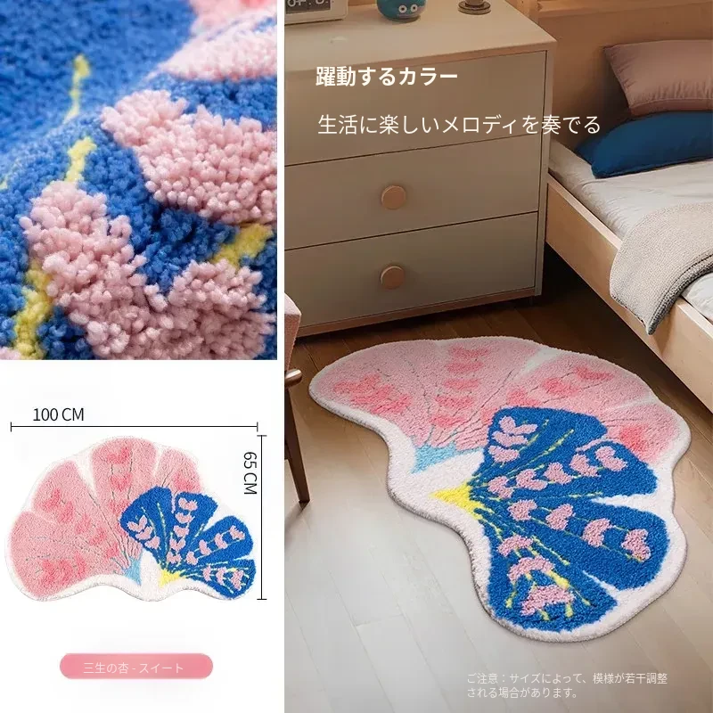 新作!おしゃれな子供部屋にぴったりの不規則な形のカーペット。男の子も女の子も大喜び!リビングやベッドサイドにも最適。ダイパンサーリーフデザインで、洗濯機で簡単にお手入れ可能!