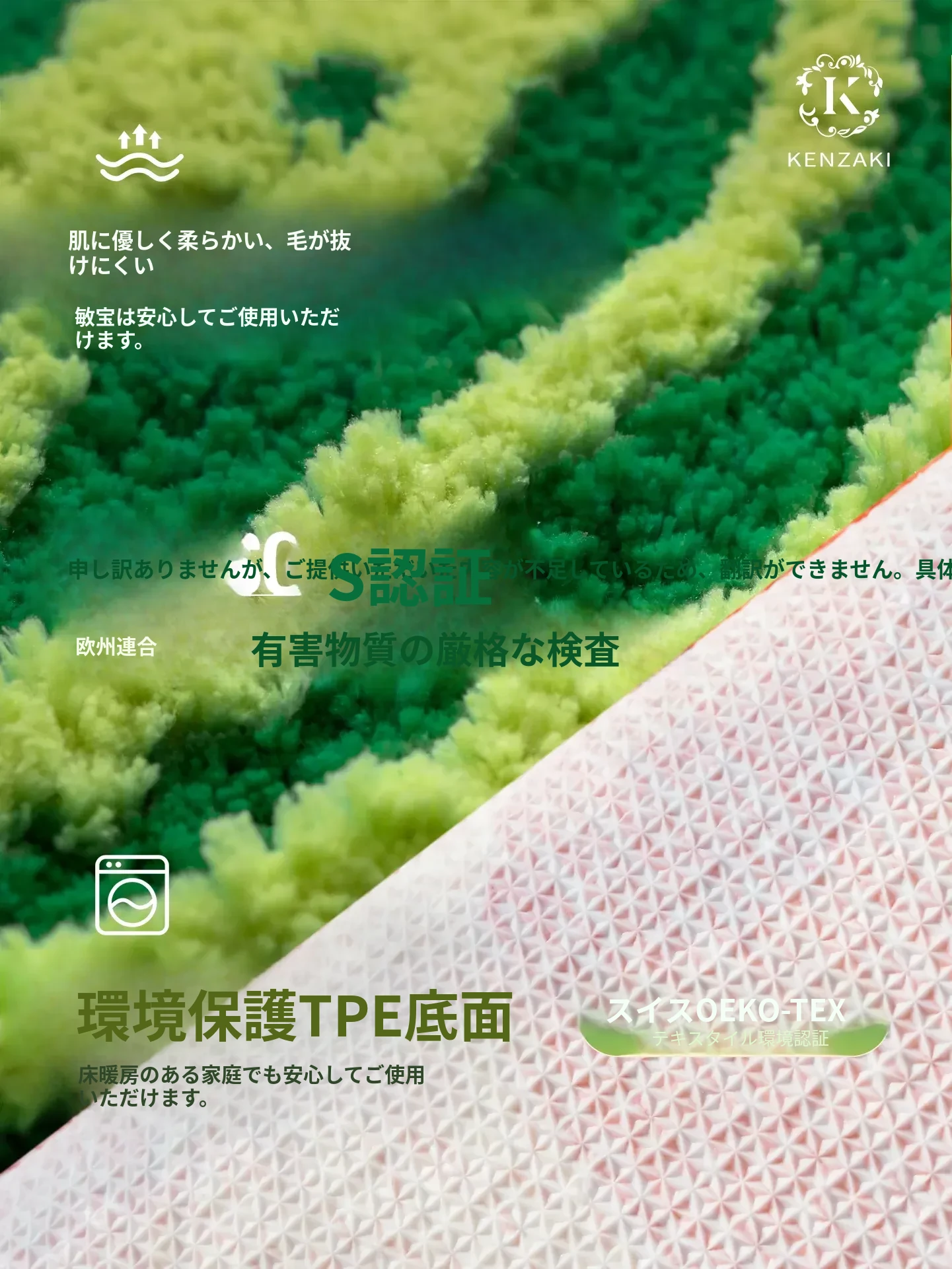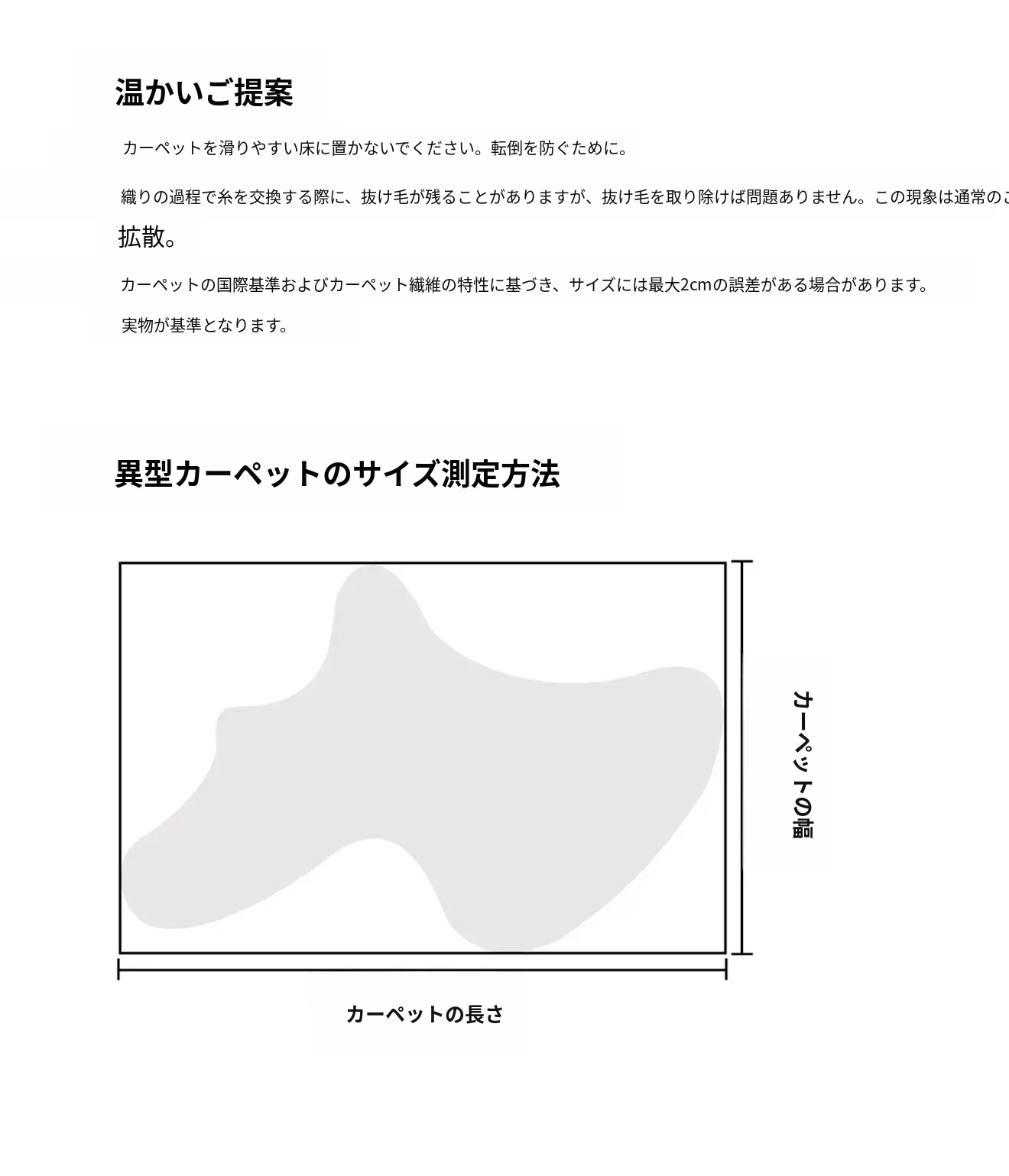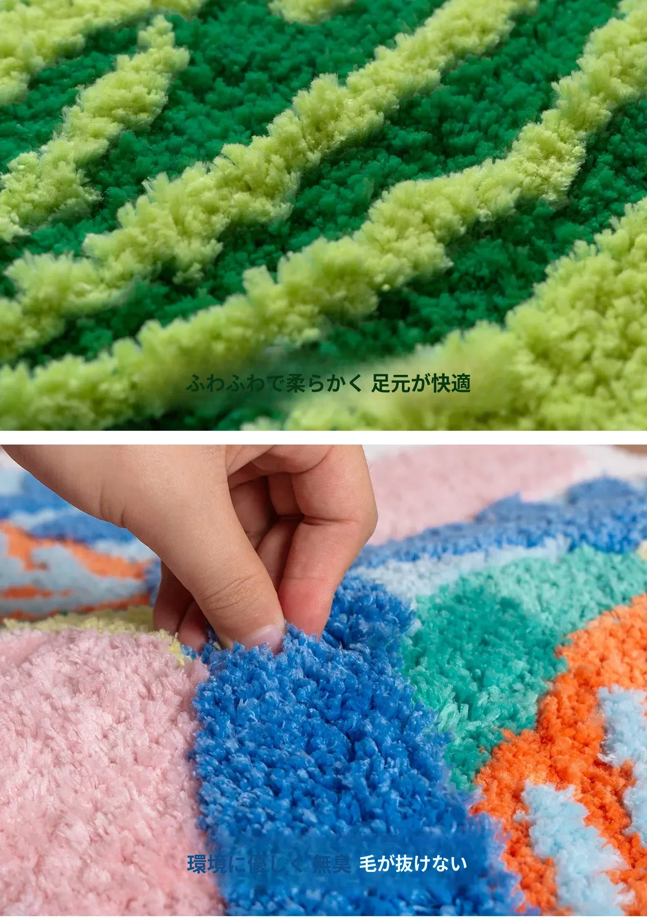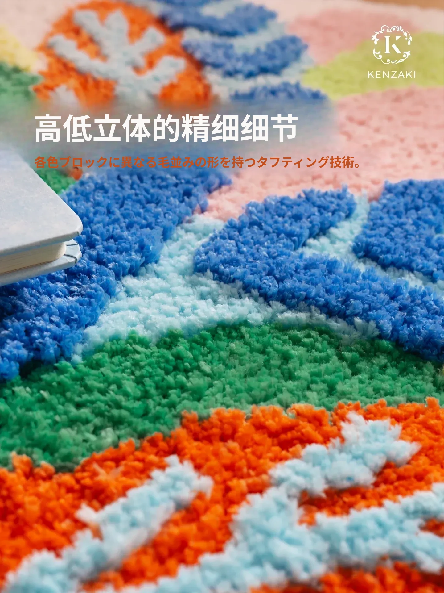 新作!おしゃれな子供部屋にぴったりの不規則な形のカーペット。男の子も女の子も大喜び!リビングやベッドサイドにも最適。ダイパンサーリーフデザインで、洗濯機で簡単にお手入れ可能!
