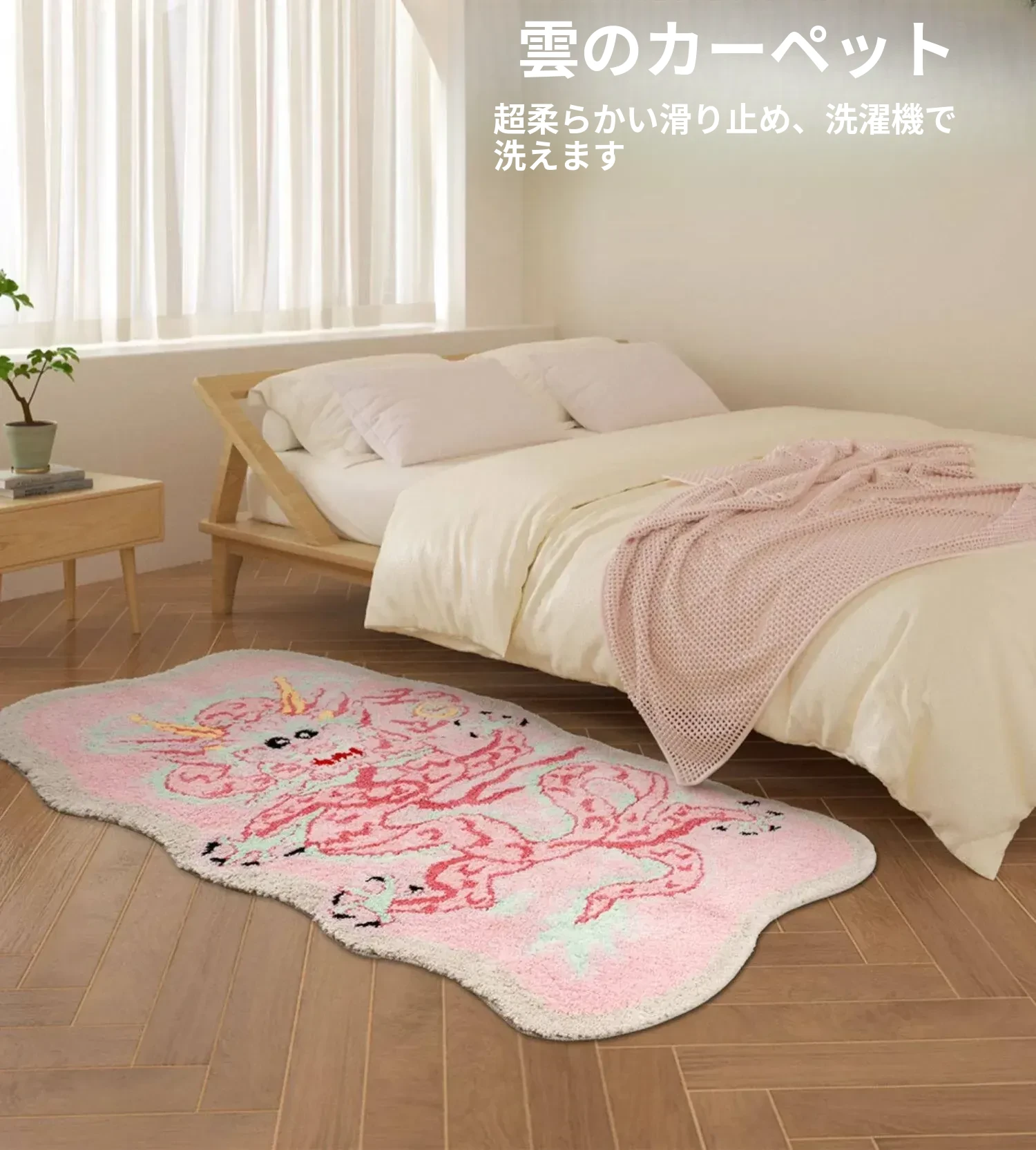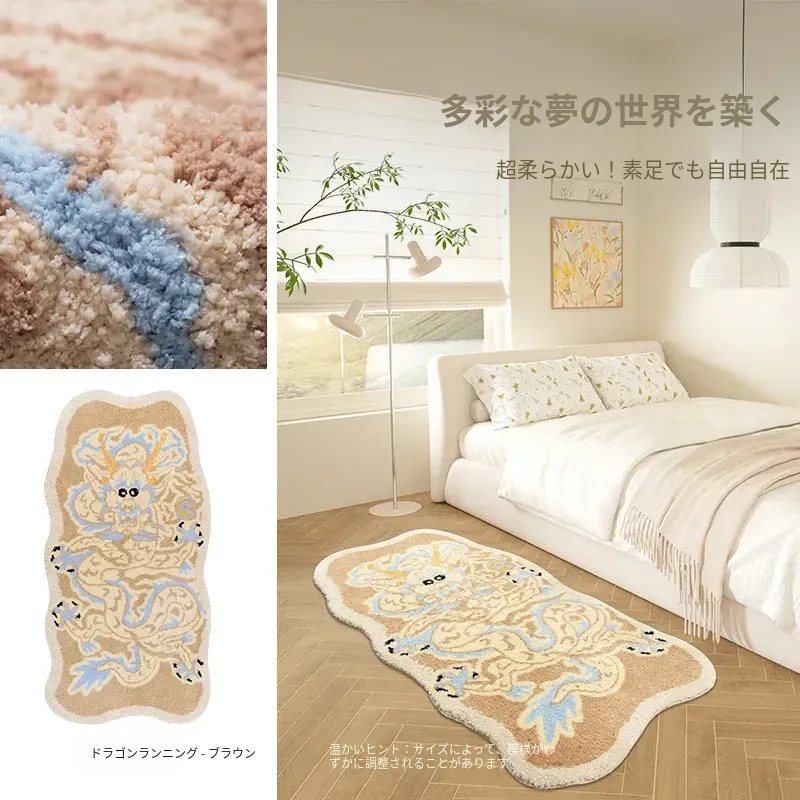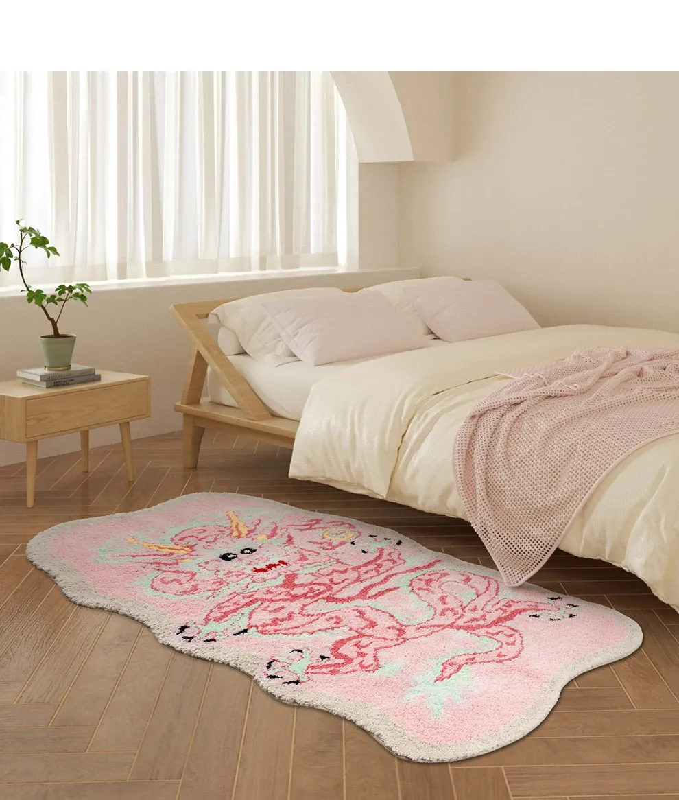 女の子のためのピンクのドラゴンデザイン!厚手で洗える子供用カーペット - 寝室やリビング、デスクの下に最適!新中式スタイルで、お部屋を可愛く彩ります。