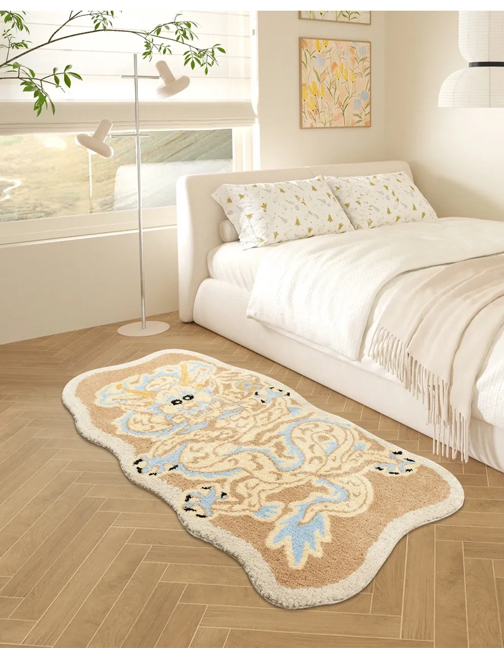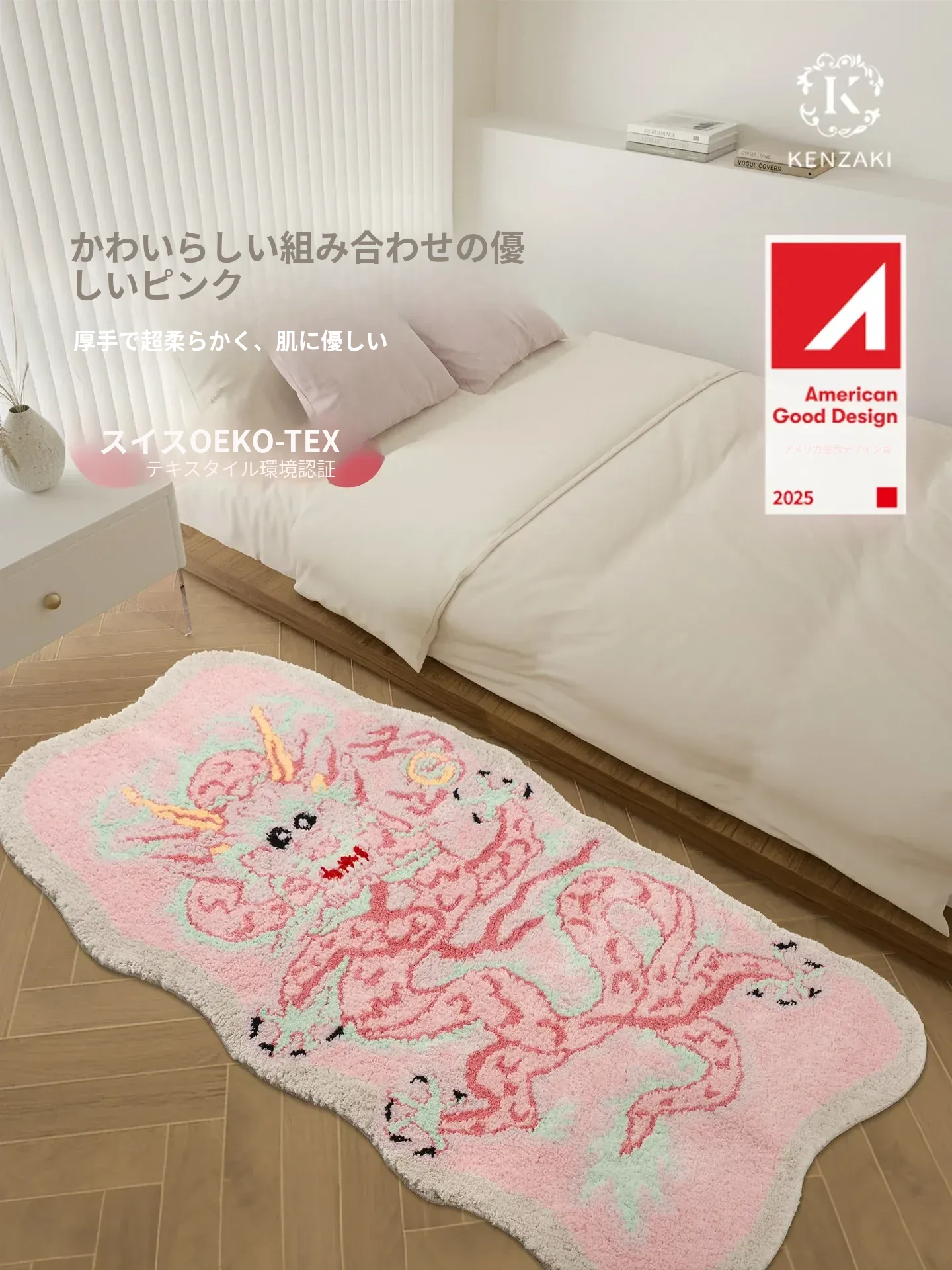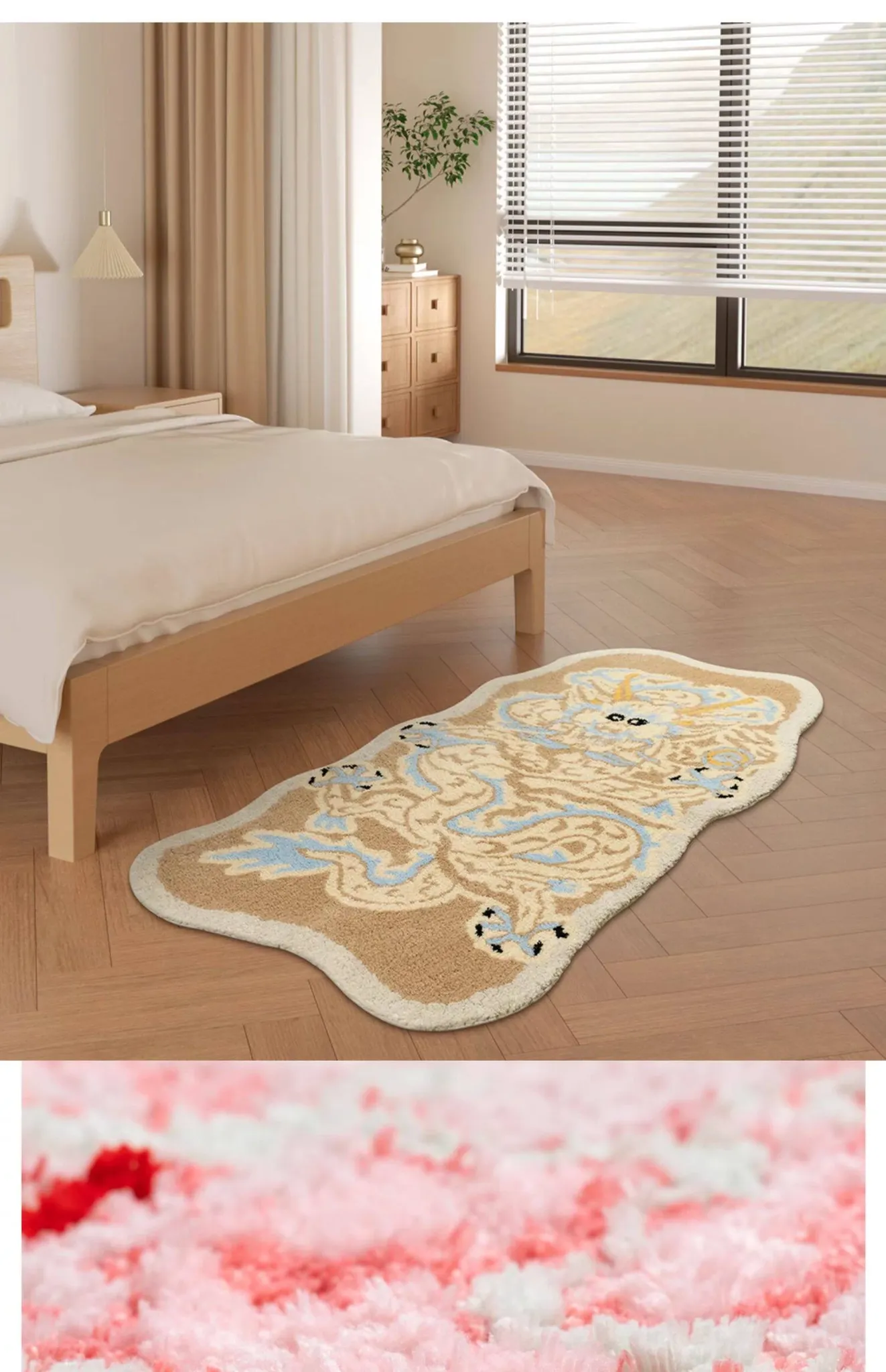 女の子のためのピンクのドラゴンデザイン!厚手で洗える子供用カーペット - 寝室やリビング、デスクの下に最適!新中式スタイルで、お部屋を可愛く彩ります。