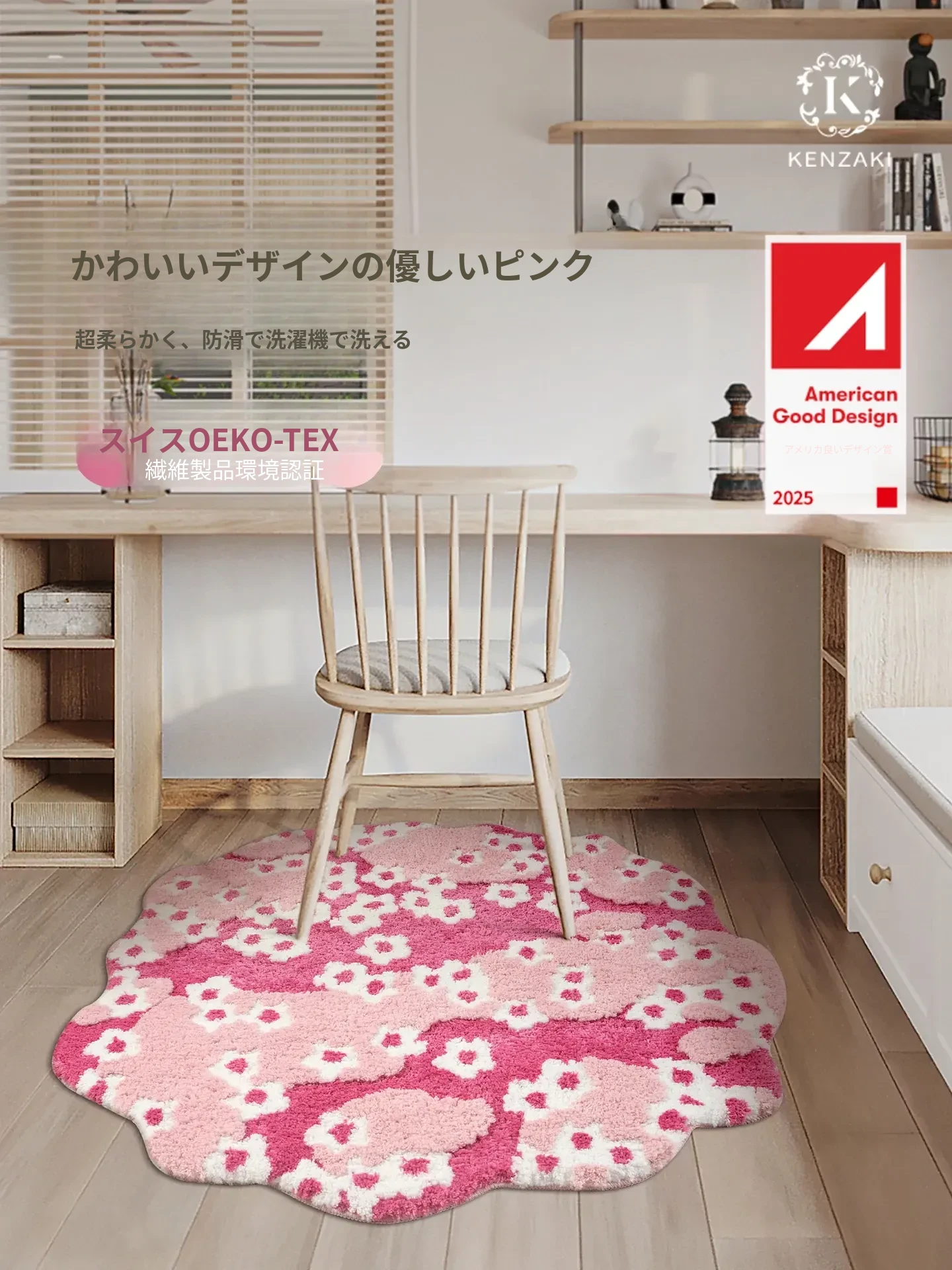 女の子のためのカラフルな子供用ラグ - ベッドサイドマット、メイクチェア用の滑り止め、防音効果あり!ピンクのプリンセスデザインで、洗濯機で洗える厚手タイプ。女の子の夢の空間を演出し、安心して遊べる場所を提供します!